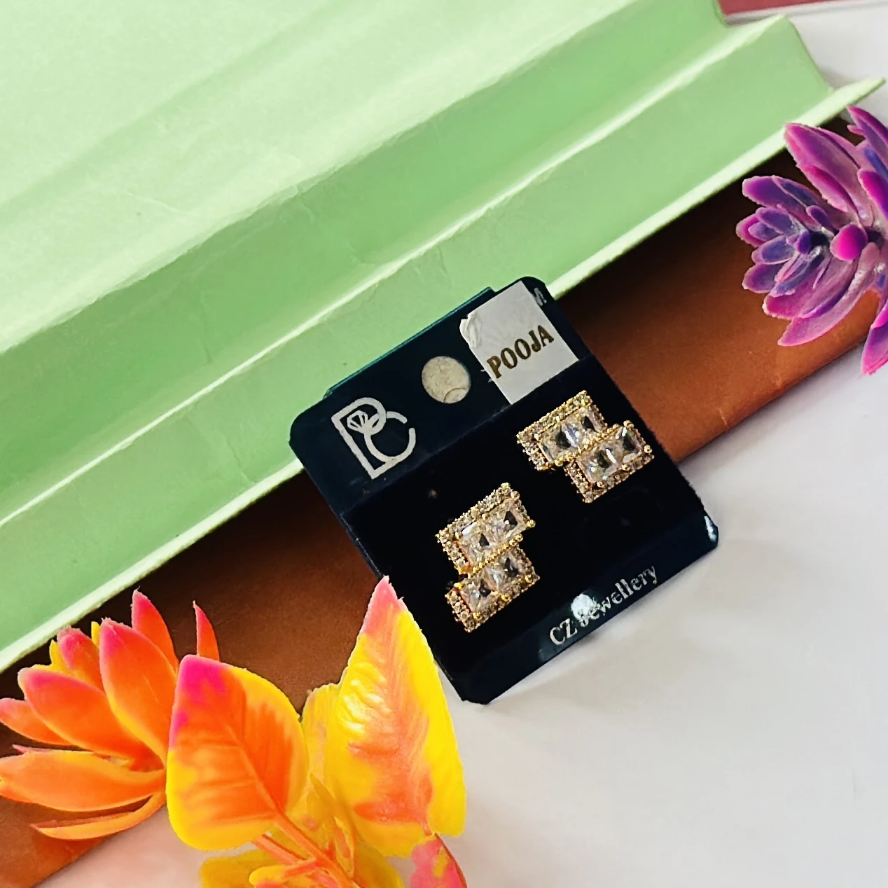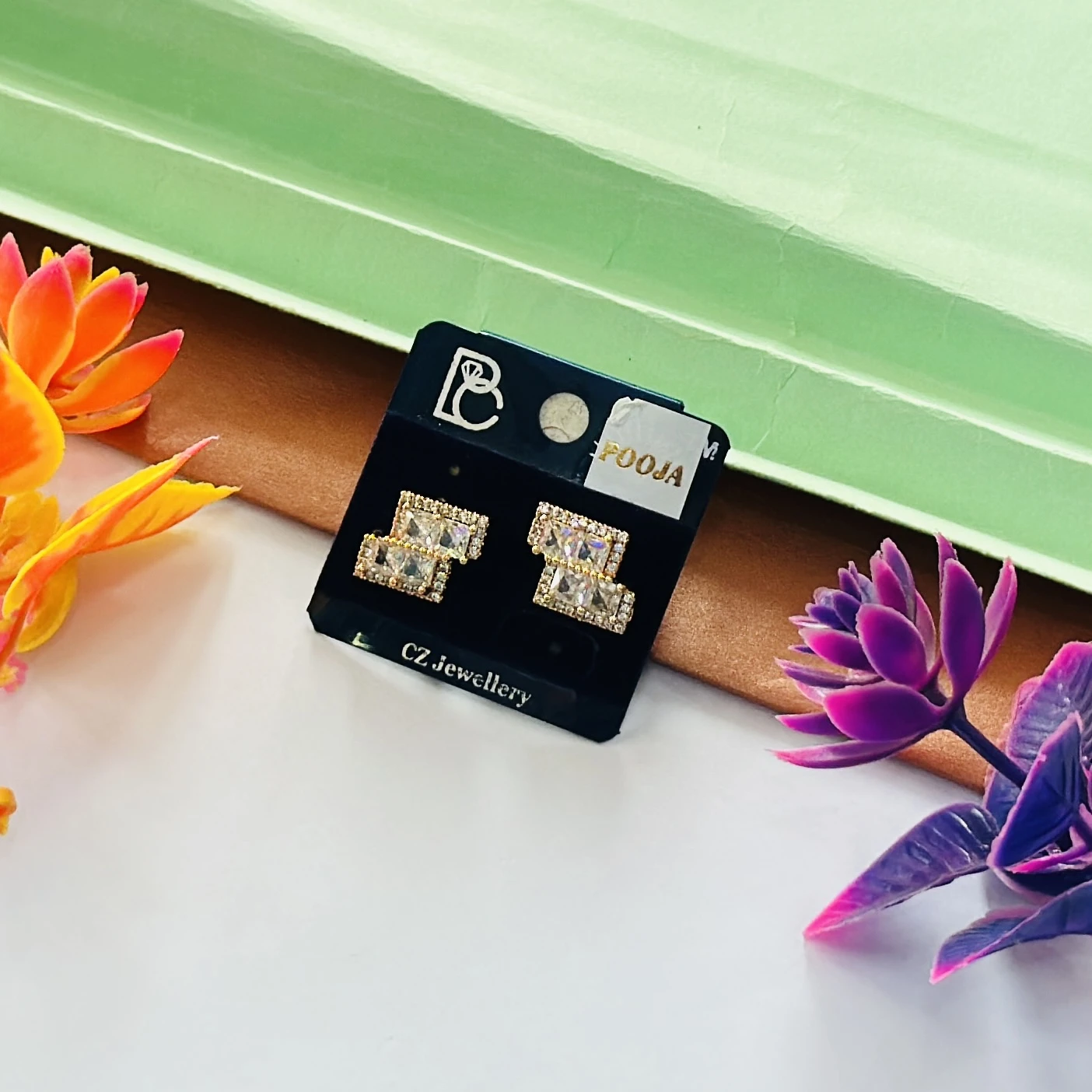 👉Theme :- Gold plated cubic zirconia (CZ) stud earrings