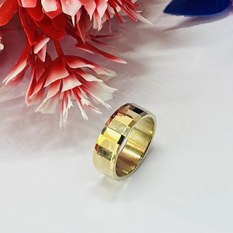 👉 Theme :- Gold -plated highly polished tungsten carbide faceted band ring.