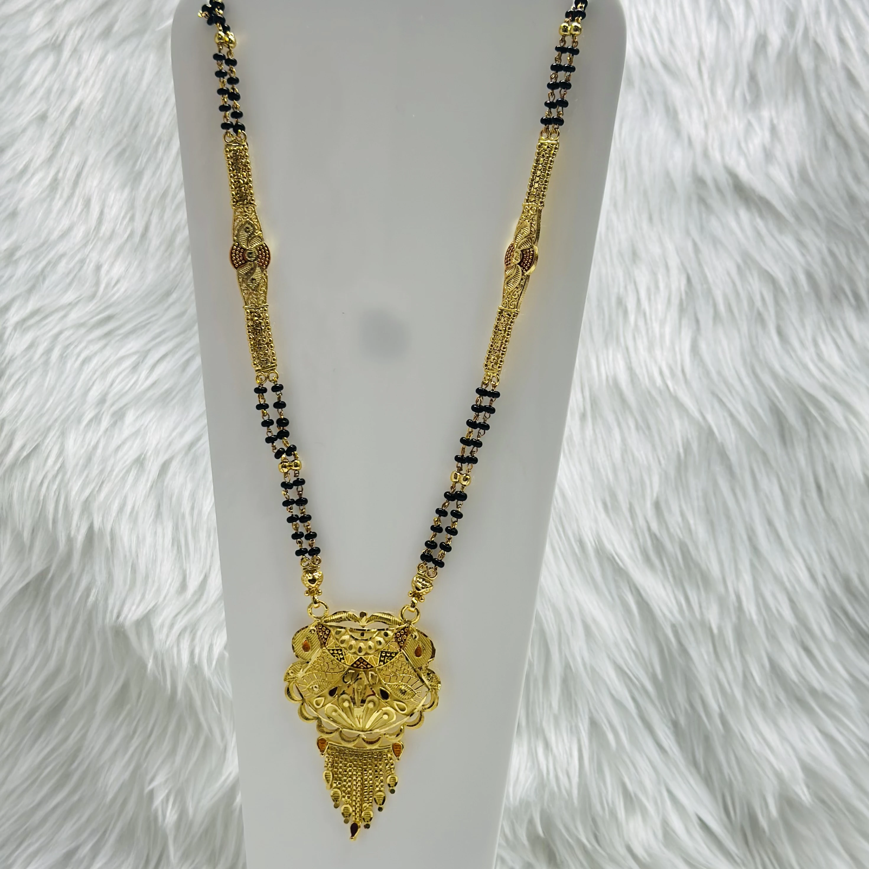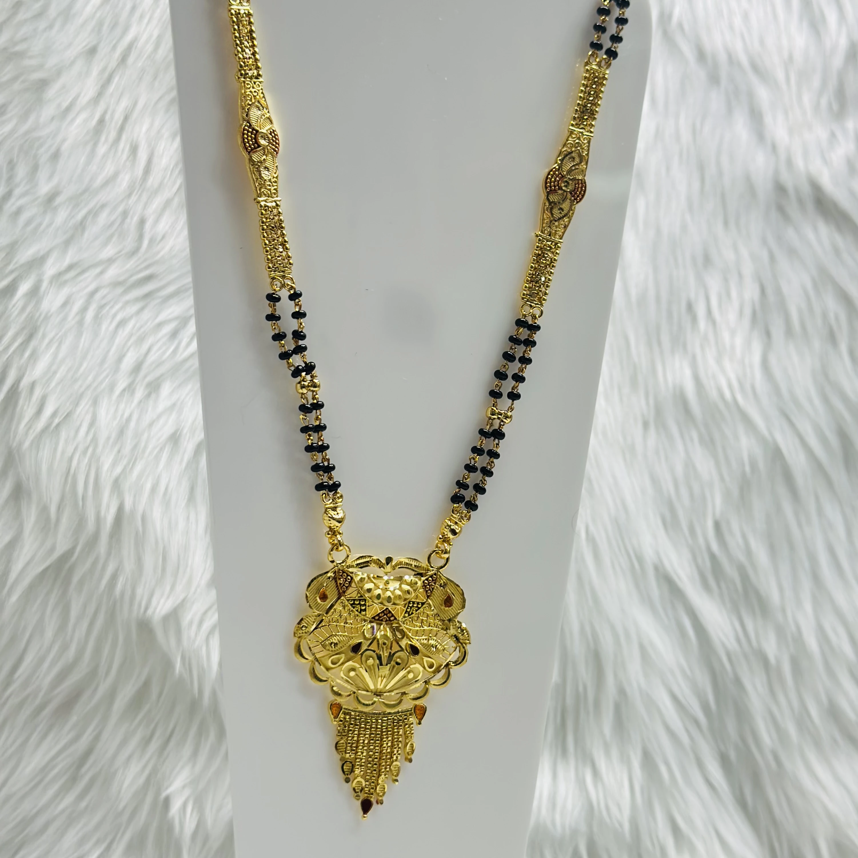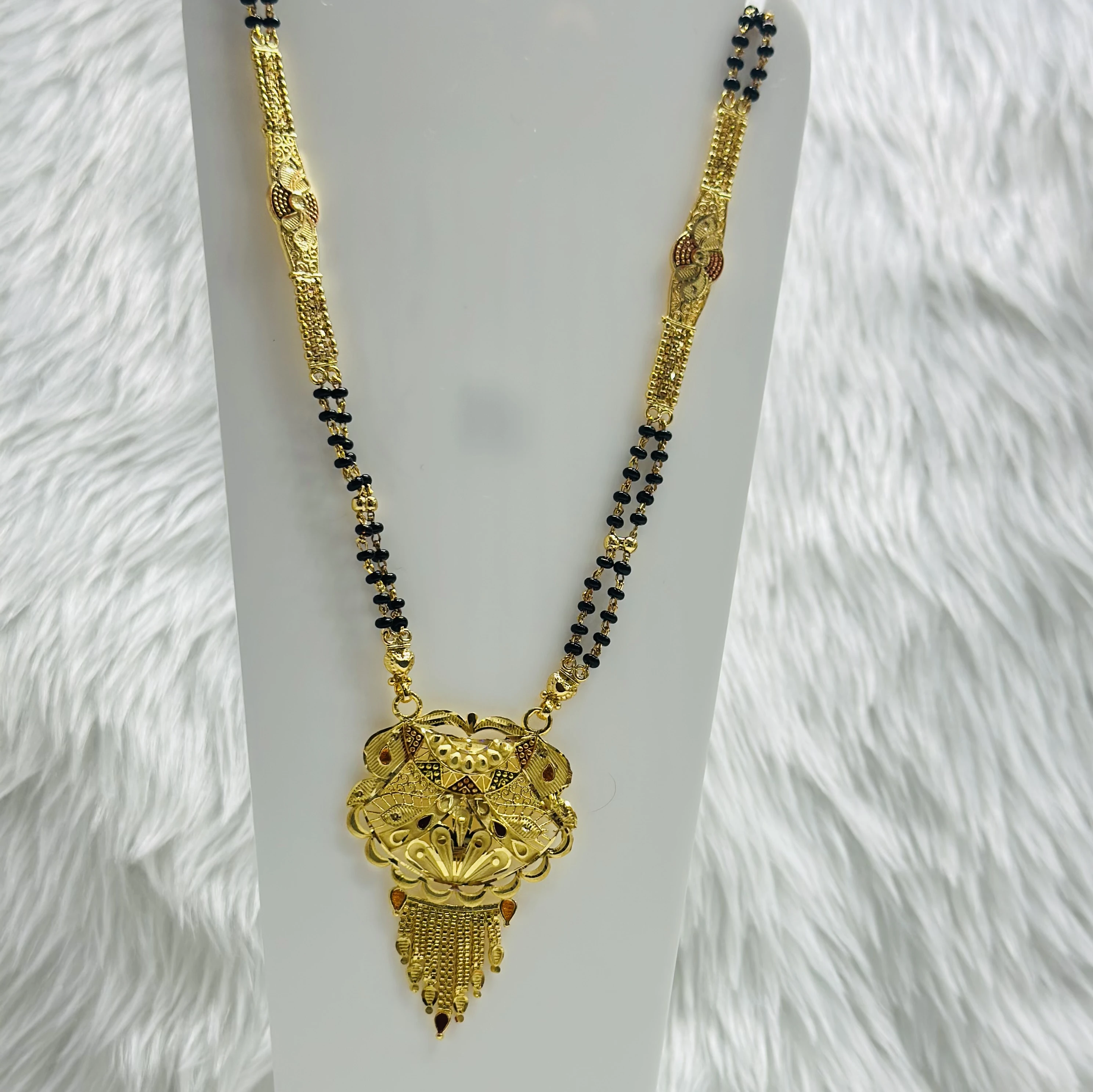 👉Theme :- gold-plated mangalsutra with a traditional-style pendant and black bead chain.