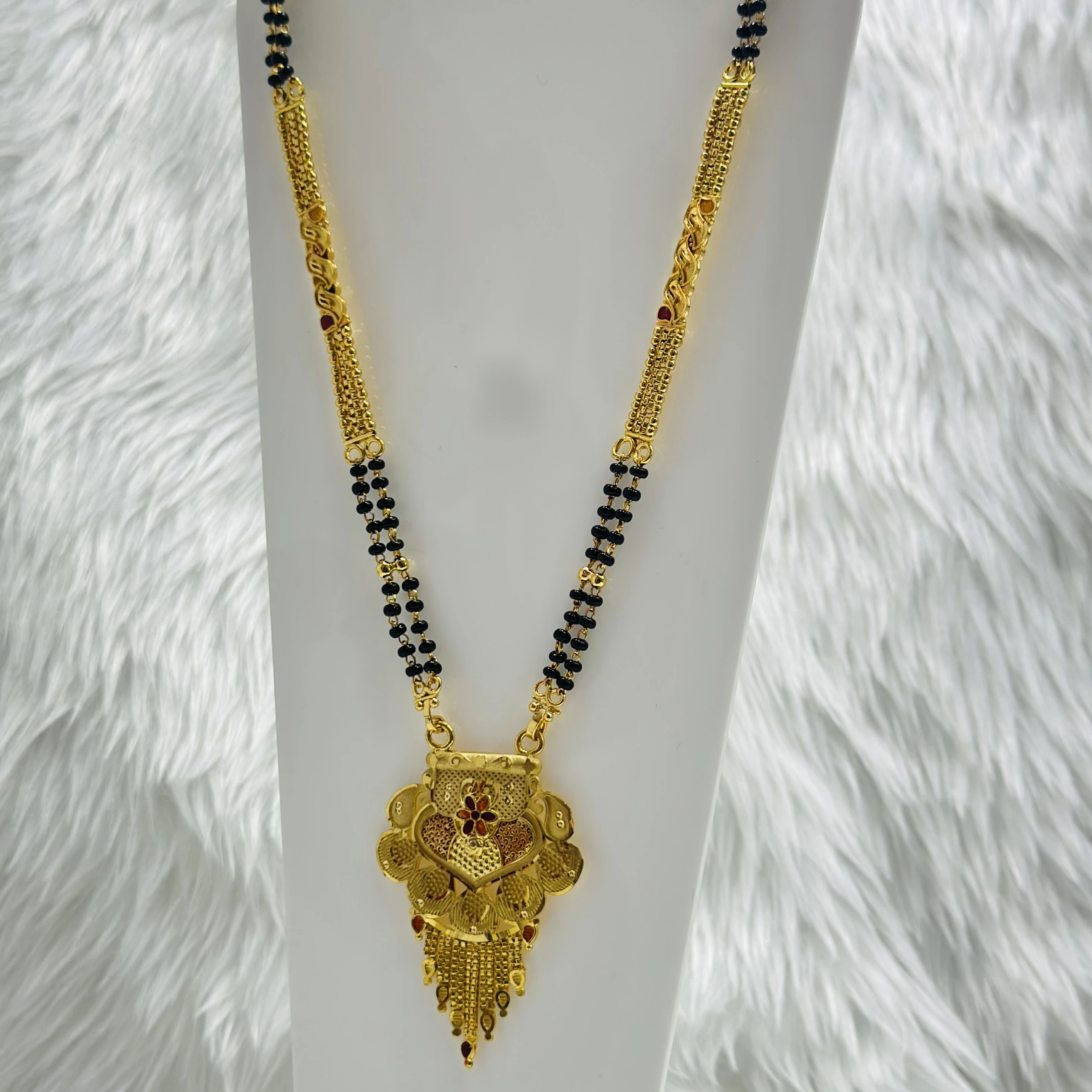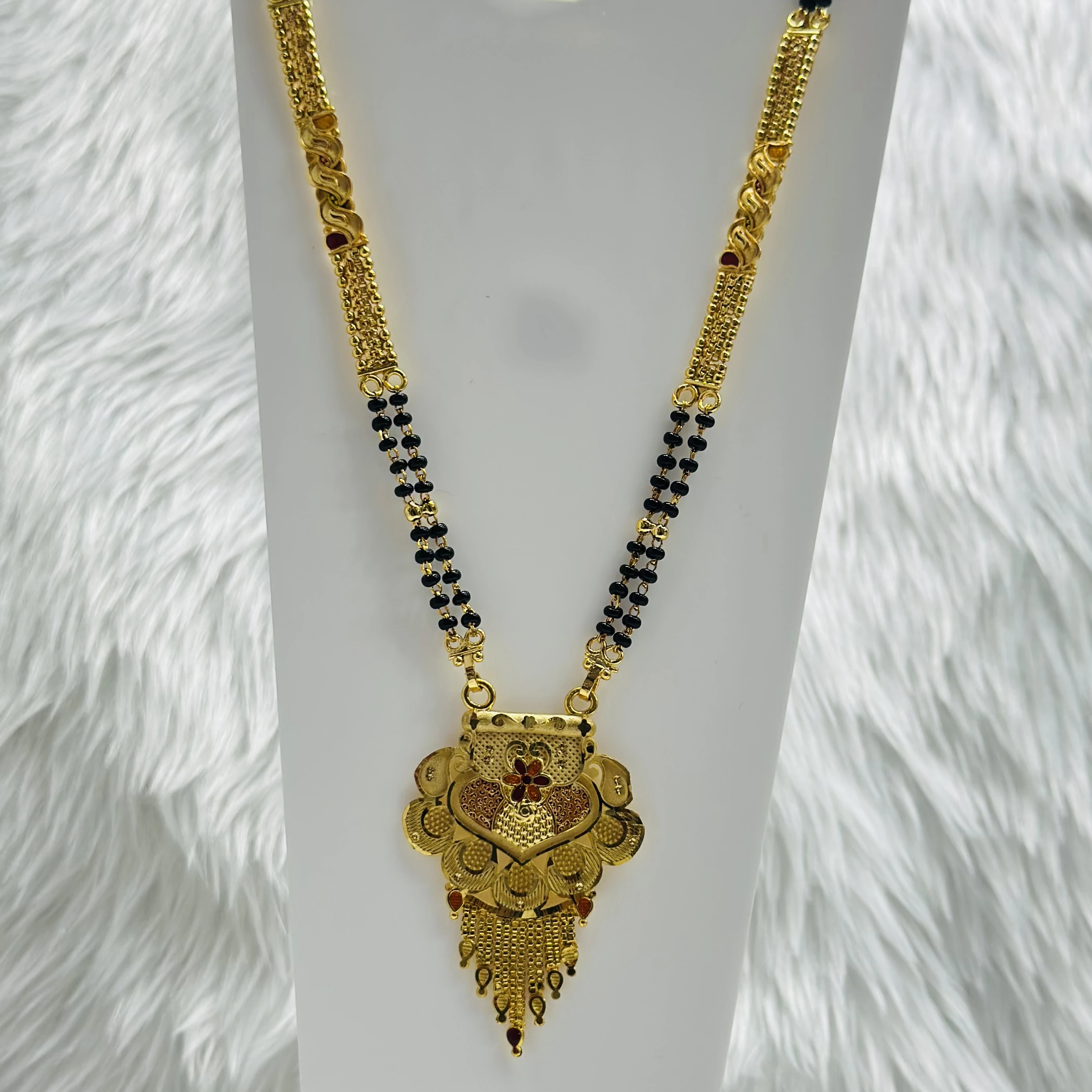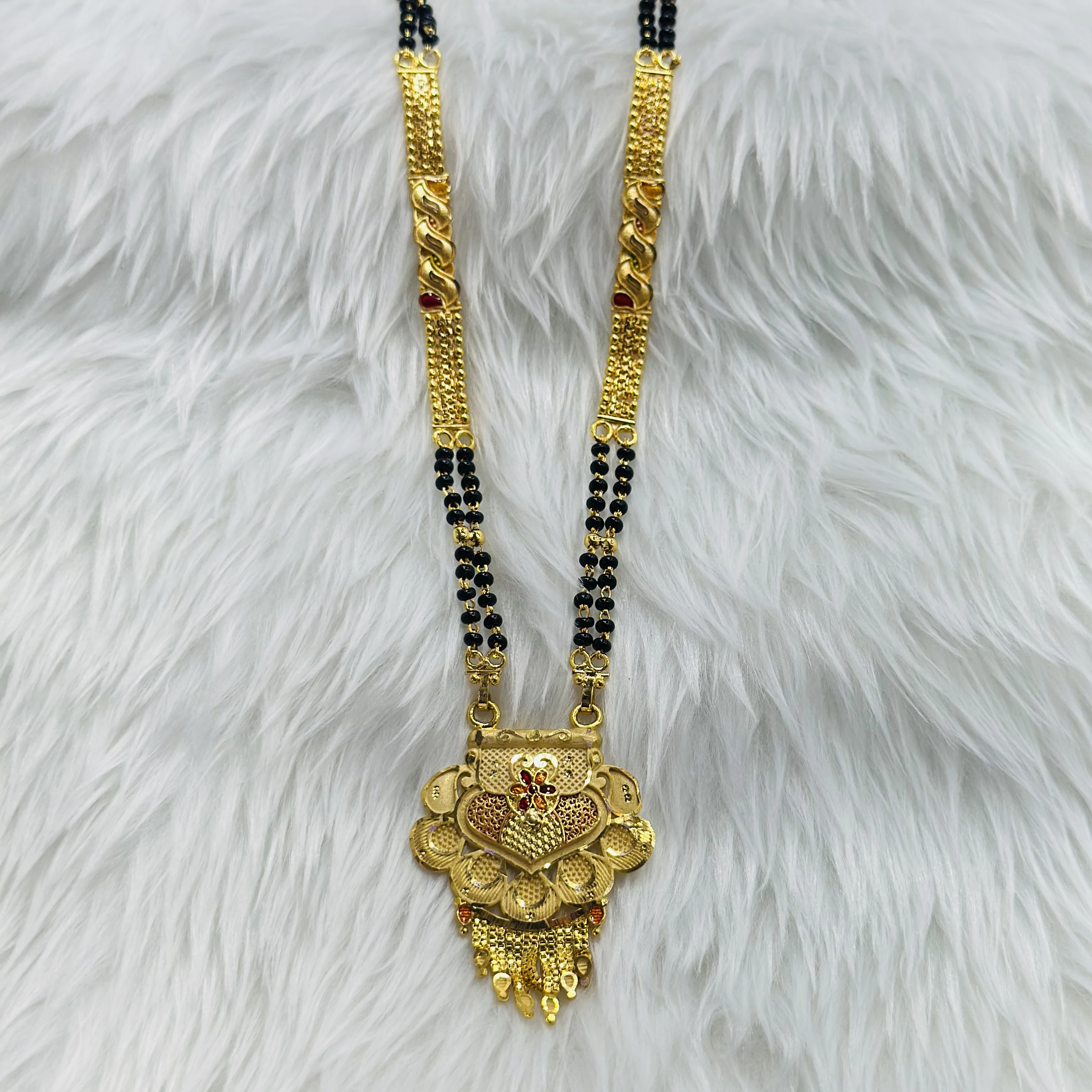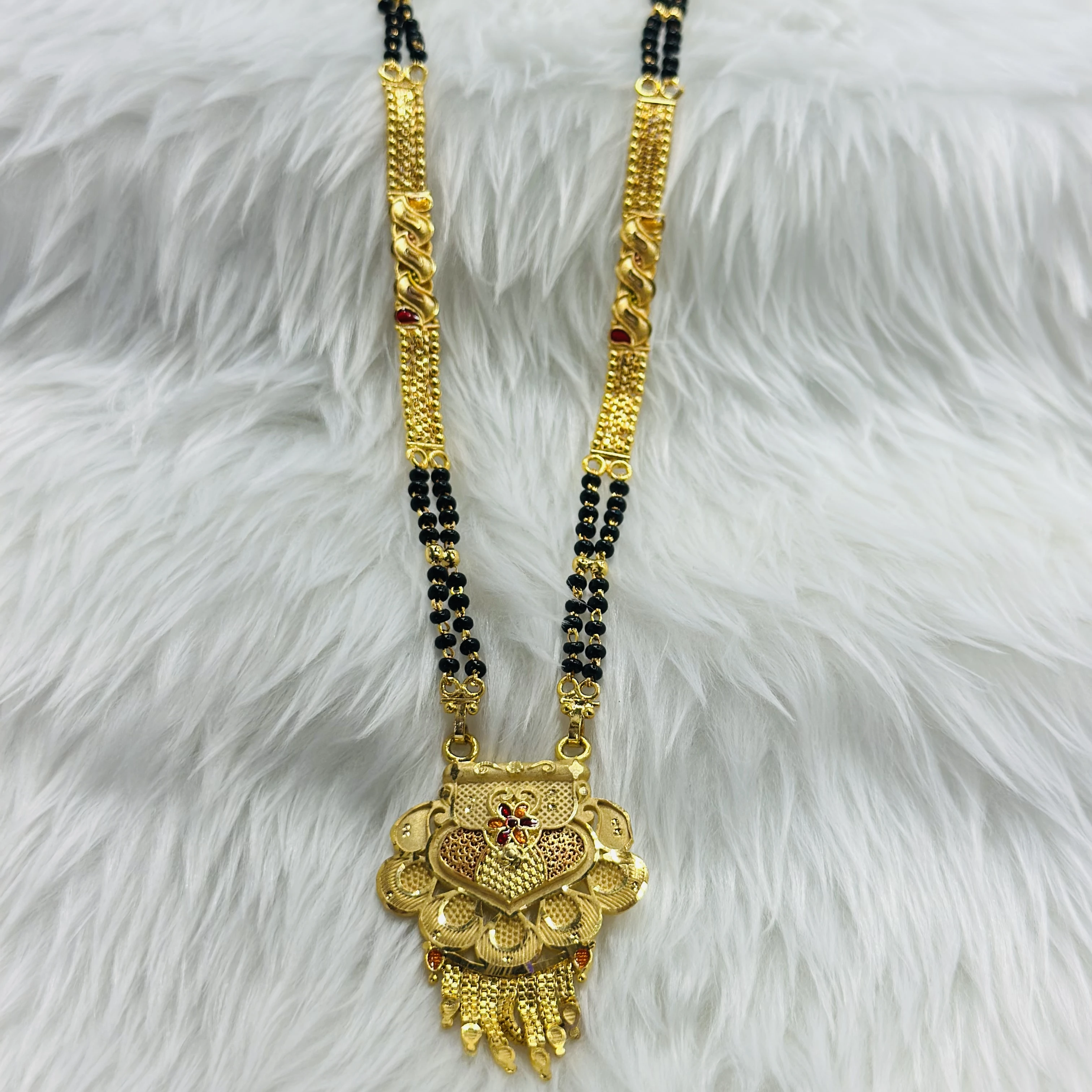 👉Theme :- gold-plated mangalsutra with a traditional-style pendant and black bead chain.