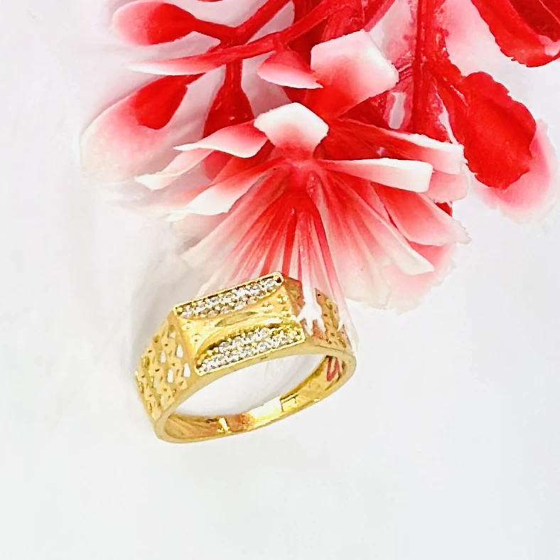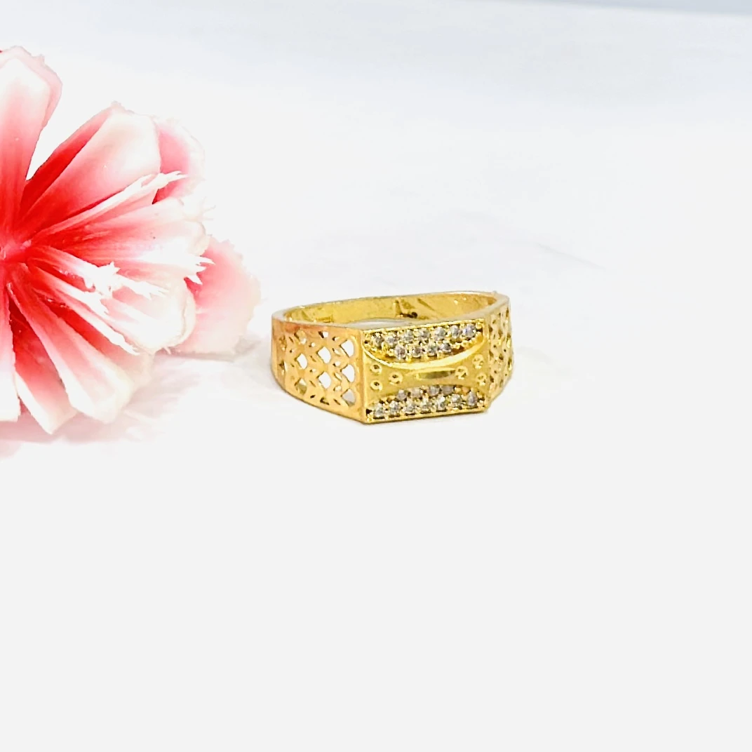 👉 Theme :- Gold gent's ring with a textured design and diamond accents.
