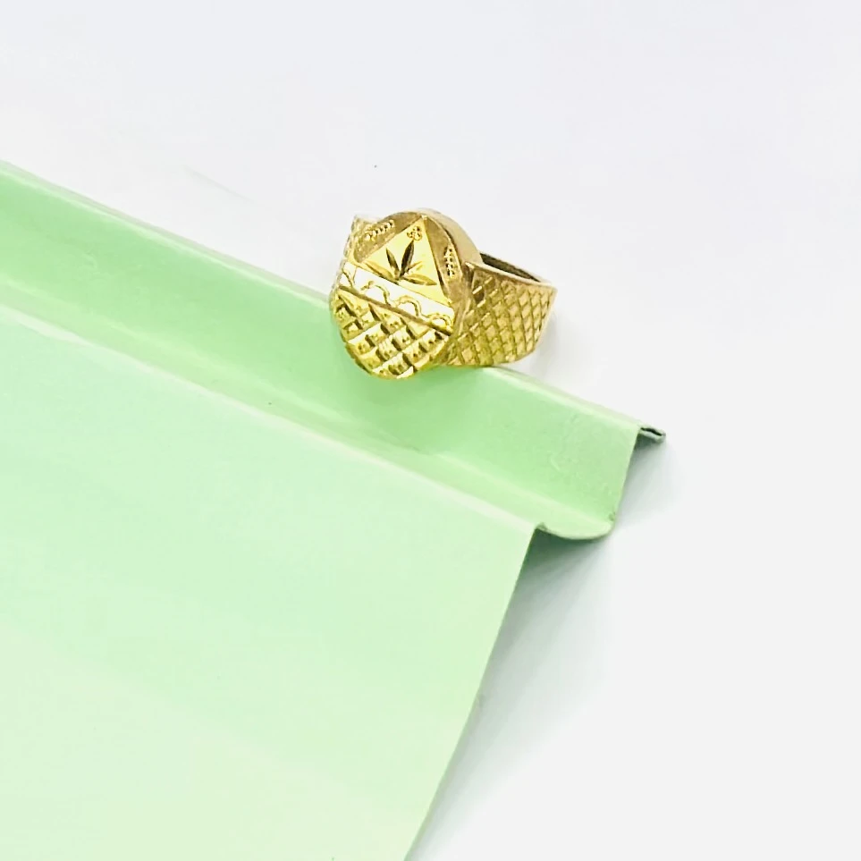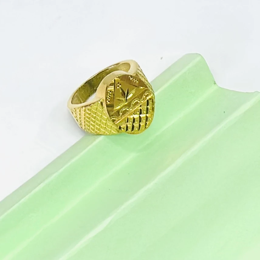 Gold plated men's ring with a cross design.