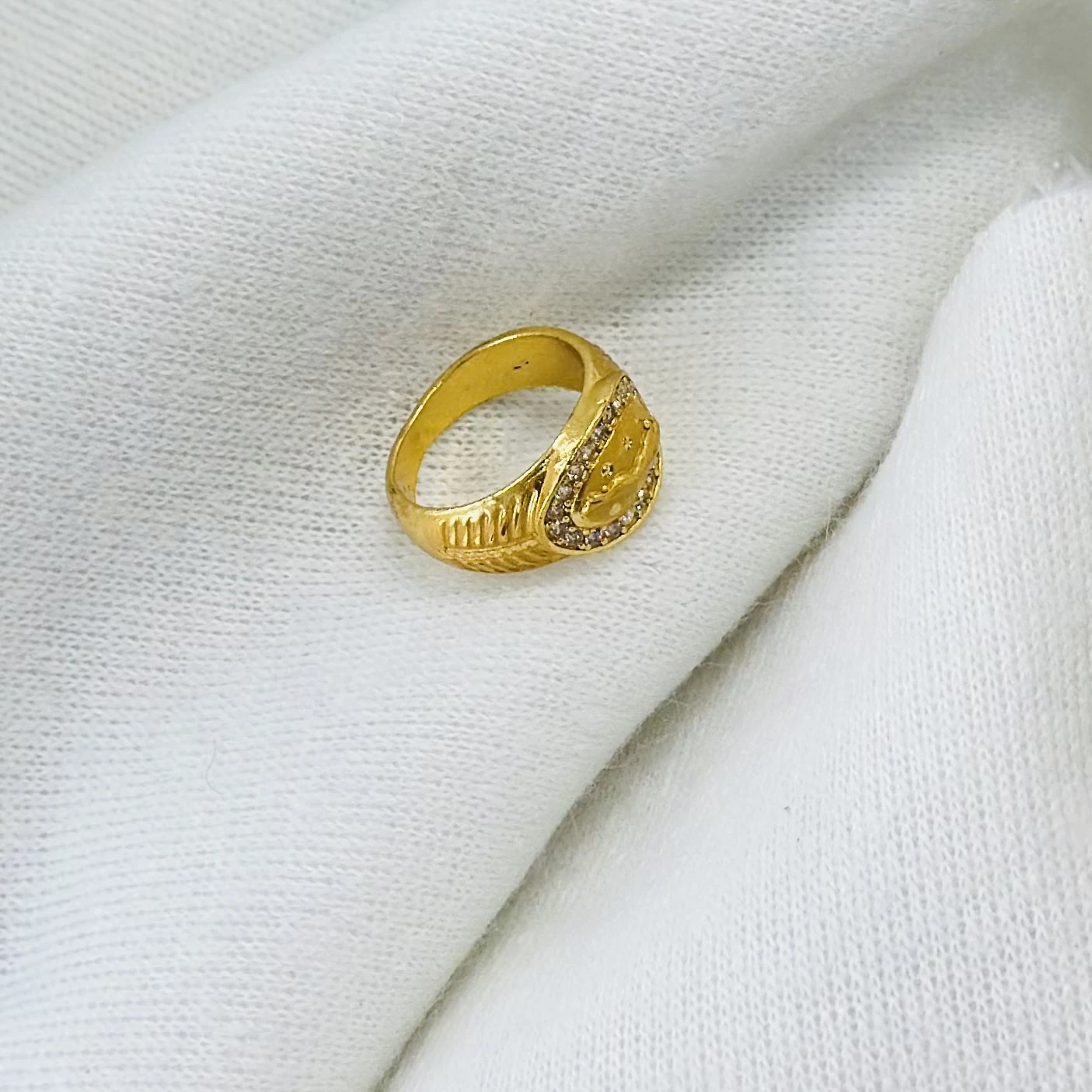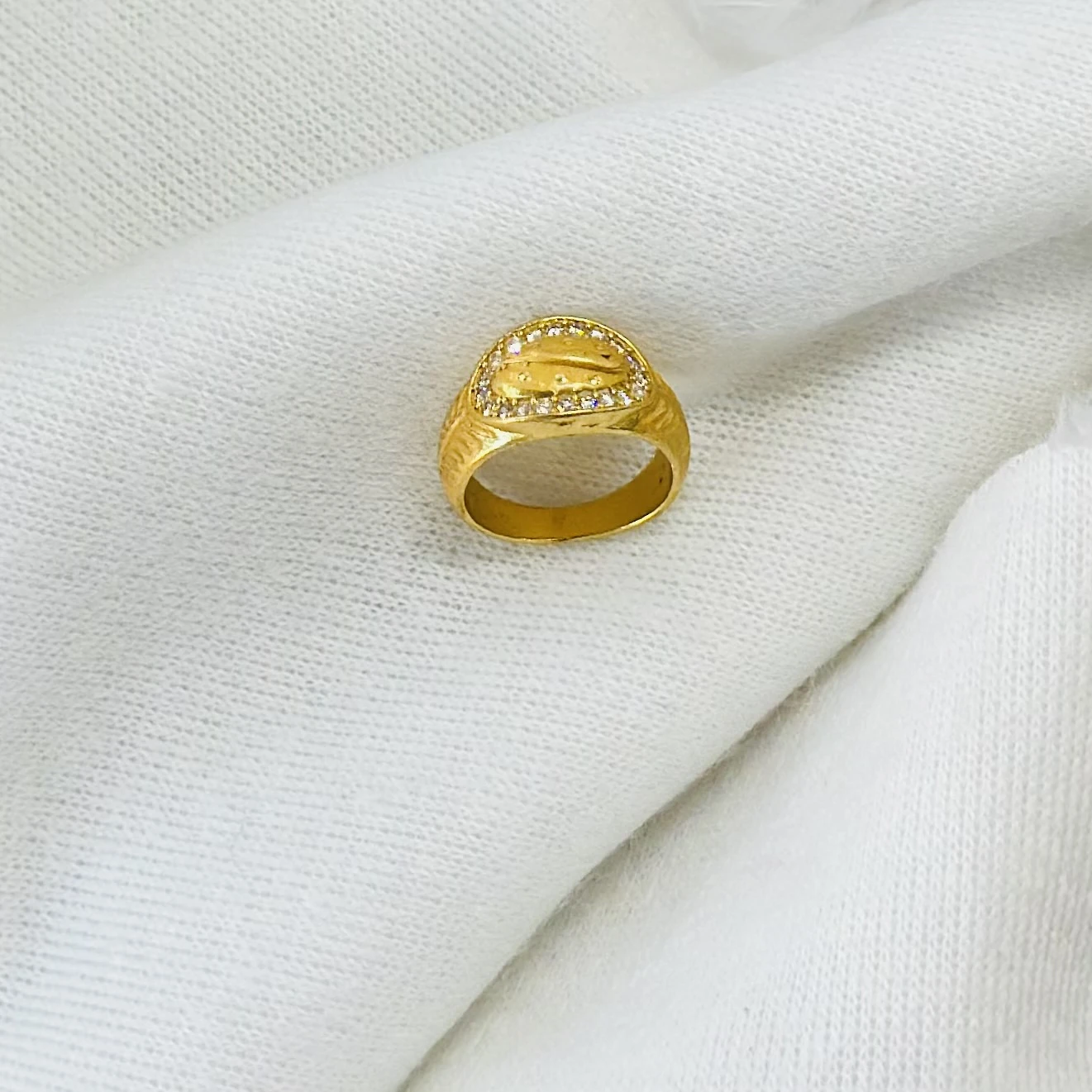 👉 Theme :- Gold plated men's ring with cubic zirconia stones.
