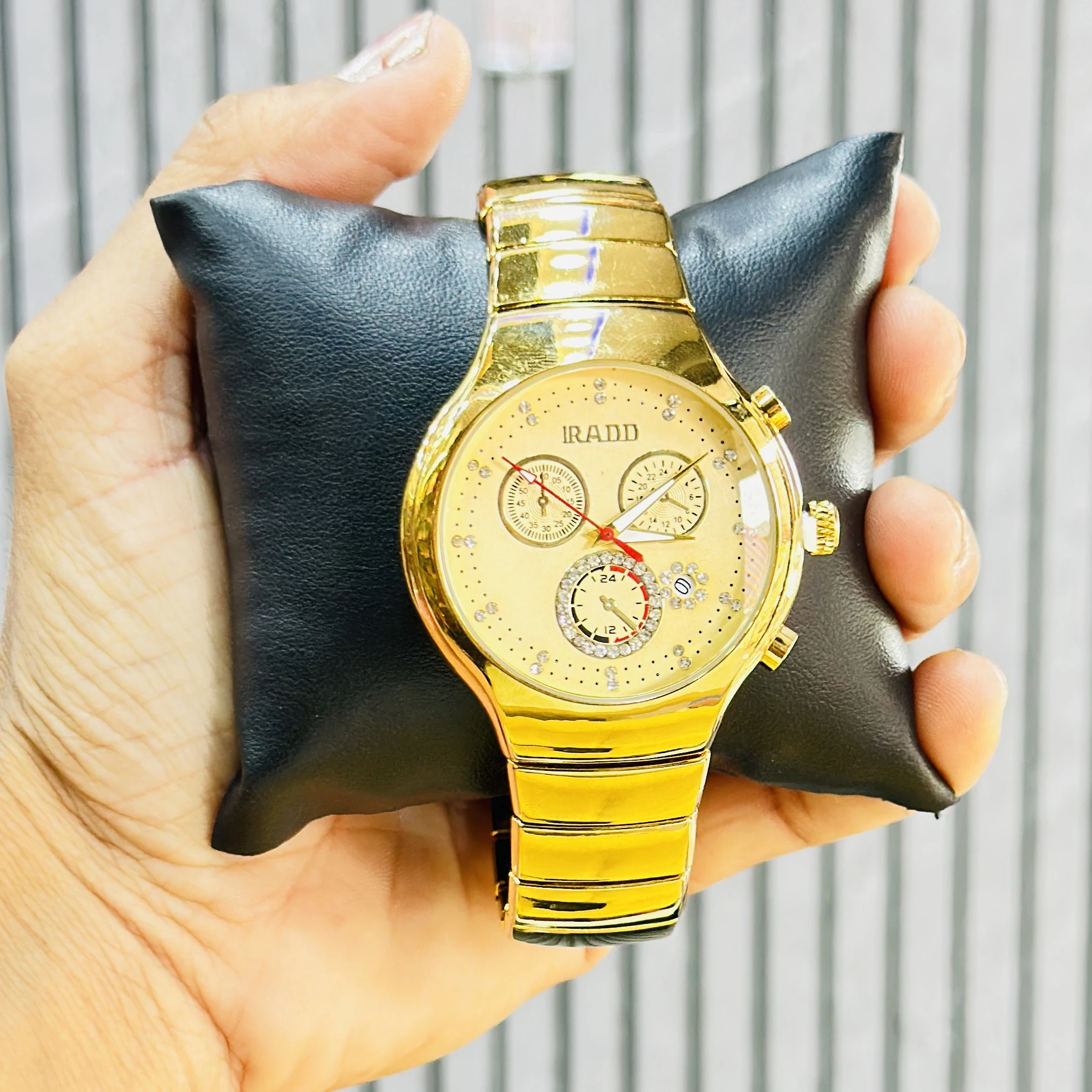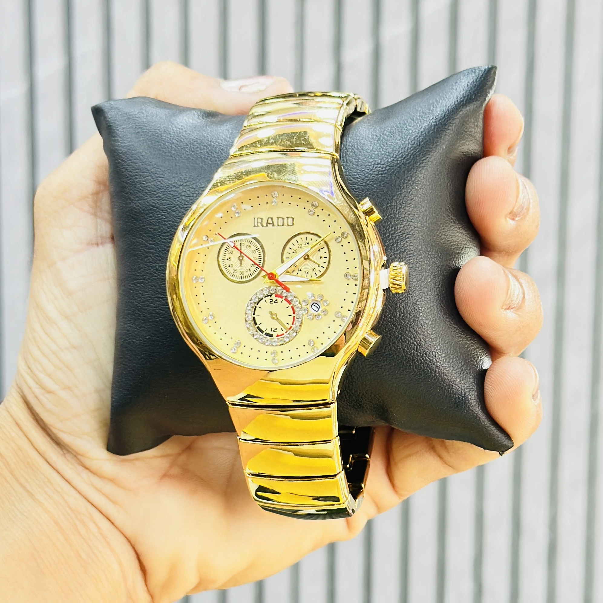 Gold plated quartz analog wristwatch