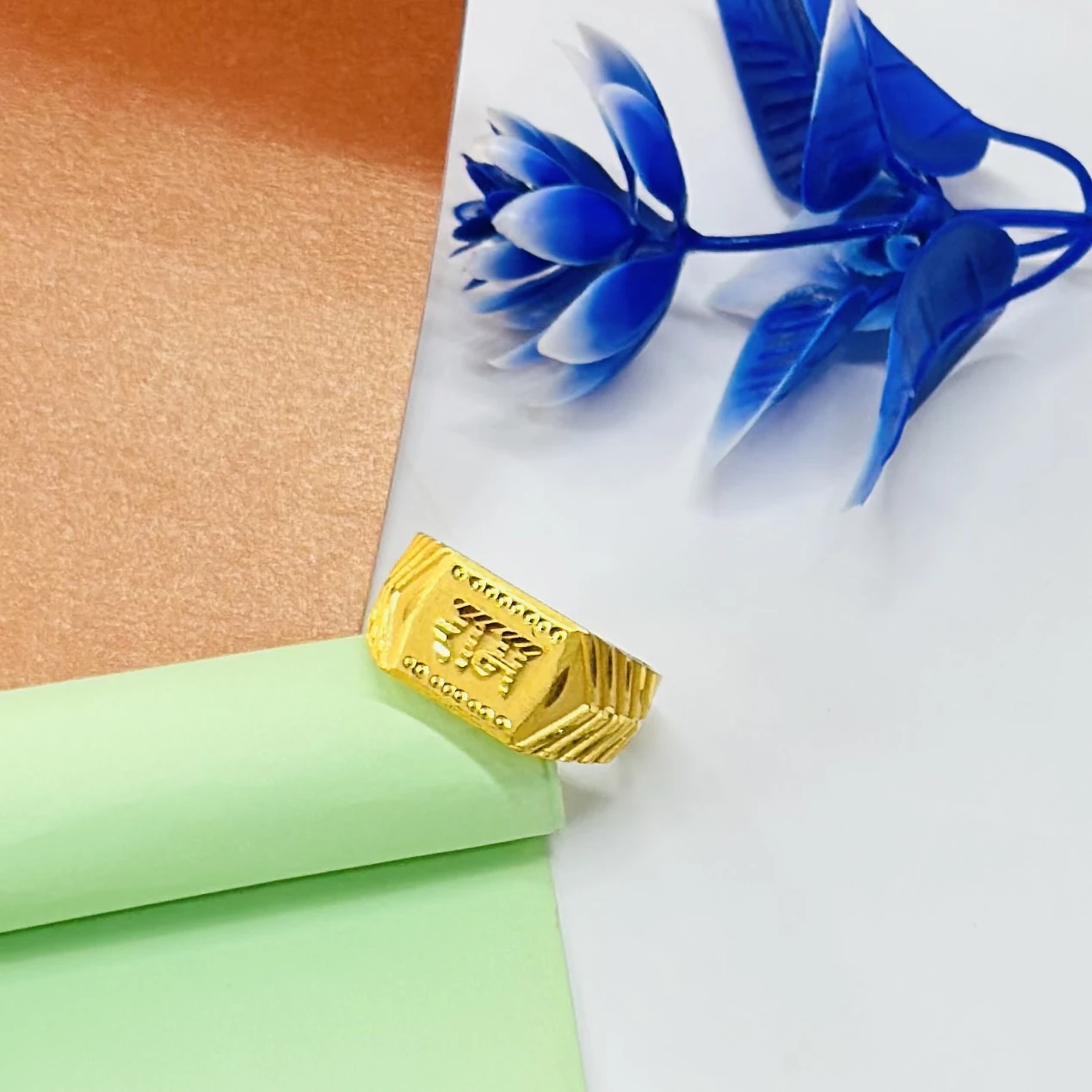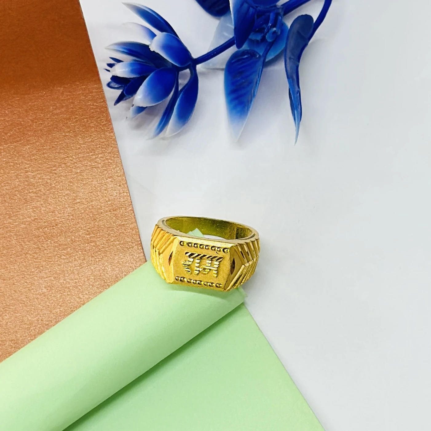 👉 Theme :-Premium Rectangular Gold-Plated, Gold Look Finely Detailed Handmade Ring for Men