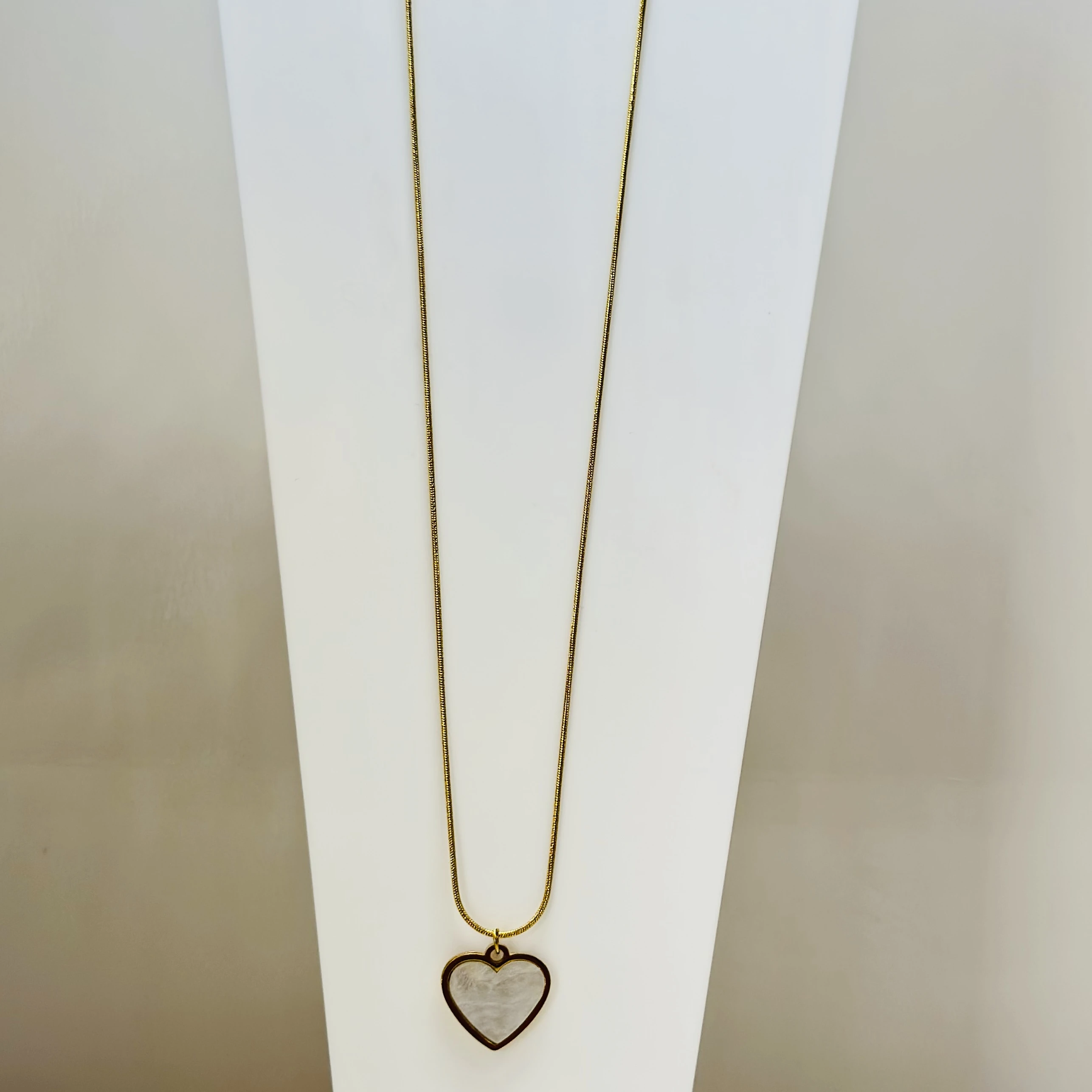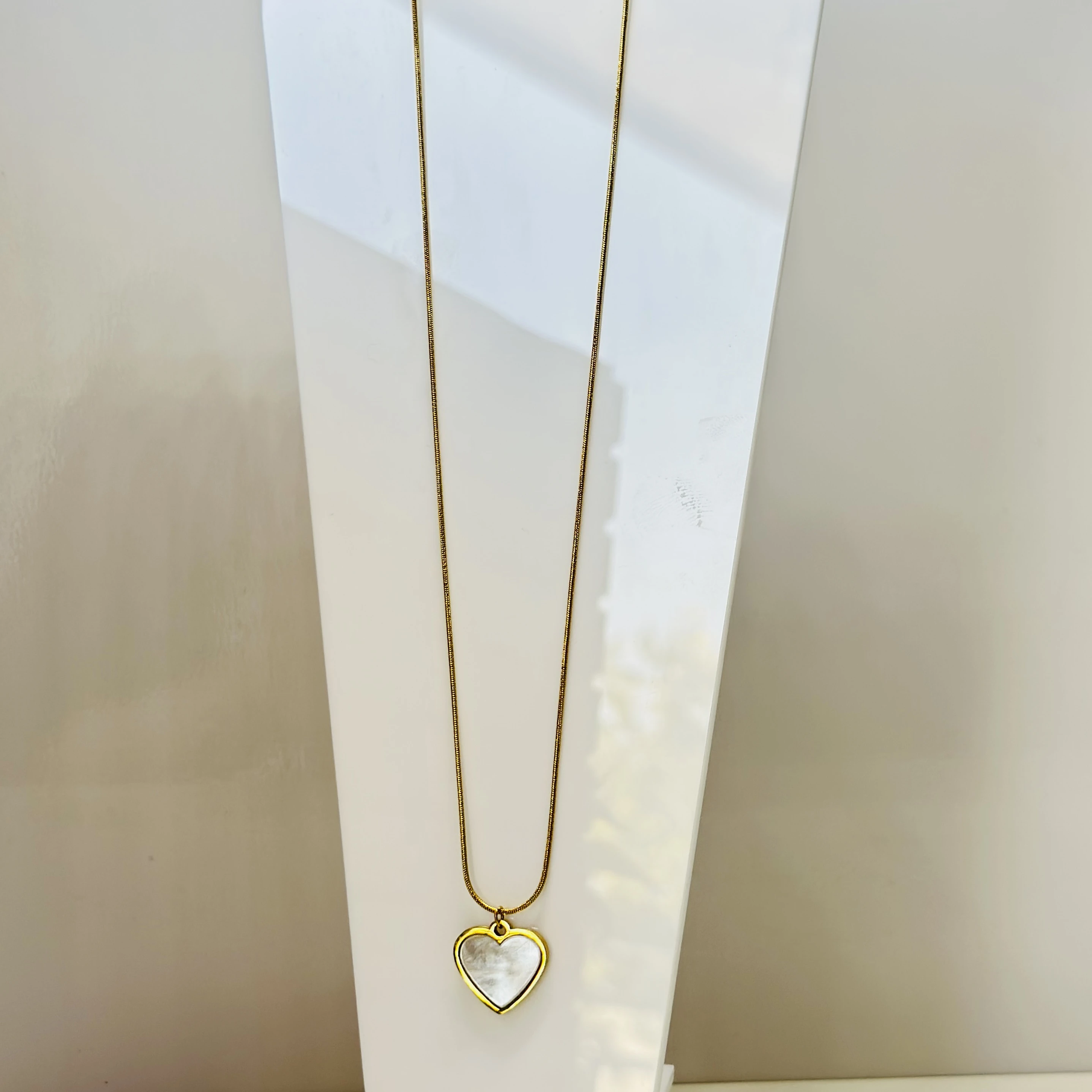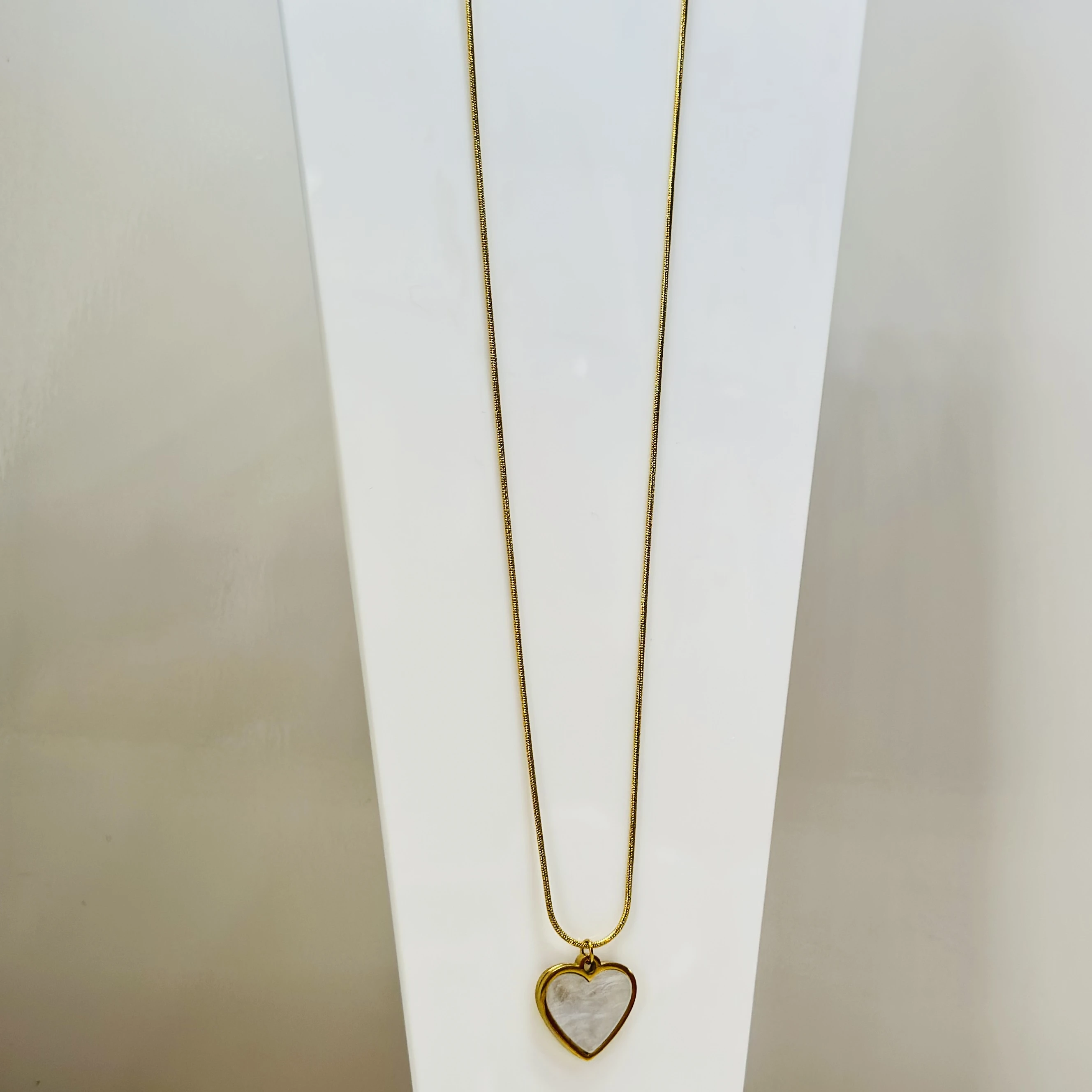 👉Theme :- gold-plated Snake Chain a White heart pendant.