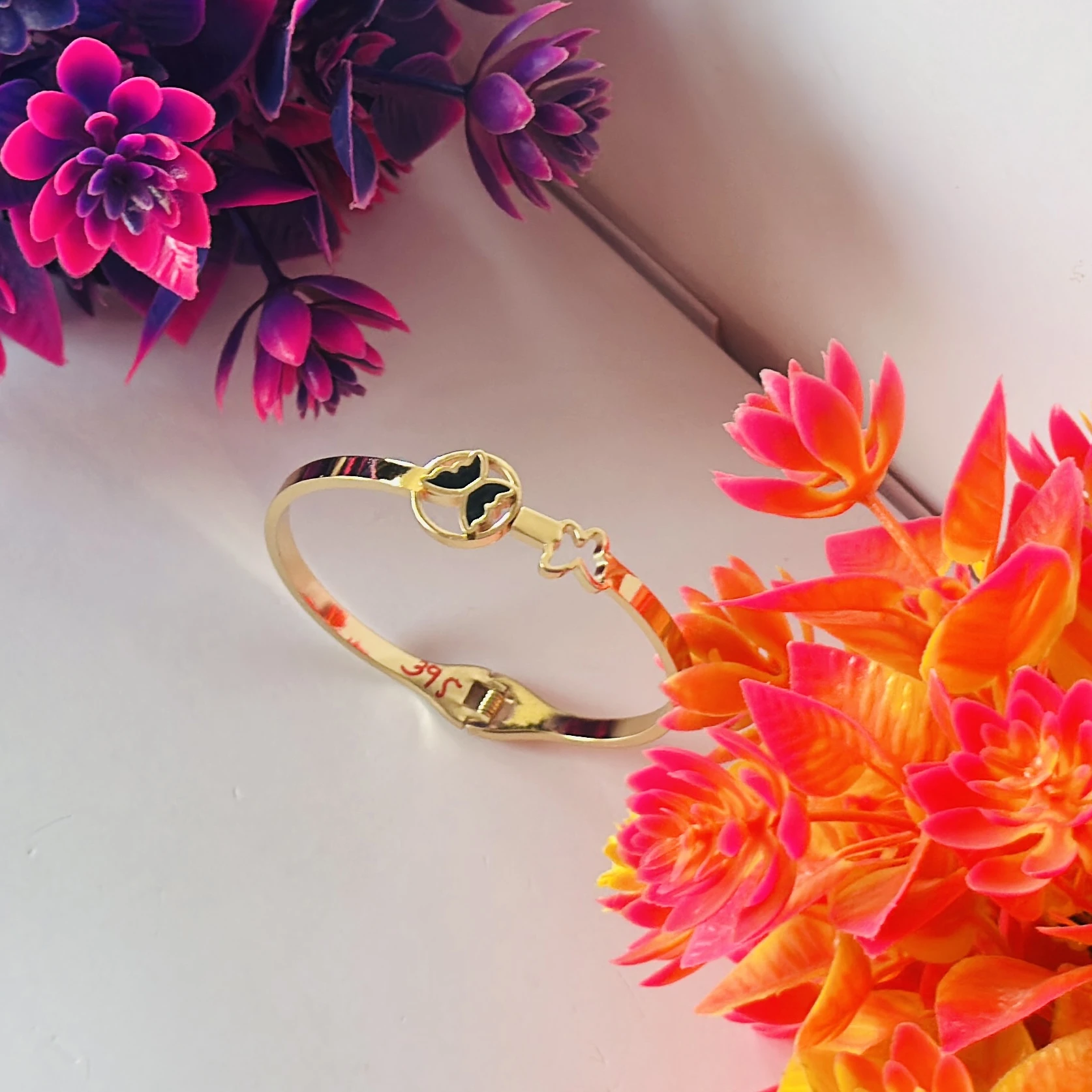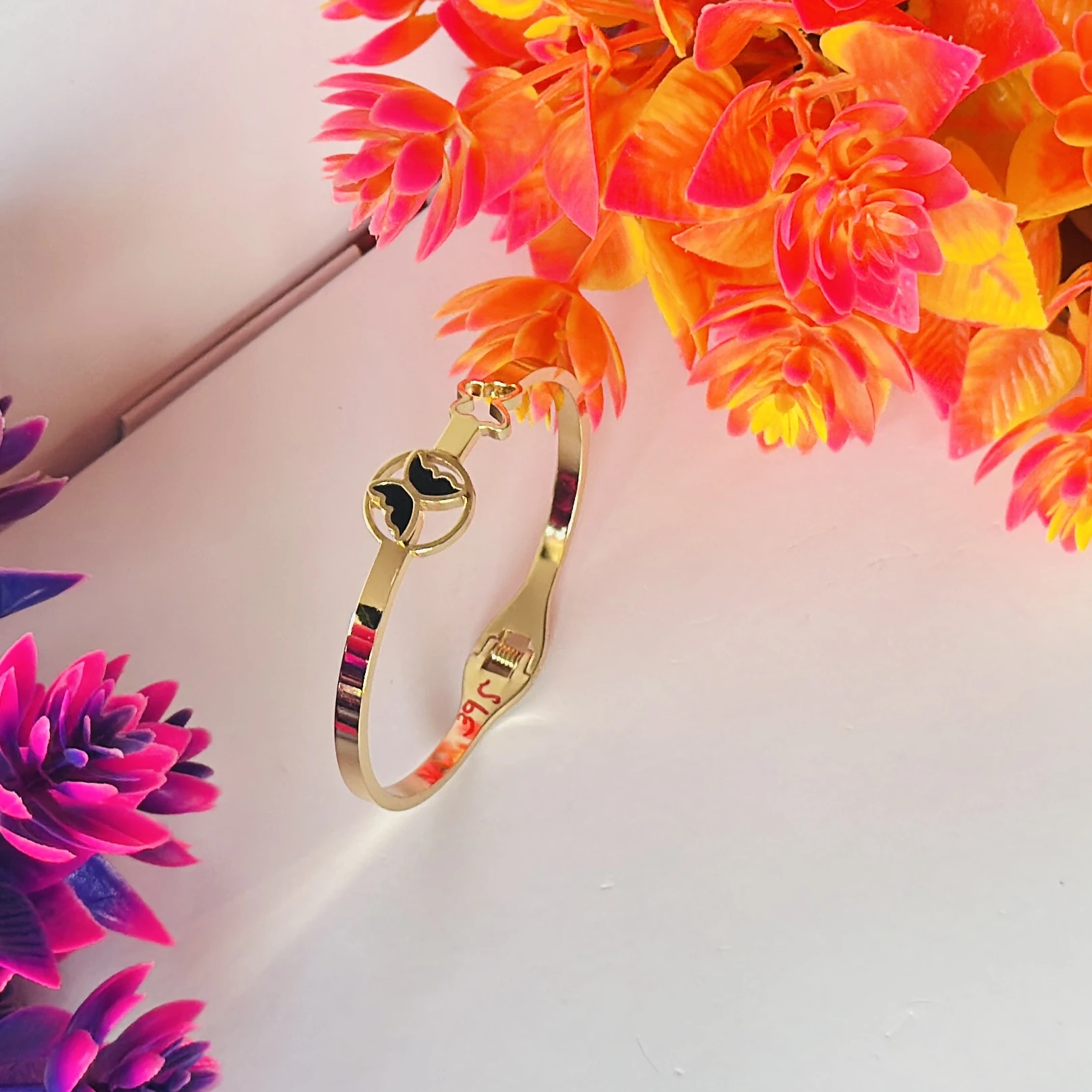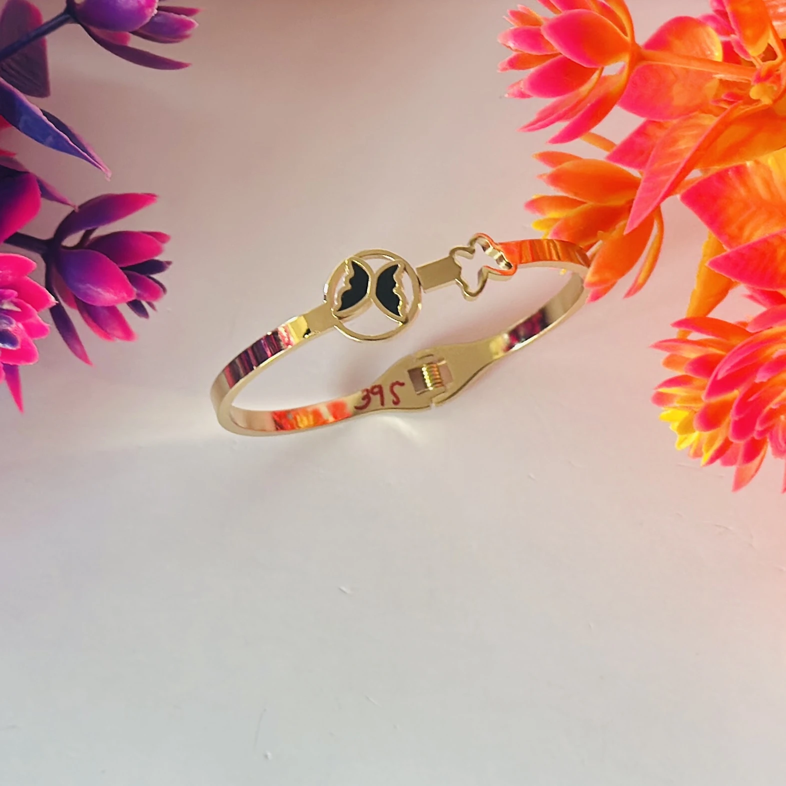 👉Theme :- Gold plated stainless steel anti-tarnish bangle bracelet with a black butterfly charm.