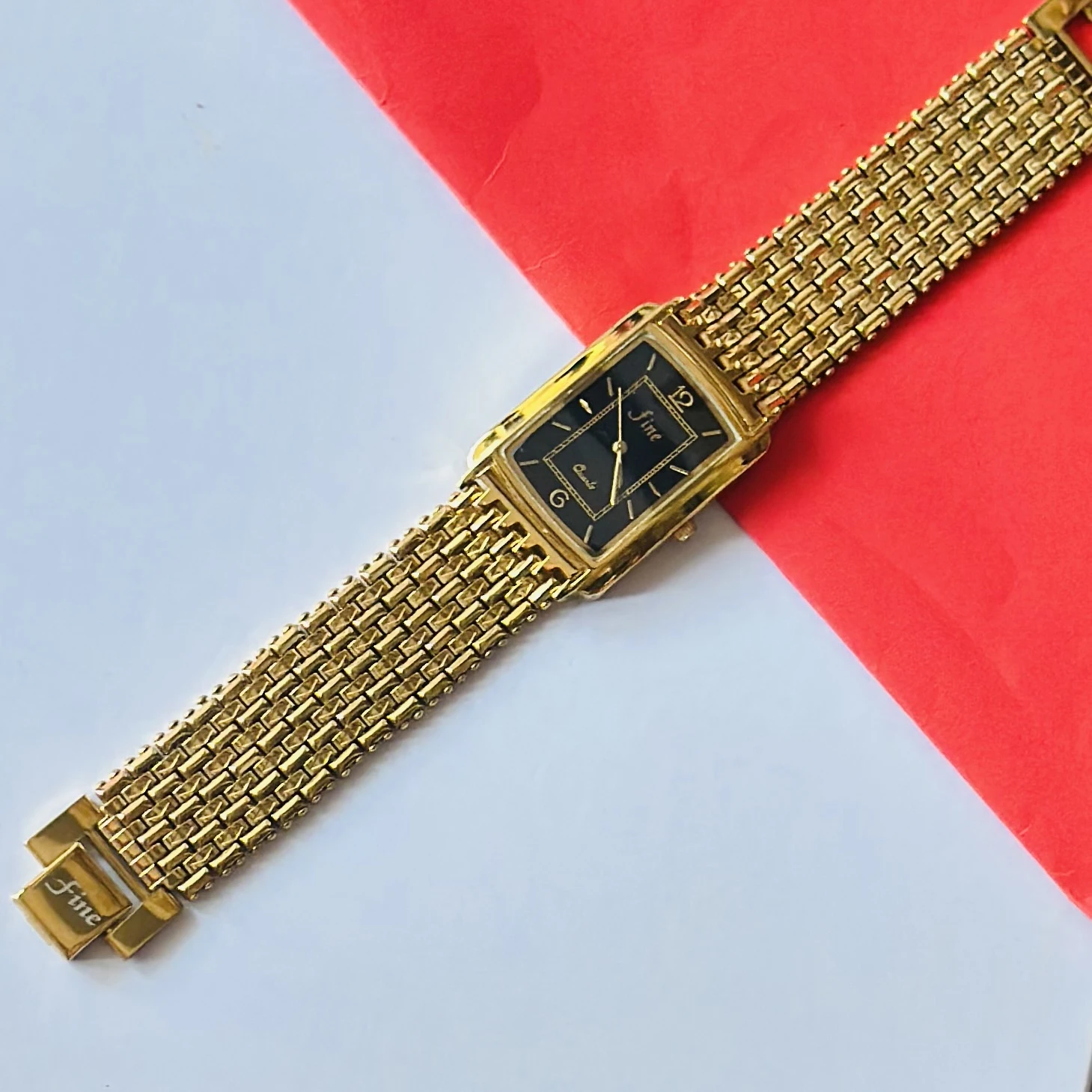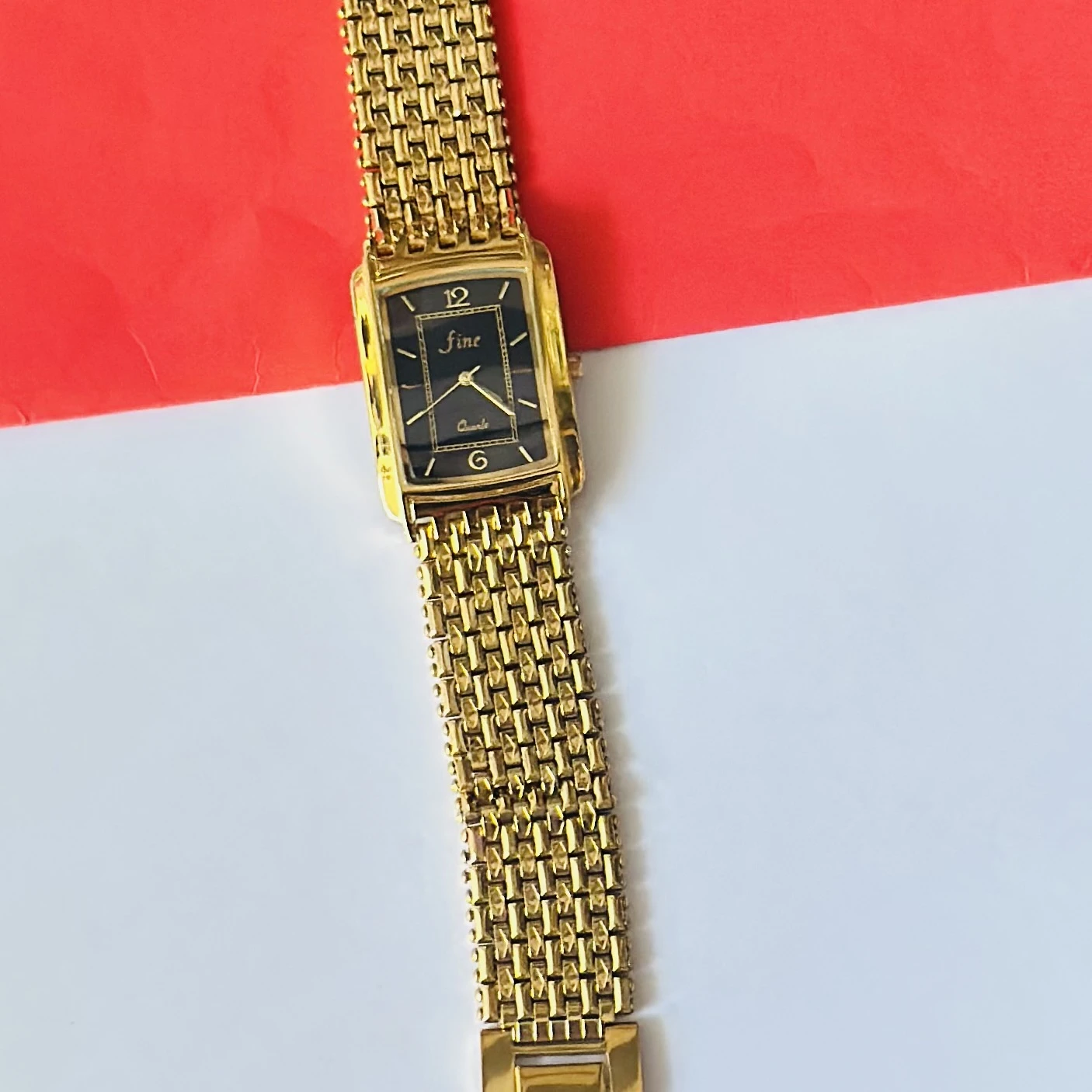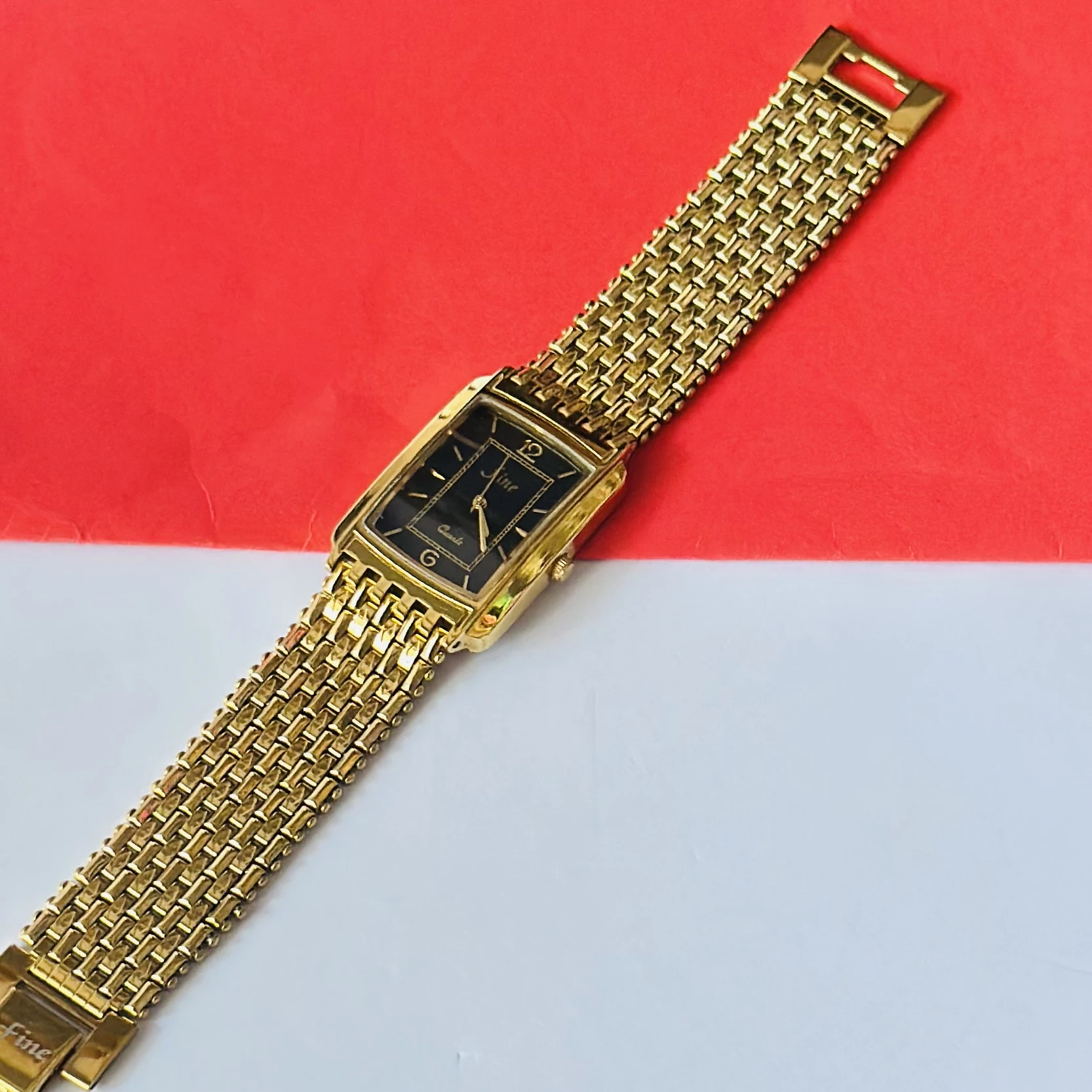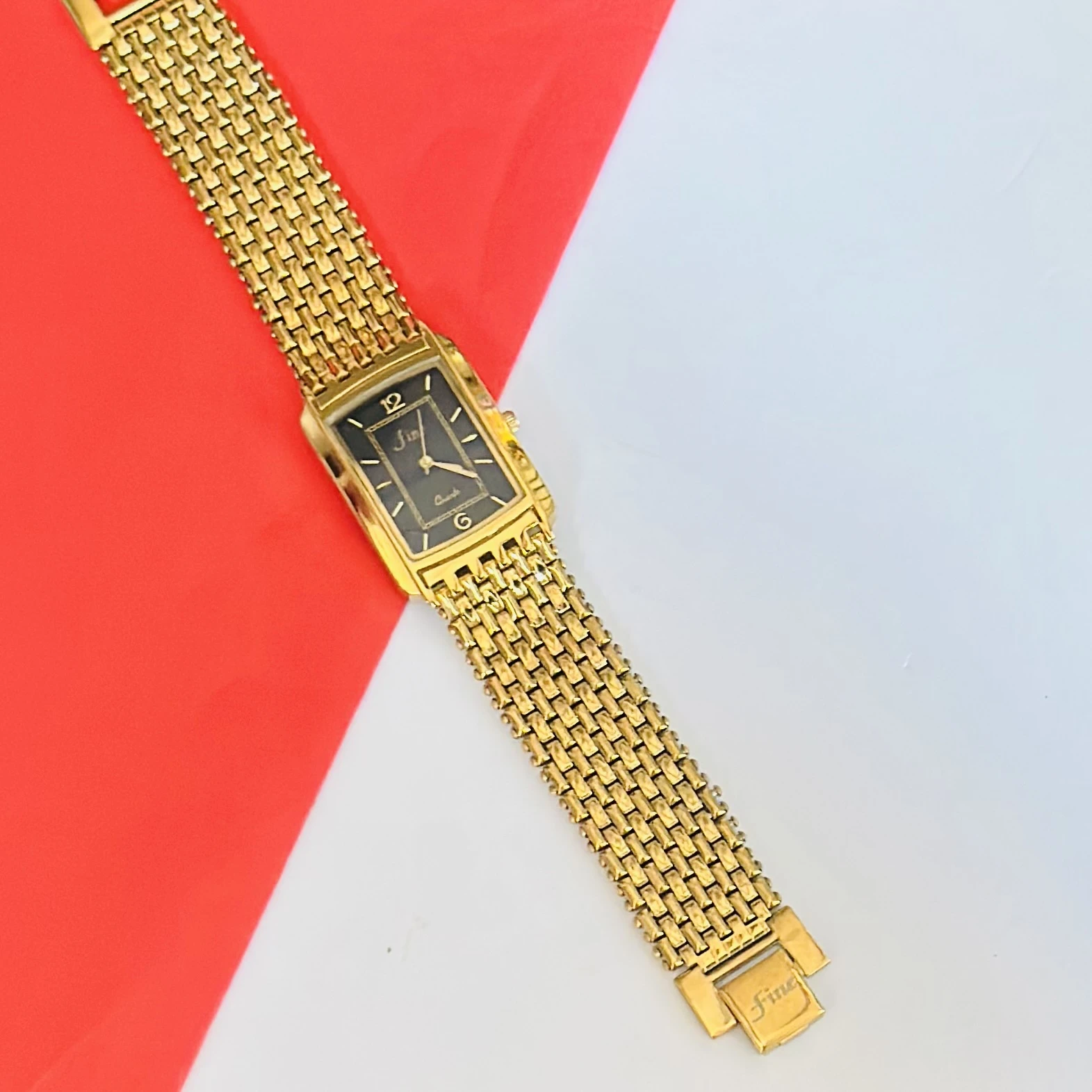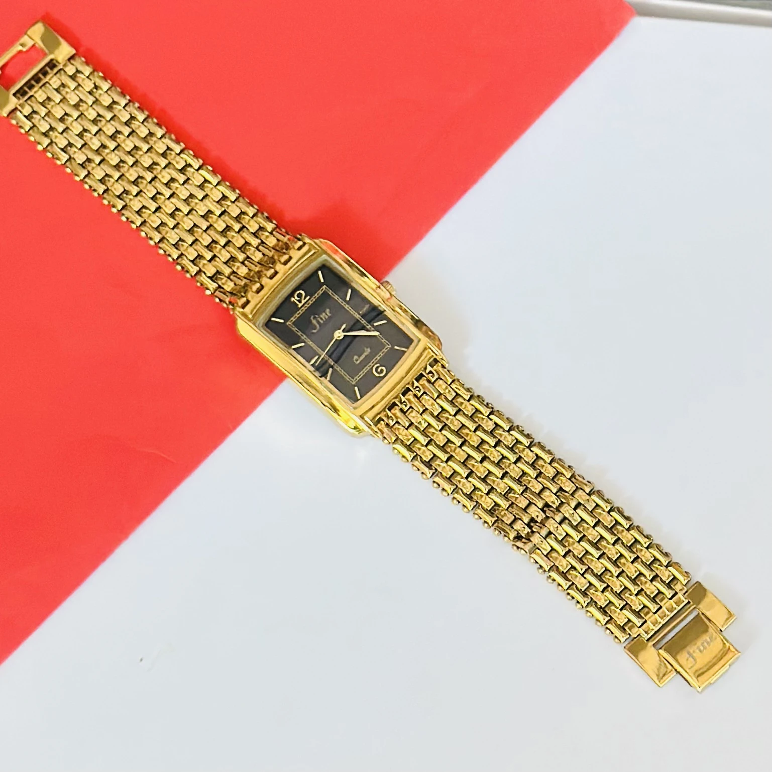 👉 Theme :- Gold tone analog quartz watch with a metal strap.