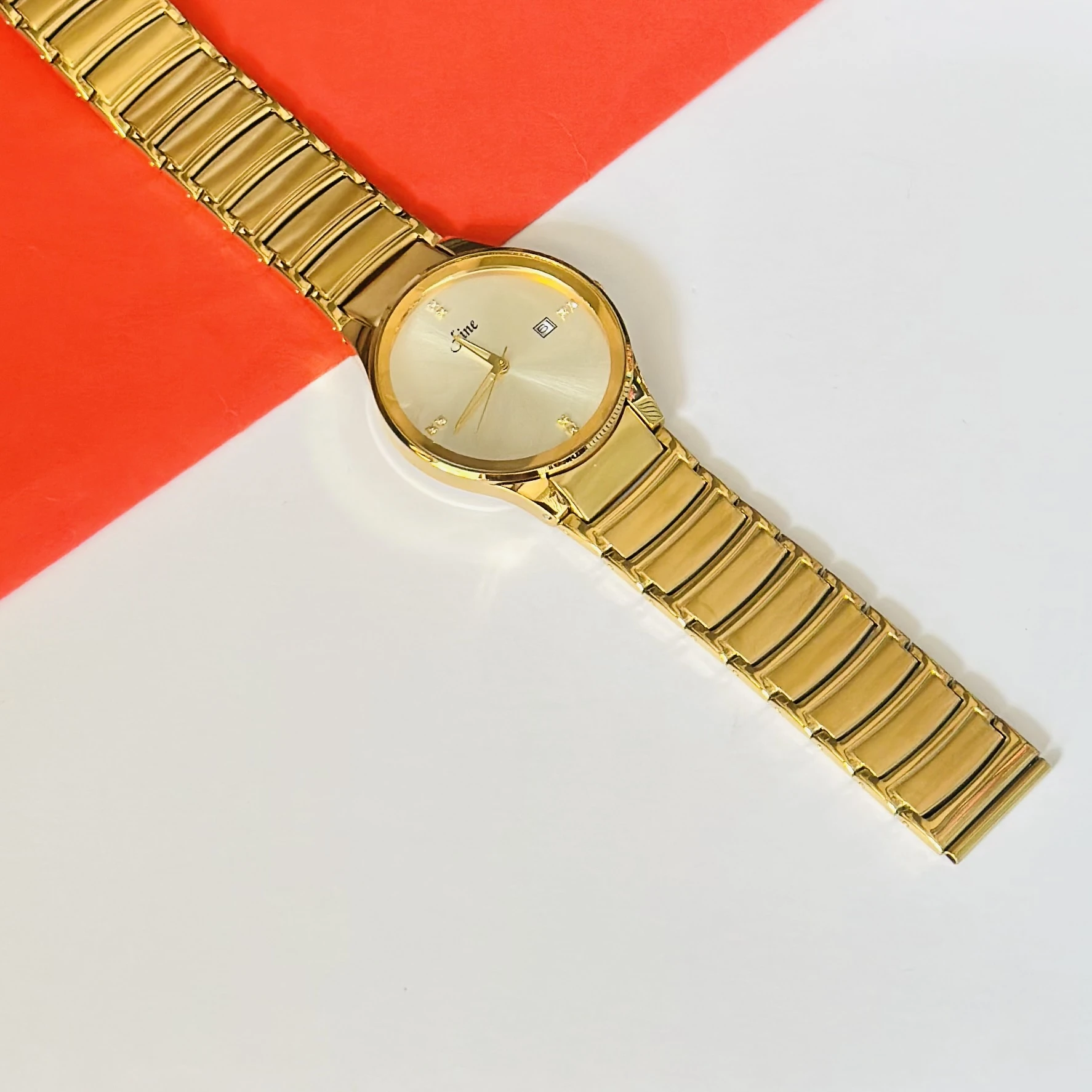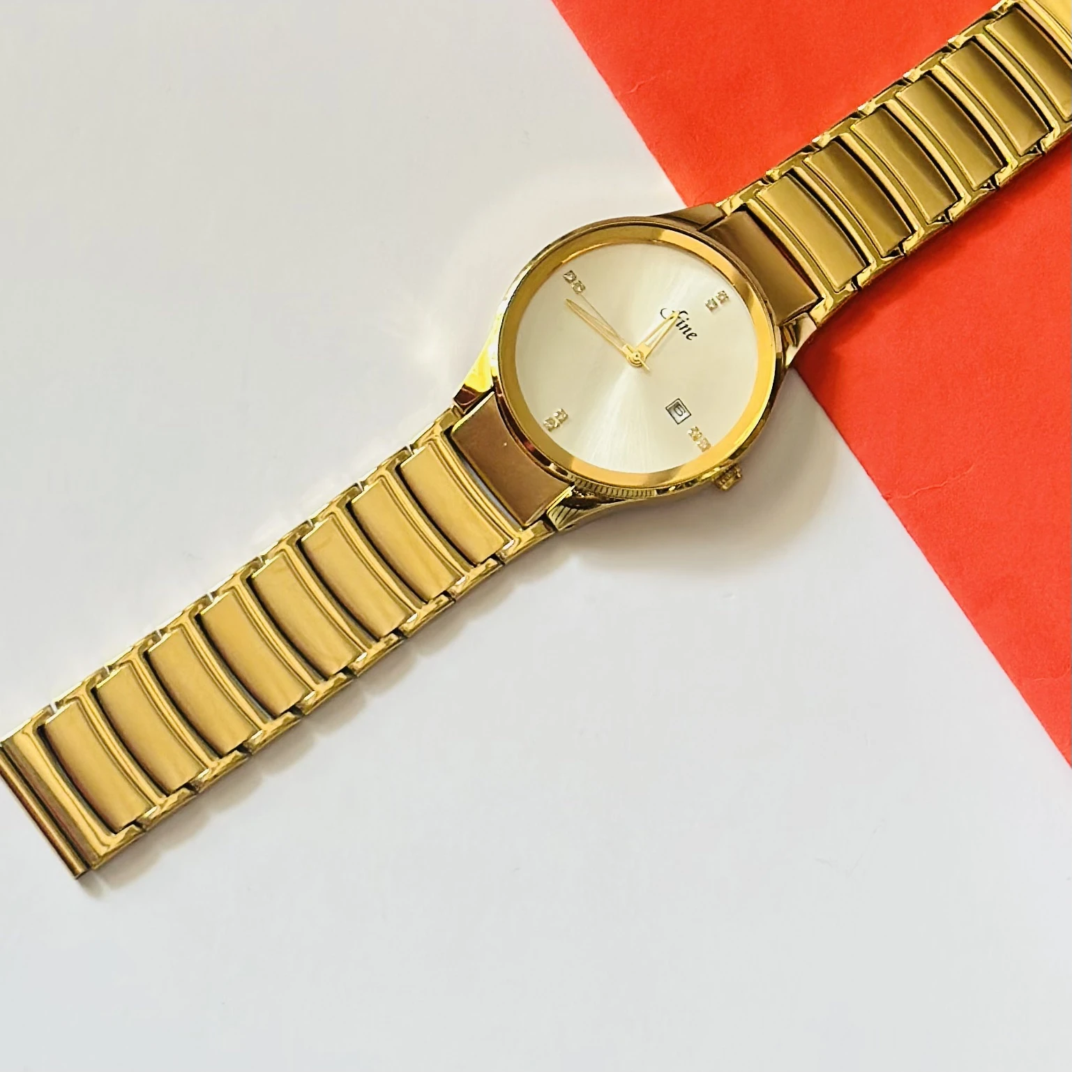👉 Theme :- Gold toned analog watch with a stainless steel strap