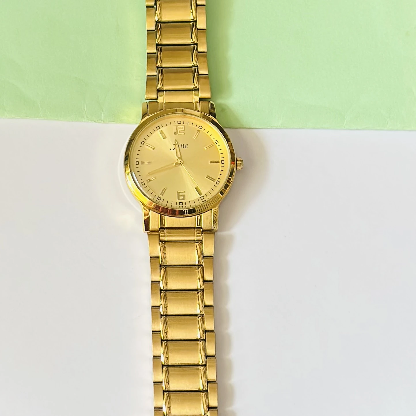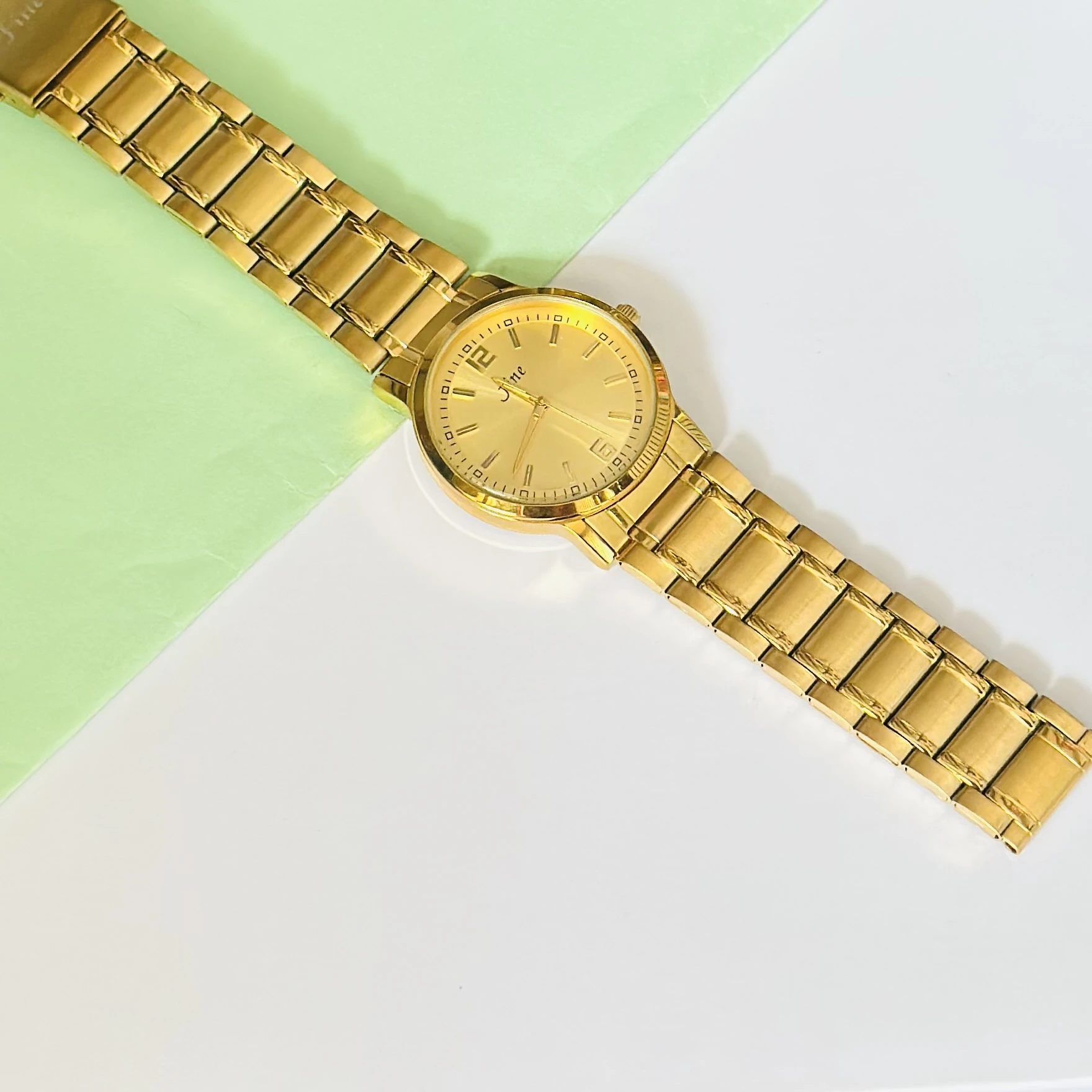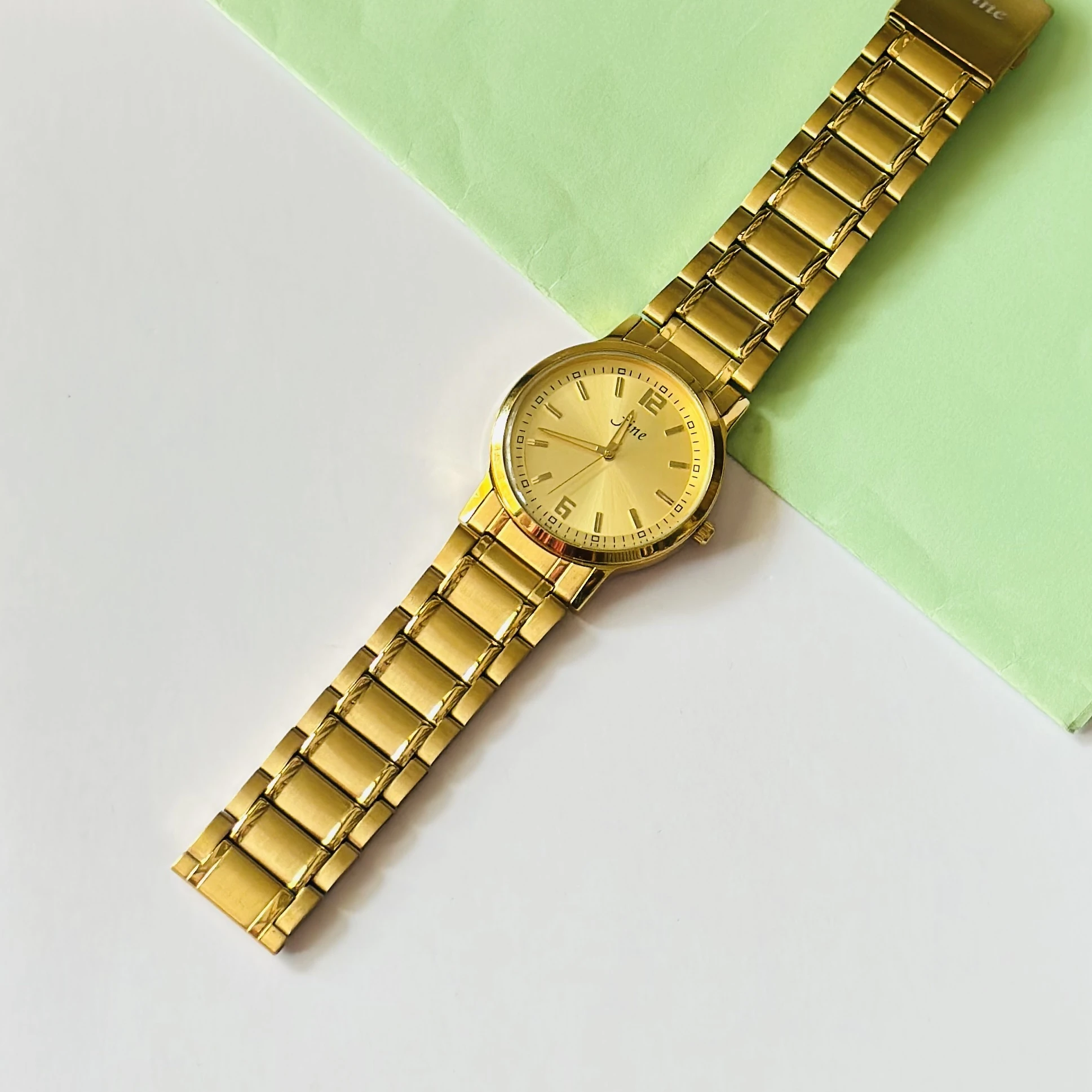 👉 Theme :- Gold toned analog watch with a stainless steel strap