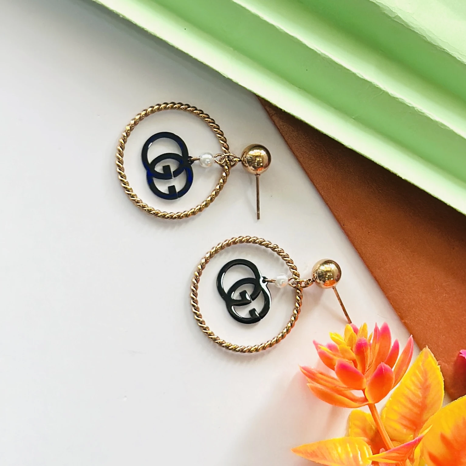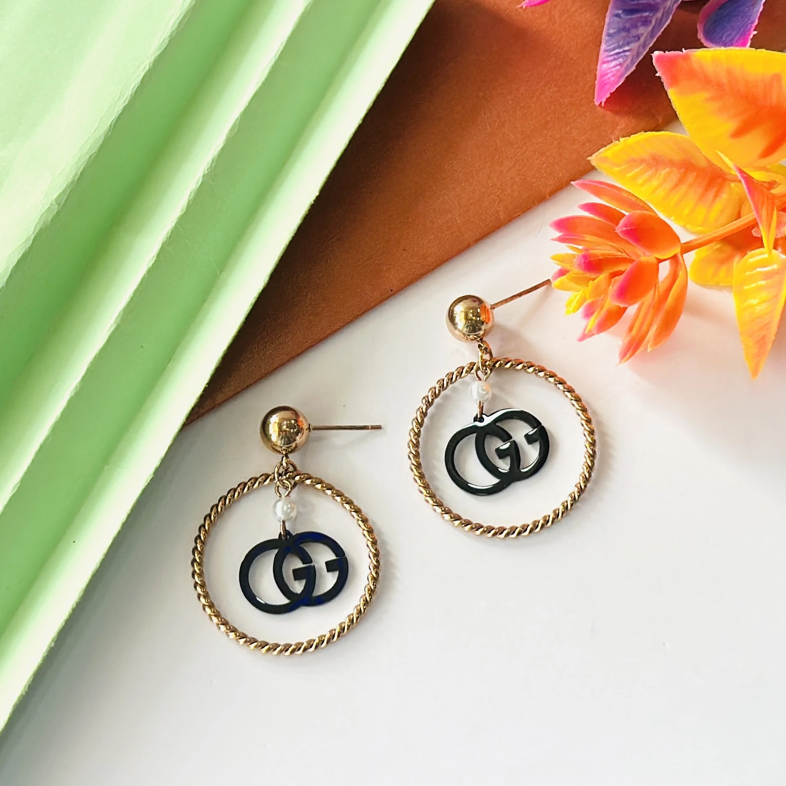 👉Theme :- Gold toned and black fashion hoop earrings