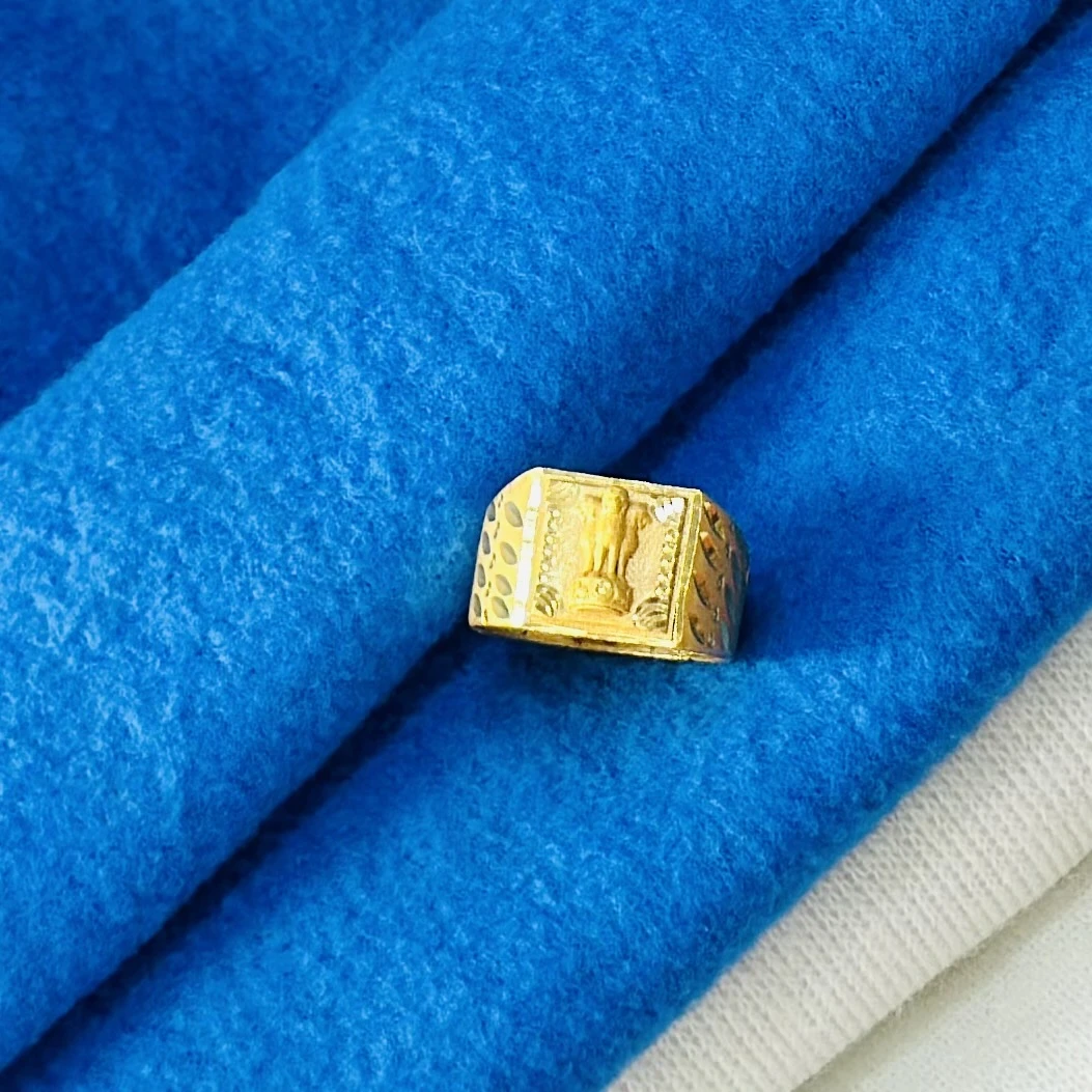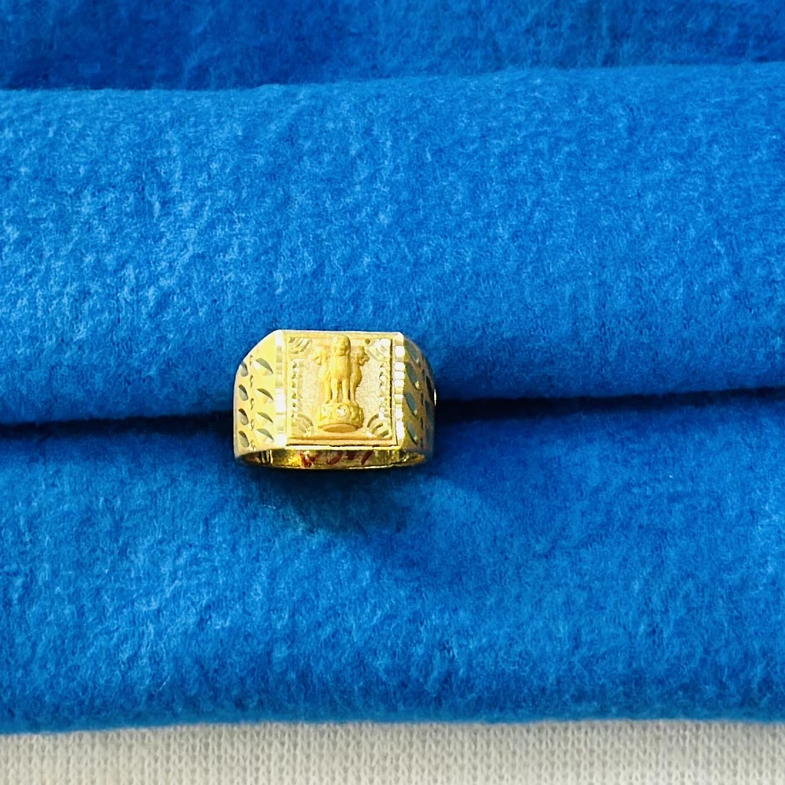 👉 Theme :- Gold gent's ring with a textured design and diamond accents.