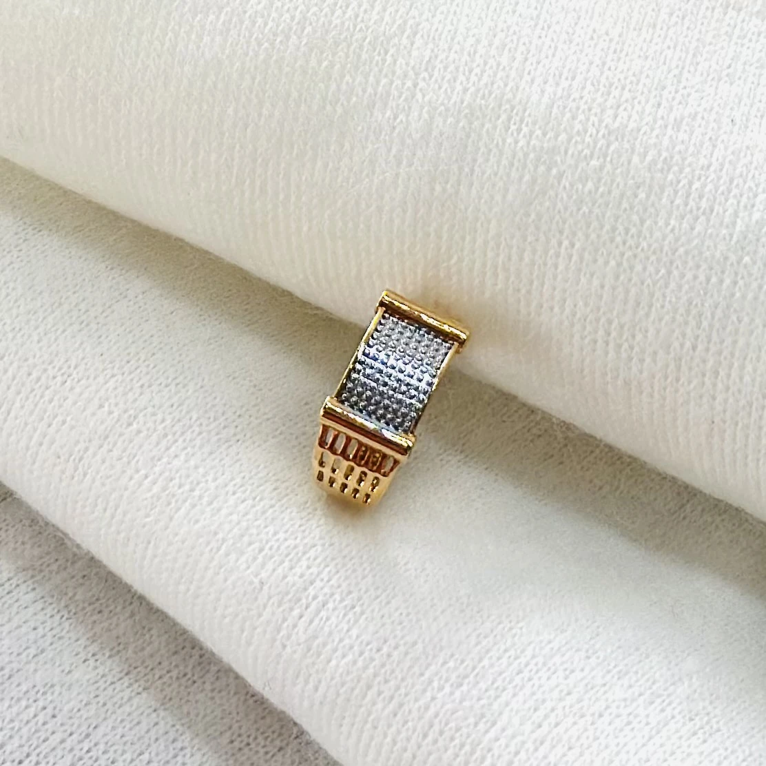 👉 Theme :- Gold gent's ring with a textured design and diamond accents.
