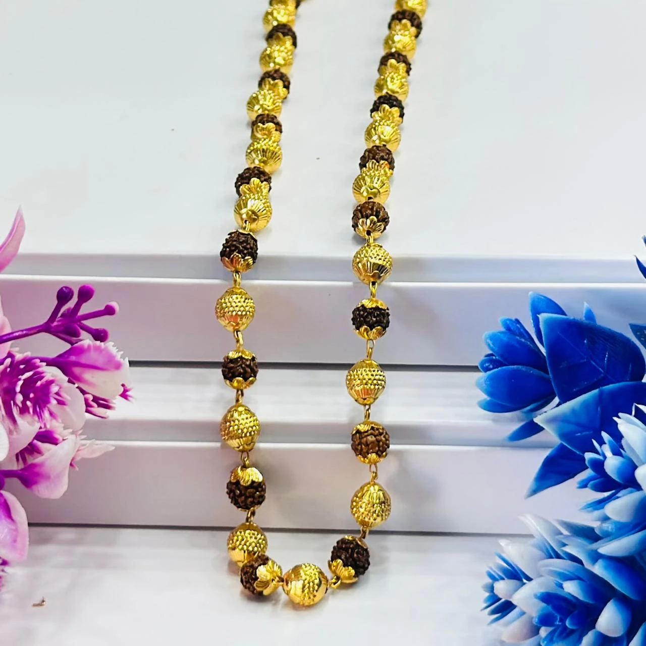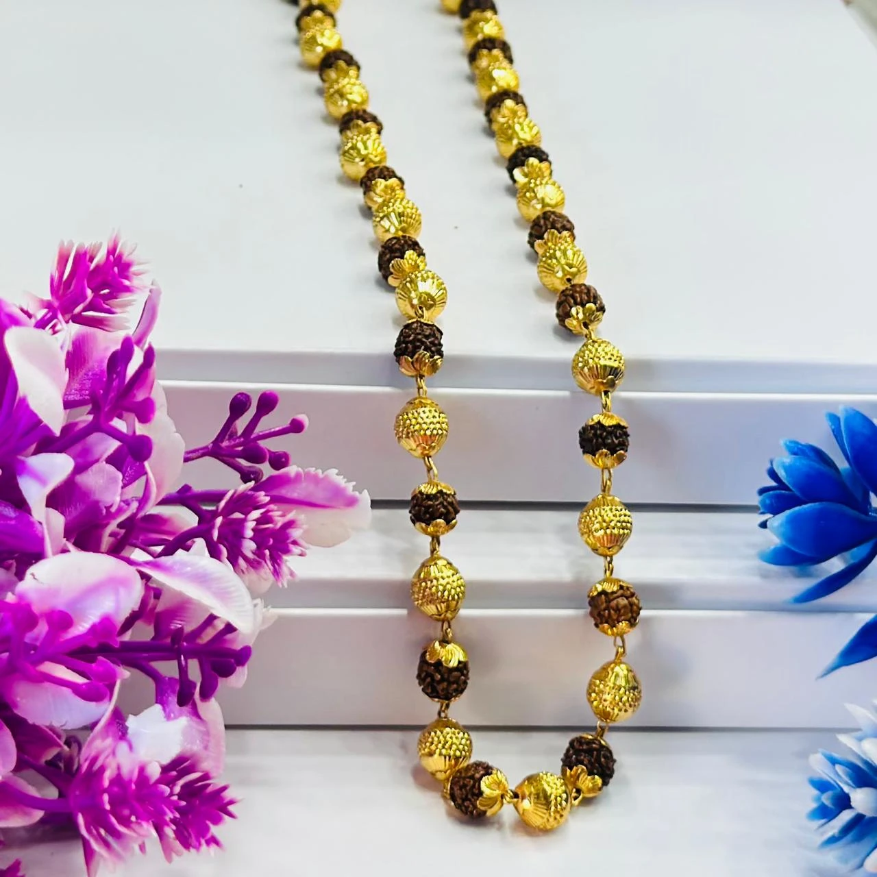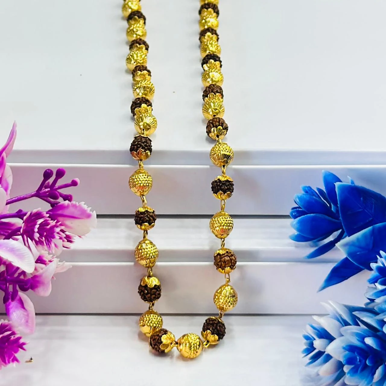 👉 Theme :- Golden Flower Brown Rudraksha Mala