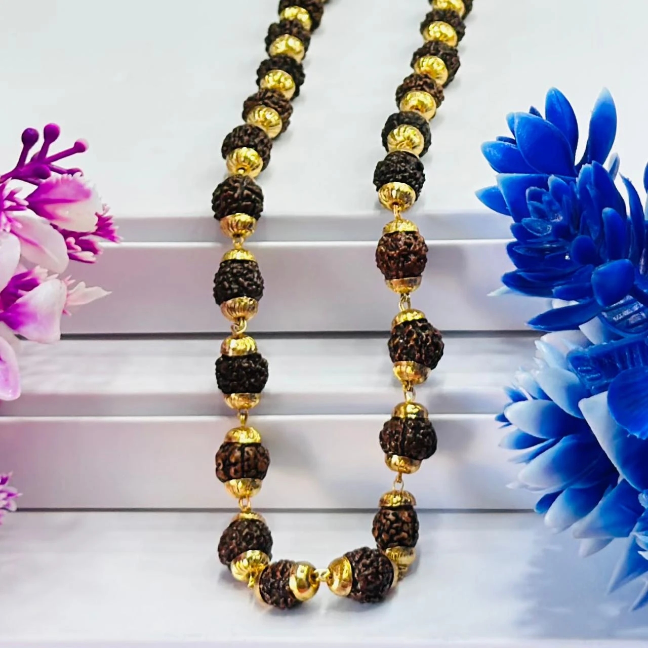 👉 Theme :- Golden Flower Brown Rudraksha Mala