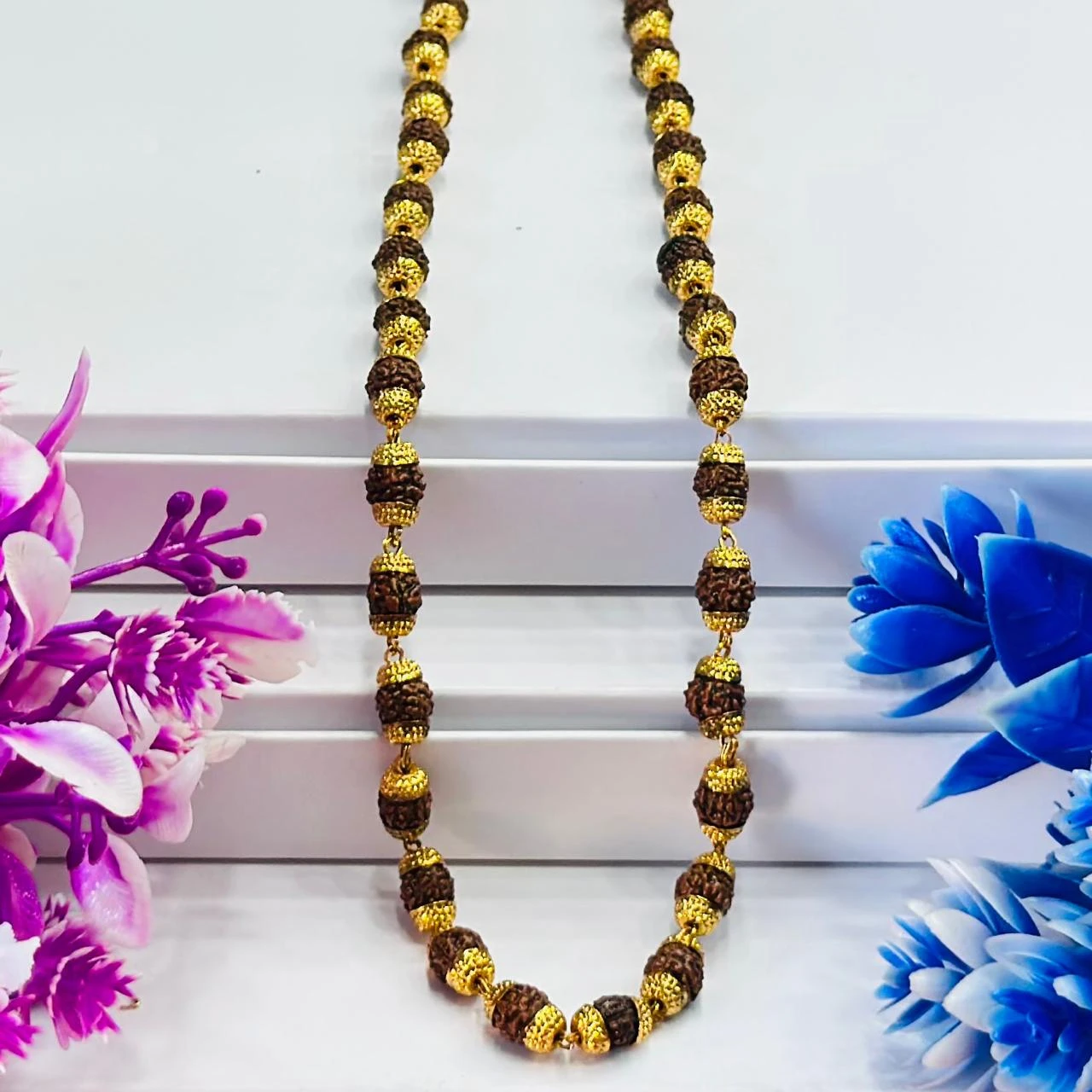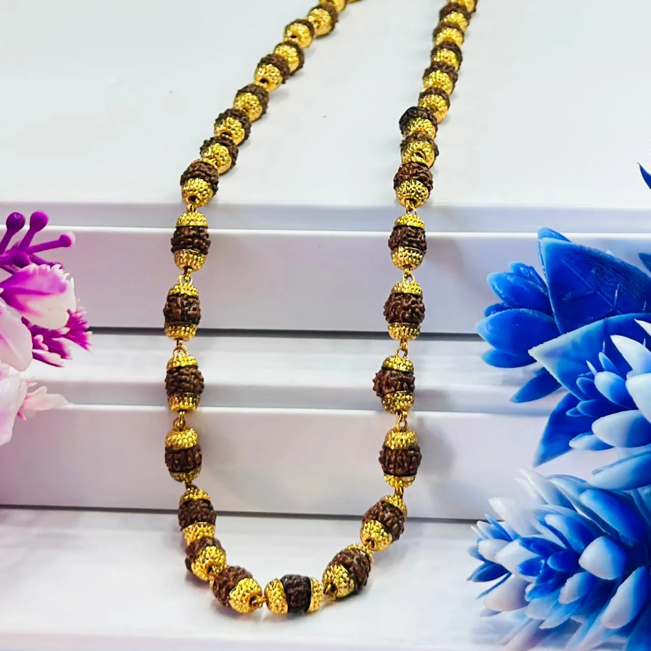 👉 Theme :- Golden Flower Brown Rudraksha Mala