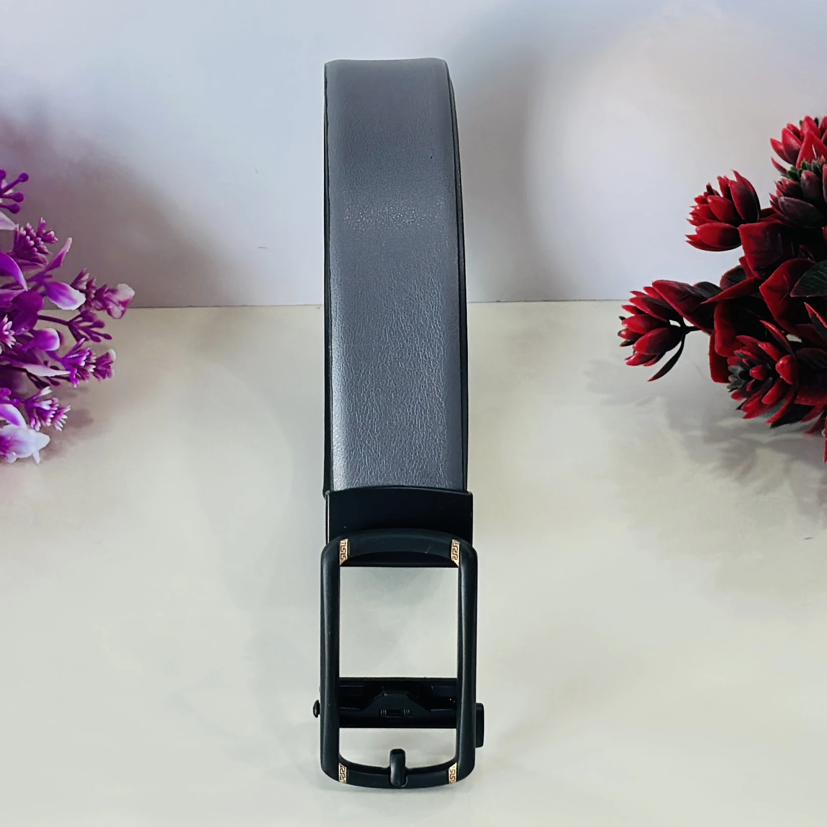 👉 Theme :- Grey genuine leather ratchet belt