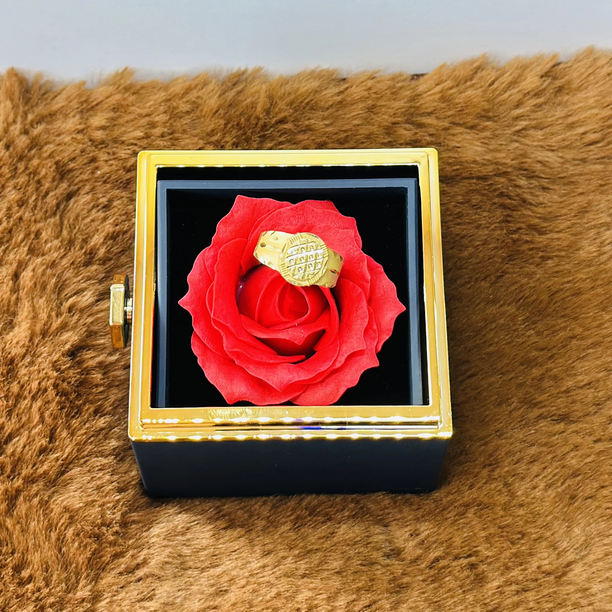 Hallmark gold ring for men displayed in a presentation box.