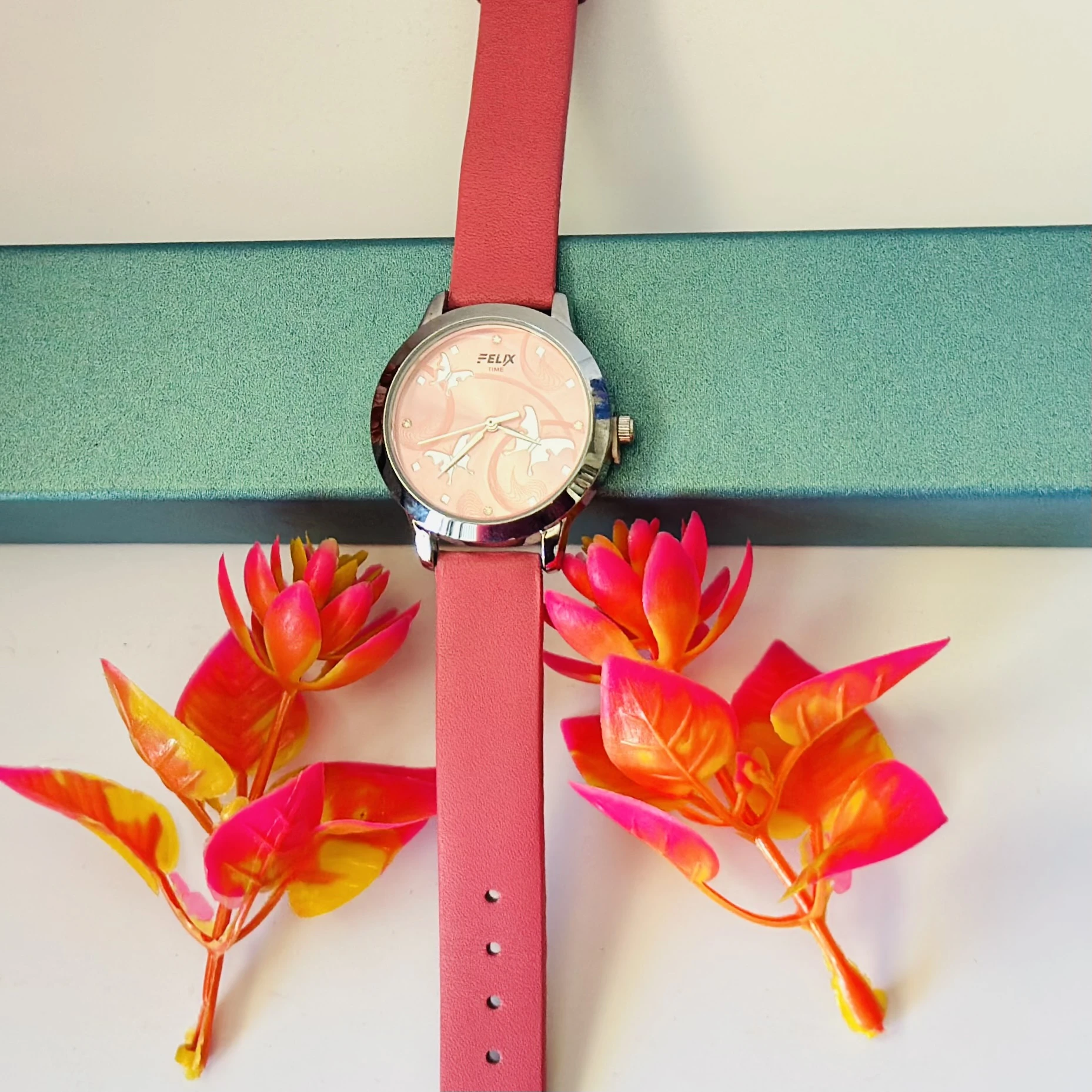 👉 Theme :- Helix by Timex pink round dial analog leather women's watch.