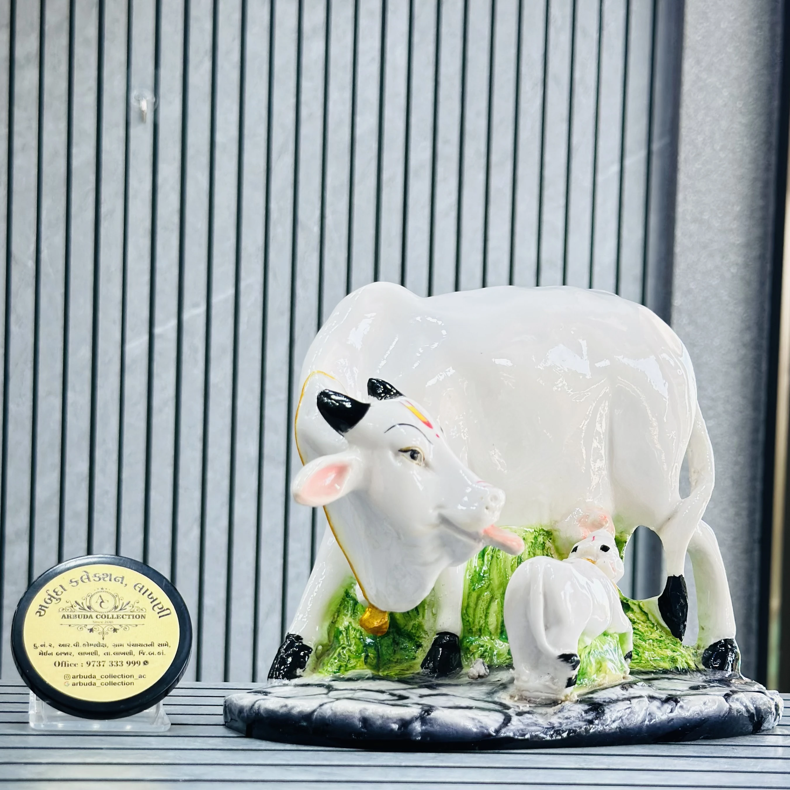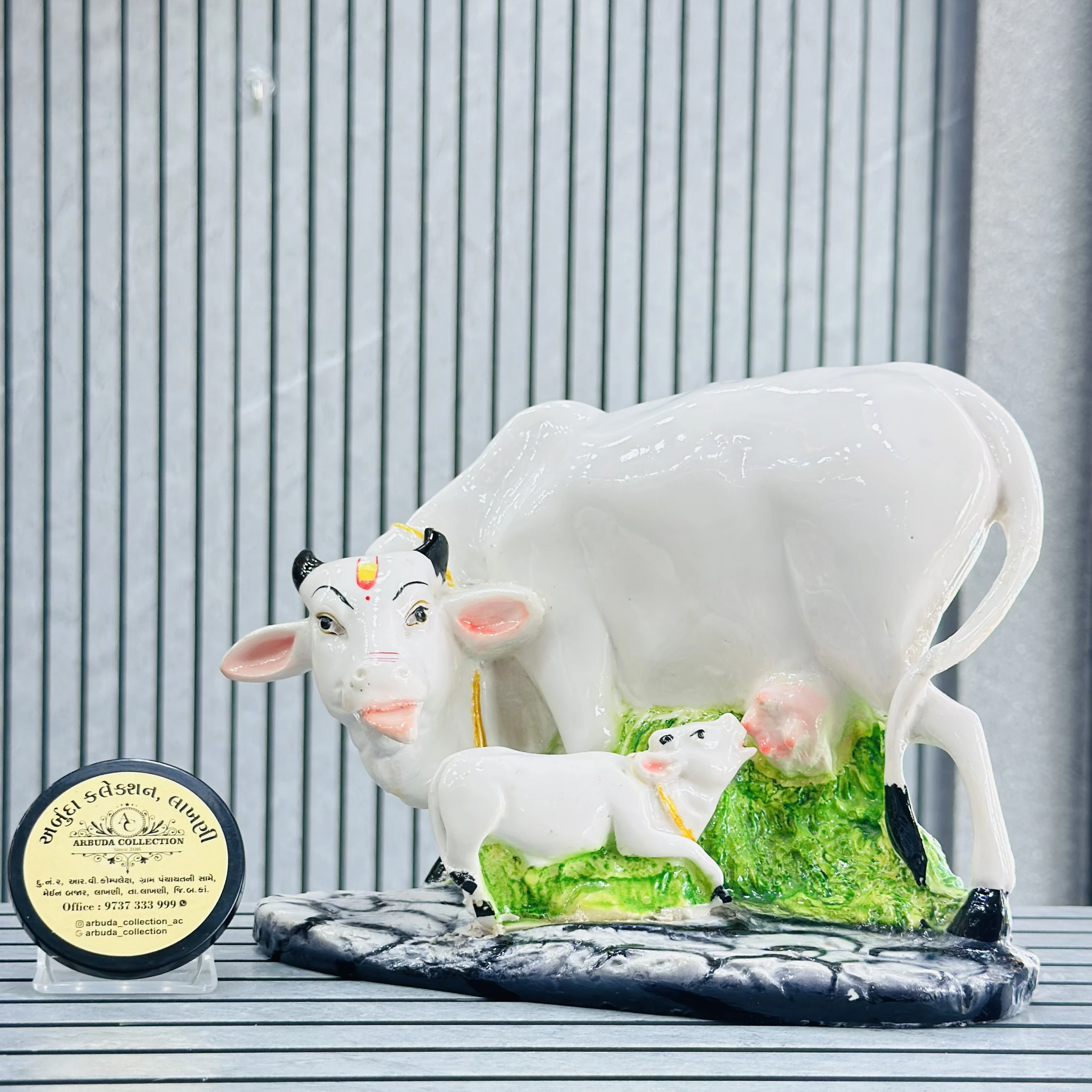 *✅ ARBUDA COLLECTION ✅* *✅9737333999✅* Theme :- Kamdhenu cow murti Brand :- arbuda collection lakhani Colour:- mixed Style:- traditional Material:- imported cality Dimensions :- 8 Hight , 9 width Uses :- mandir, pooja Room… Cleaning:- wipe clean with a dry cloth Origin:- made in India by local artists Other words:- limited addition…