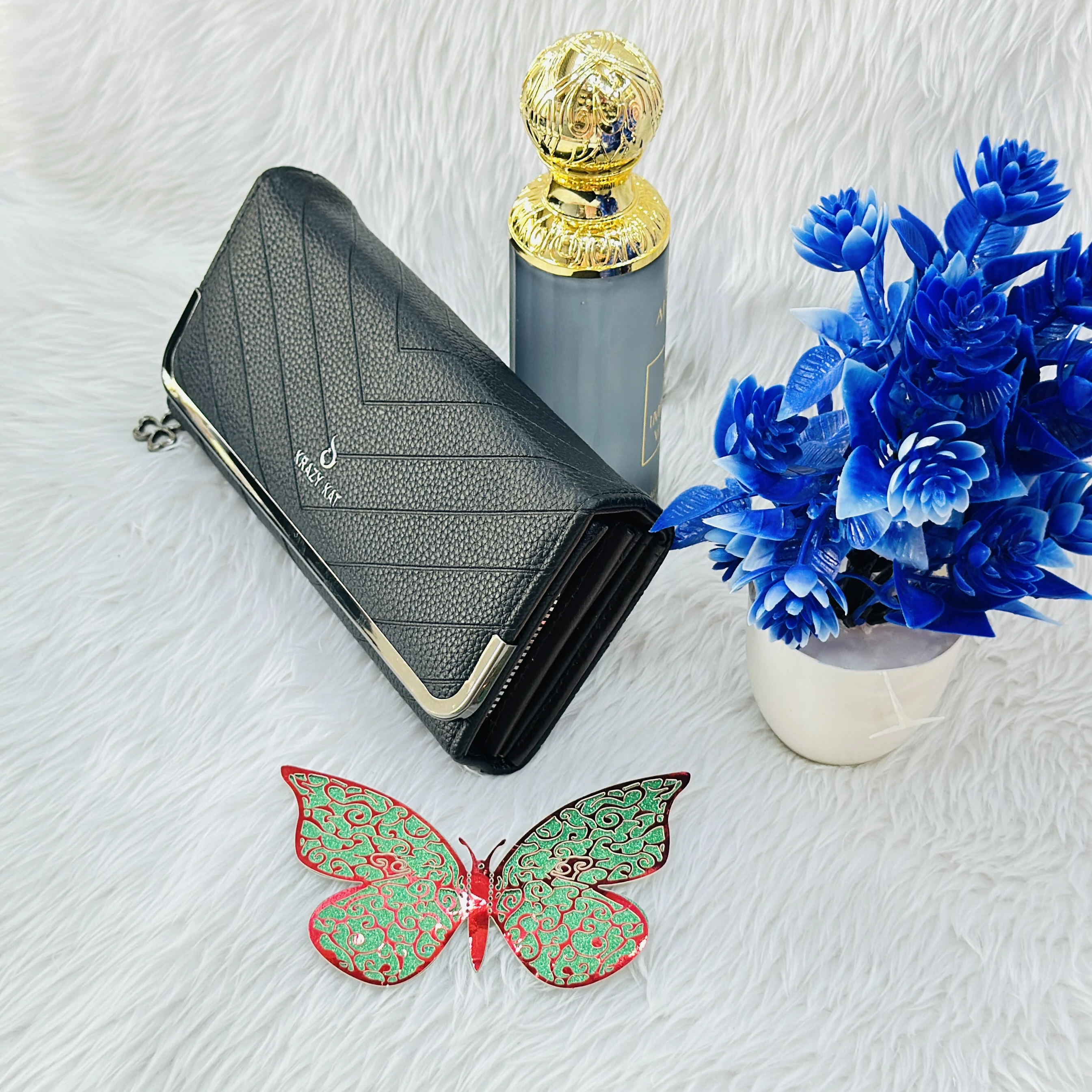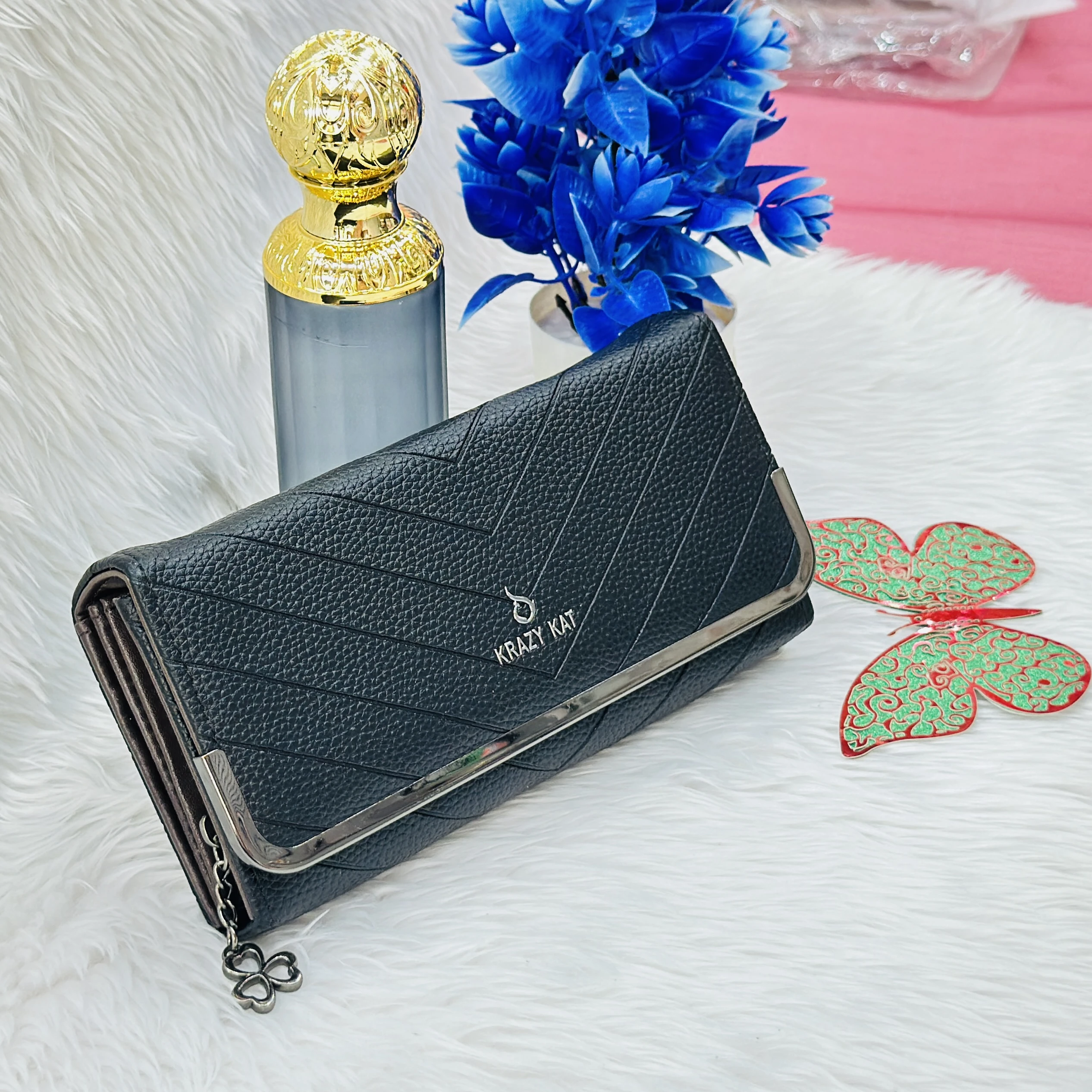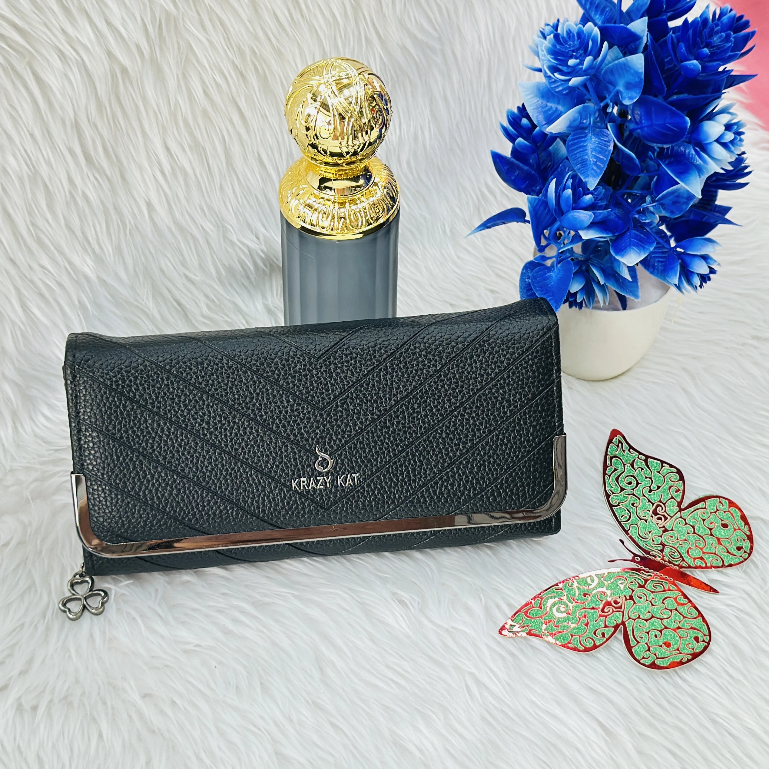 👉 Theme :- Krazy Kat branded black textured faux leather clutch wallet