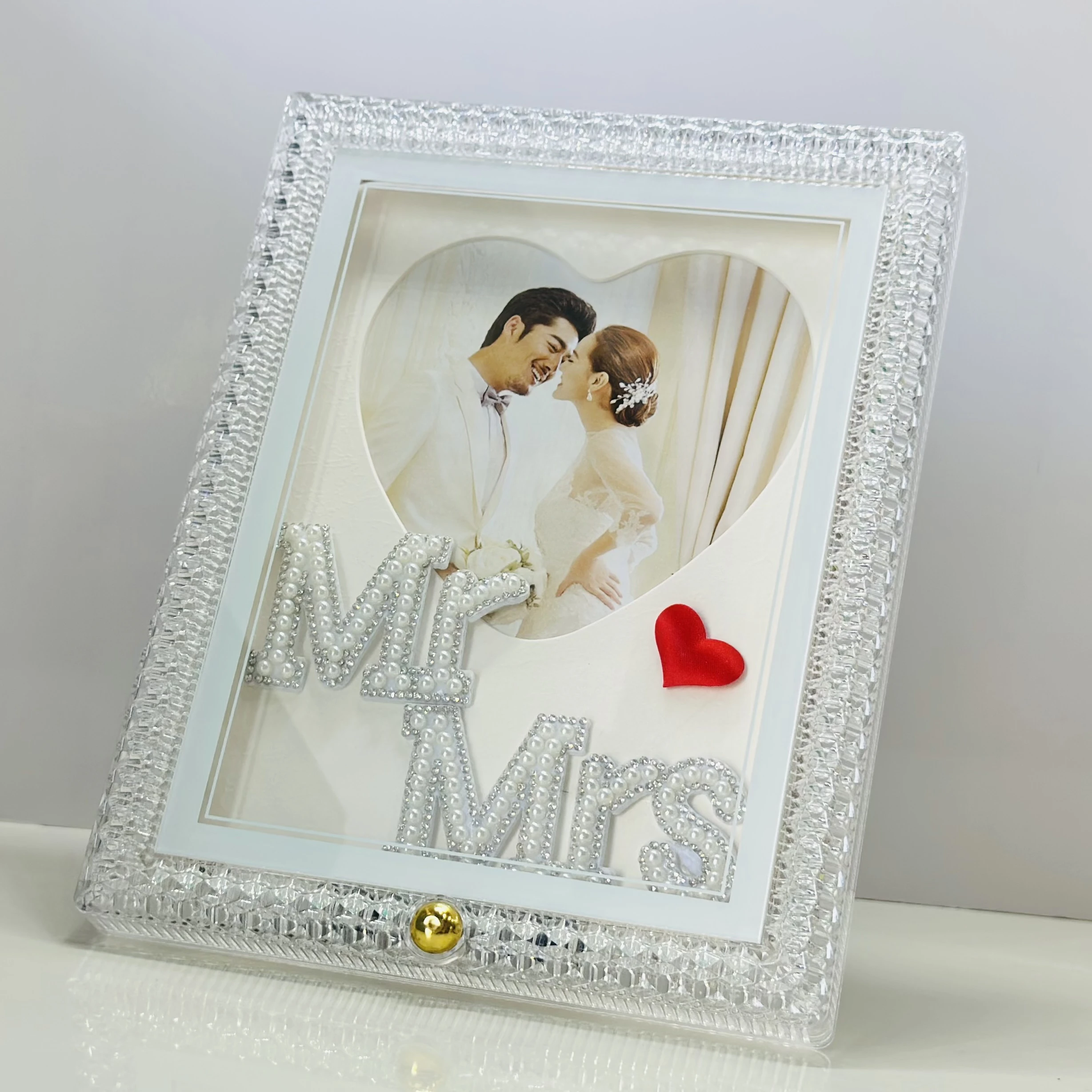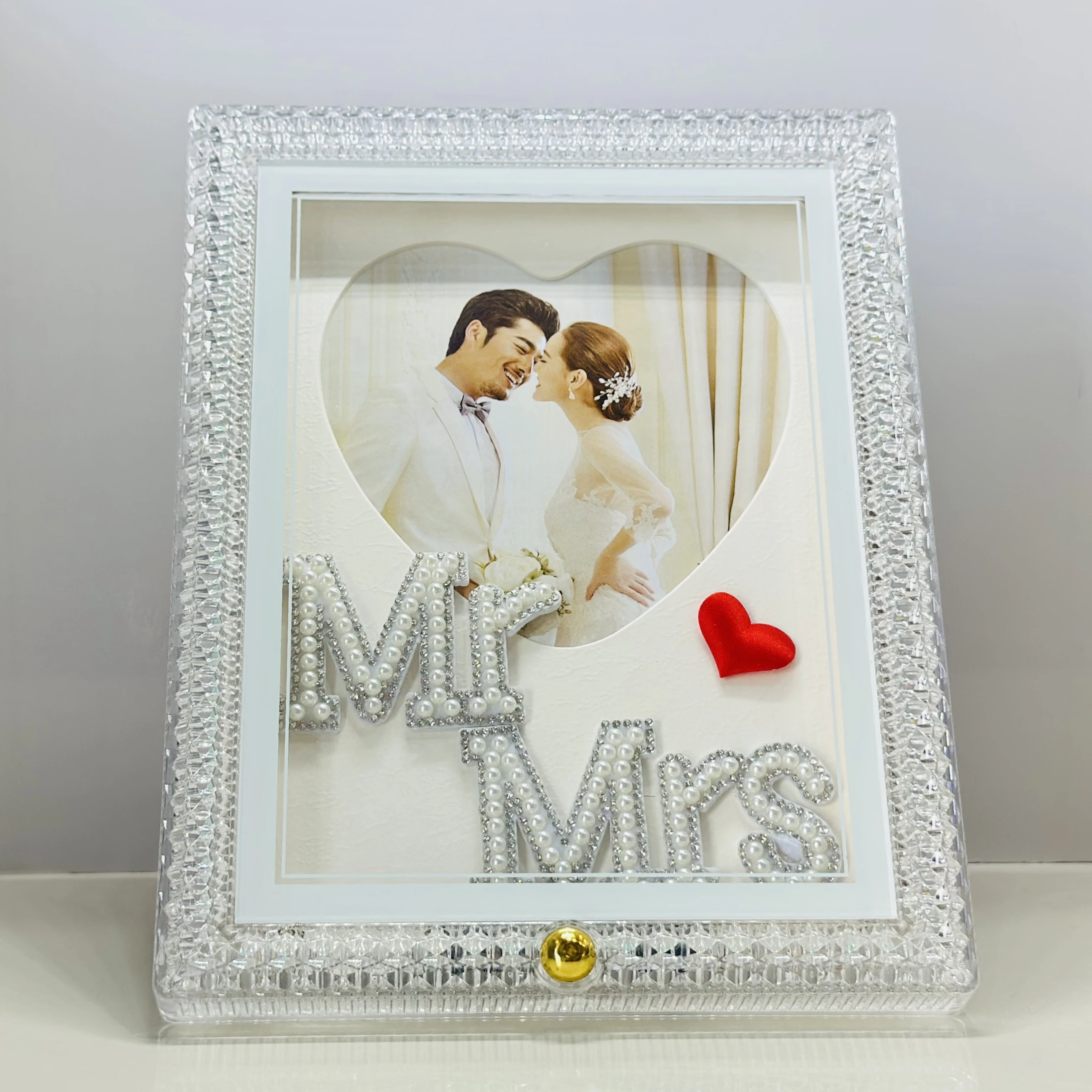 - It features a photo of a couple with the words "Mr. & Mrs." on the front.