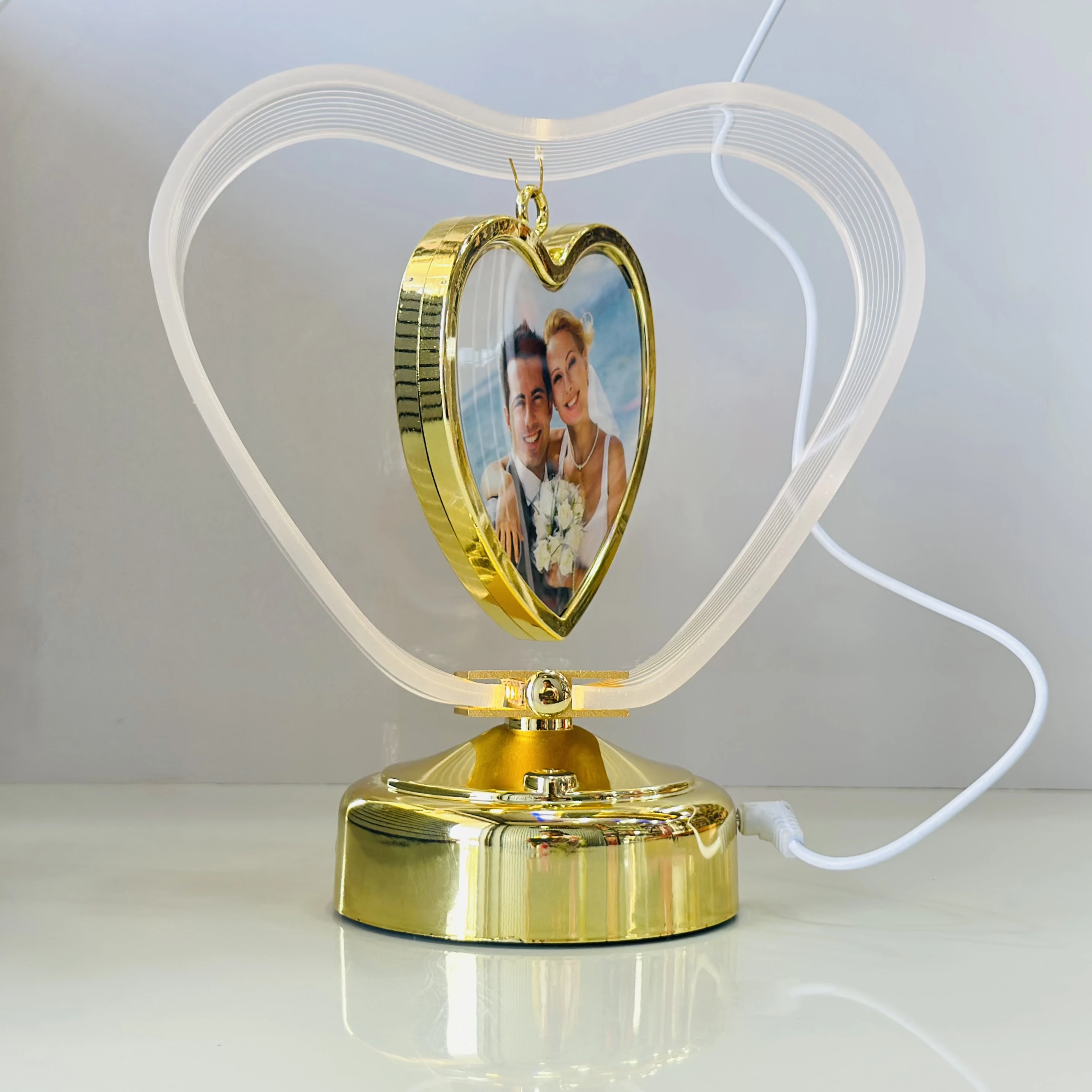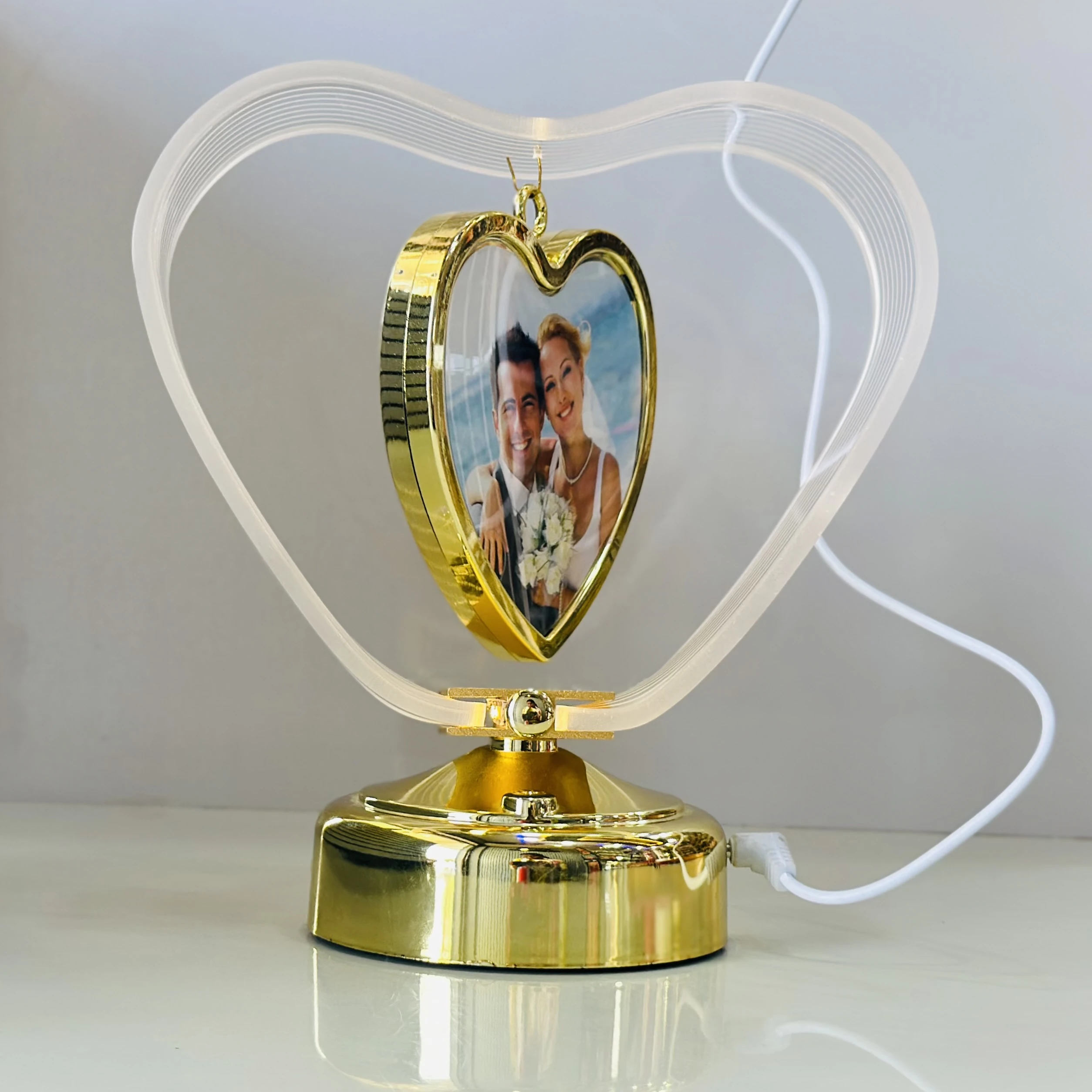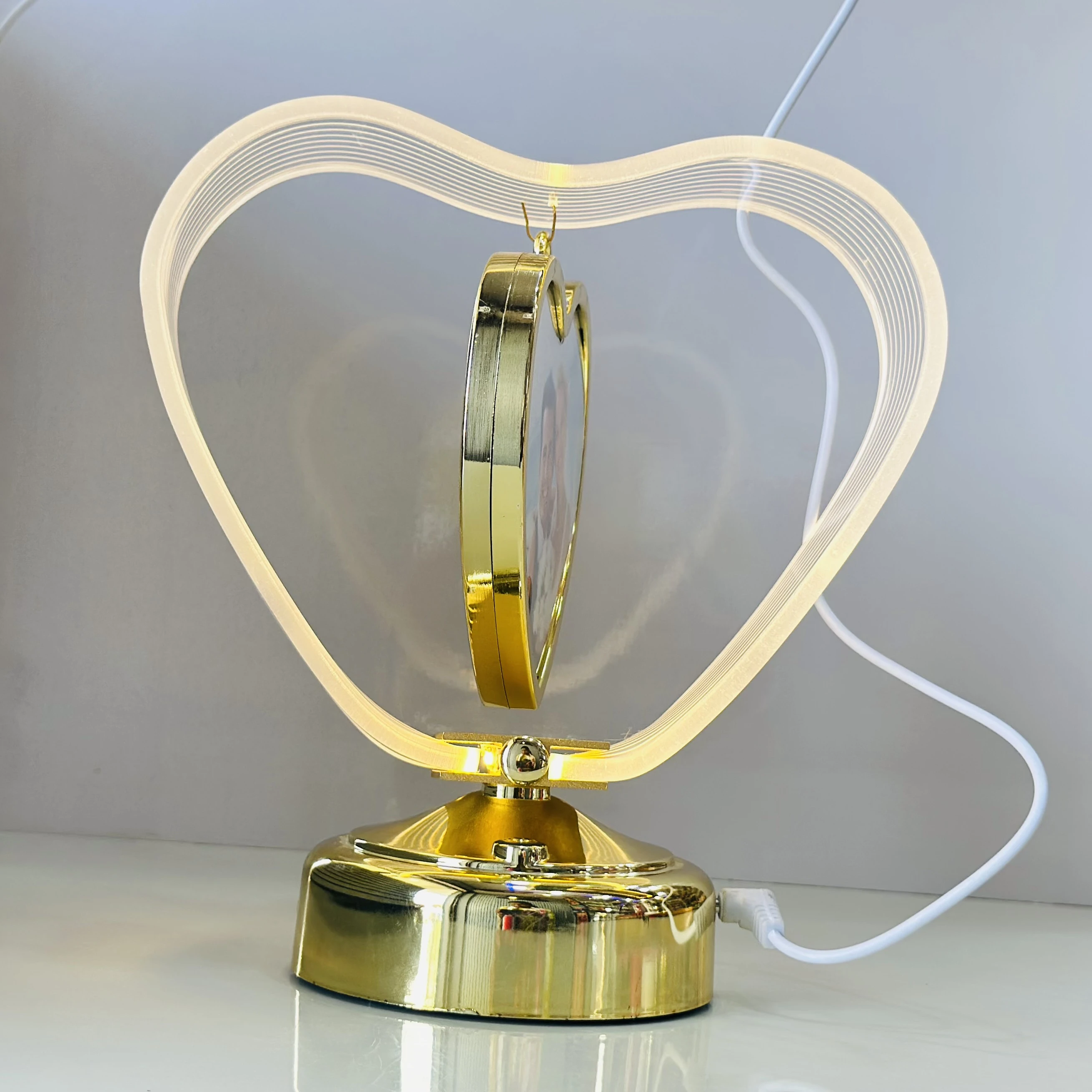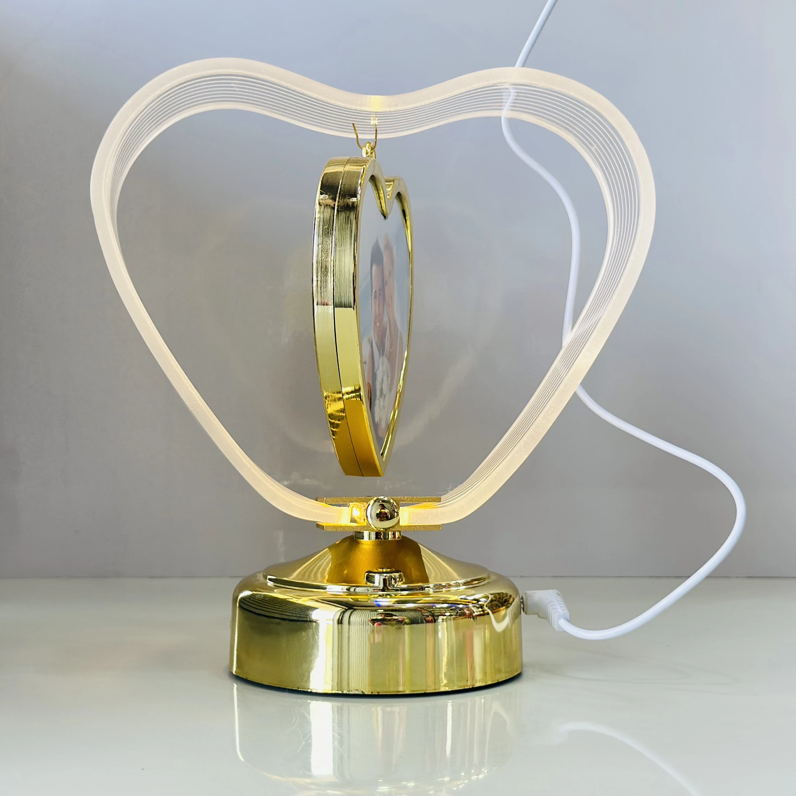 π Theme :- LED Table Lamp with Photo Frame, Touch Control, 3 Brightness Levels, Gold (Heart)