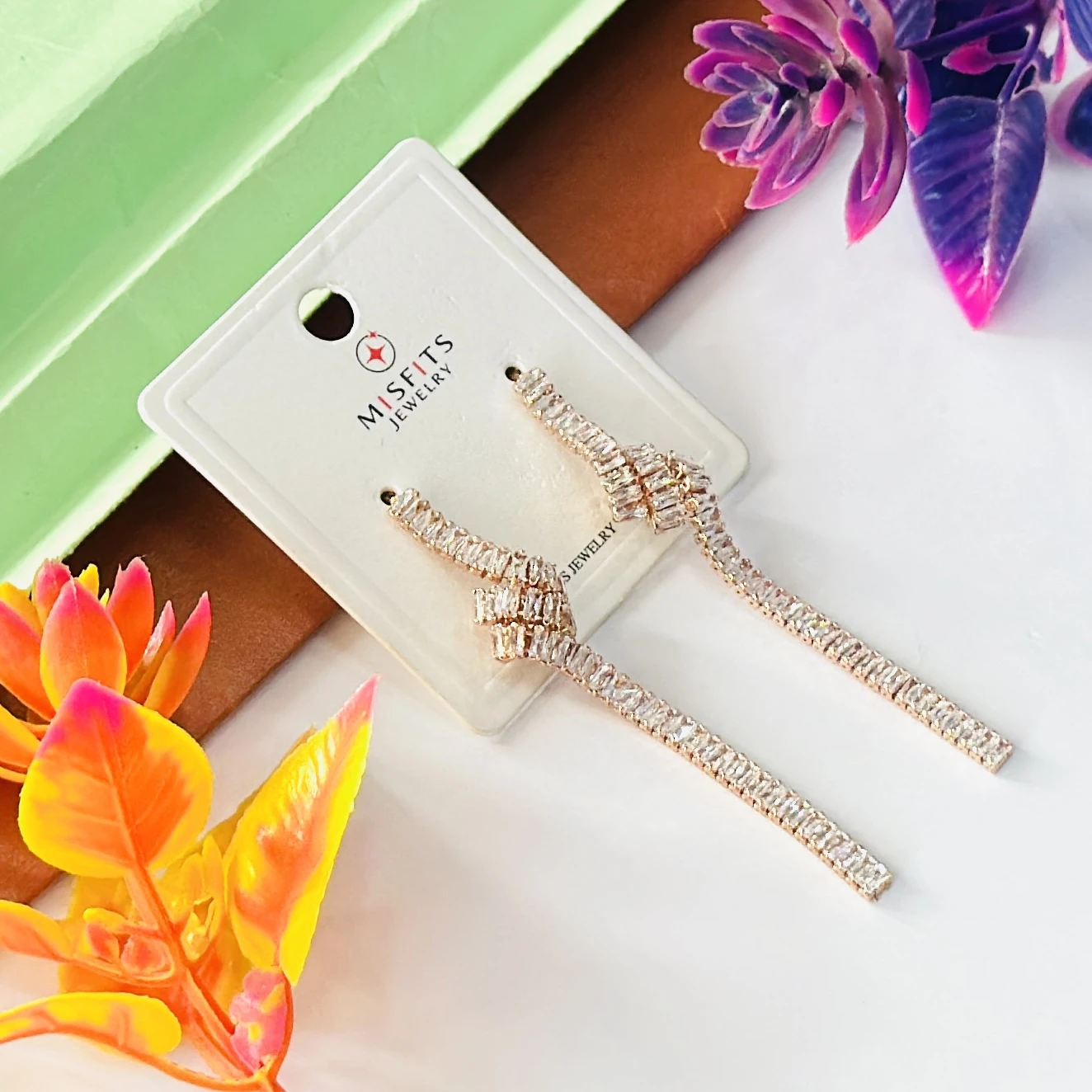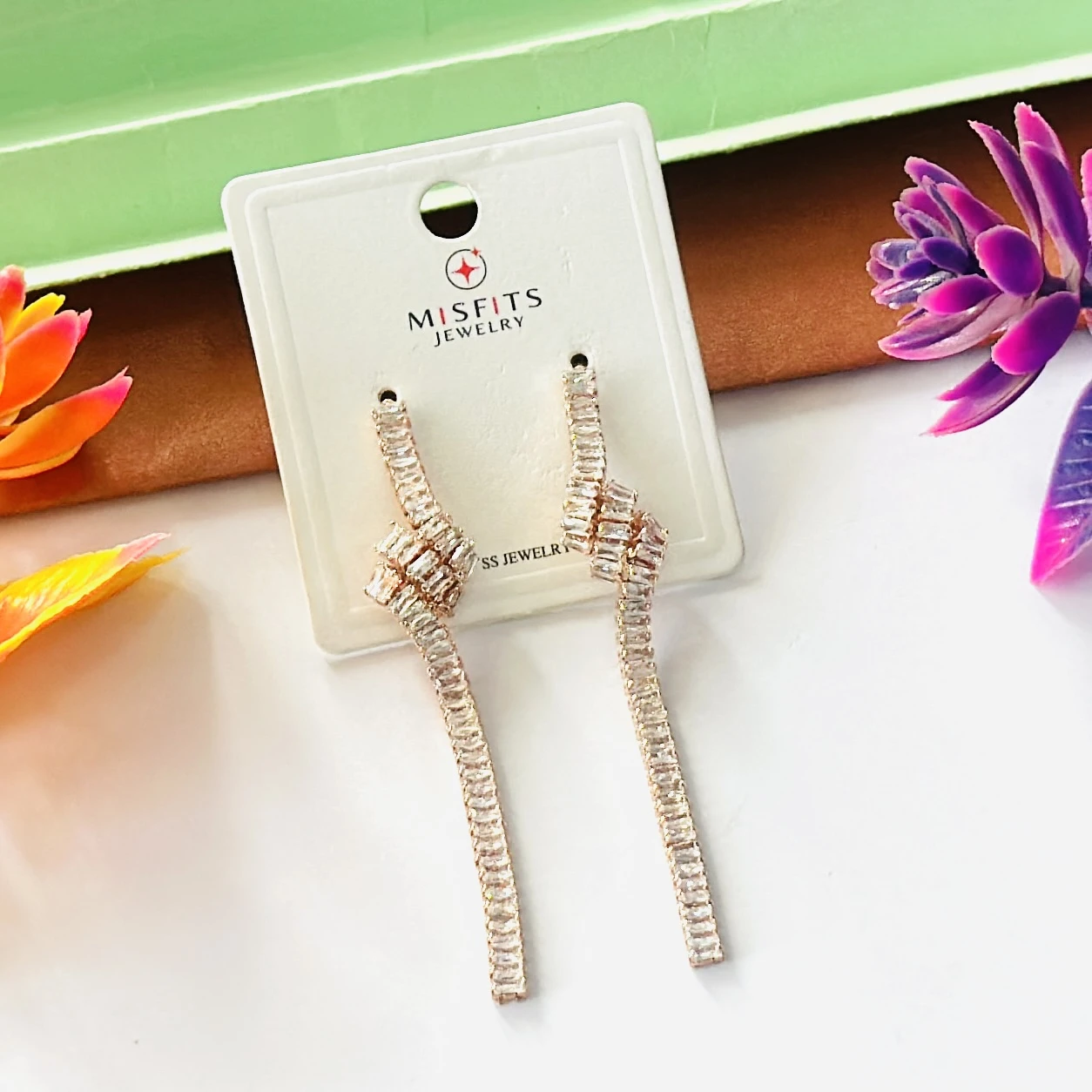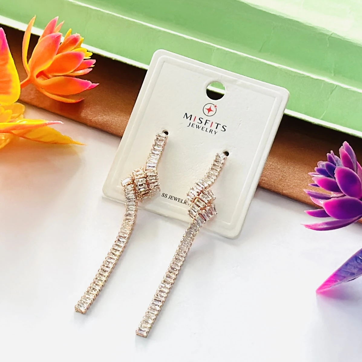 👉Theme :- Lovisa gold-plated cubic zirconia baguette knotted drop earrings.