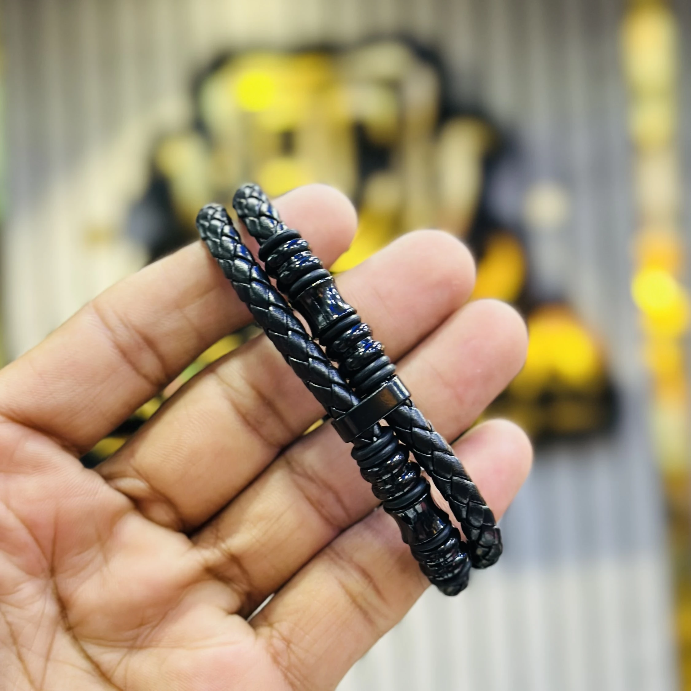 👉 Theme :- Men’s black braided leather and lava stone bead multi-layer bracelet