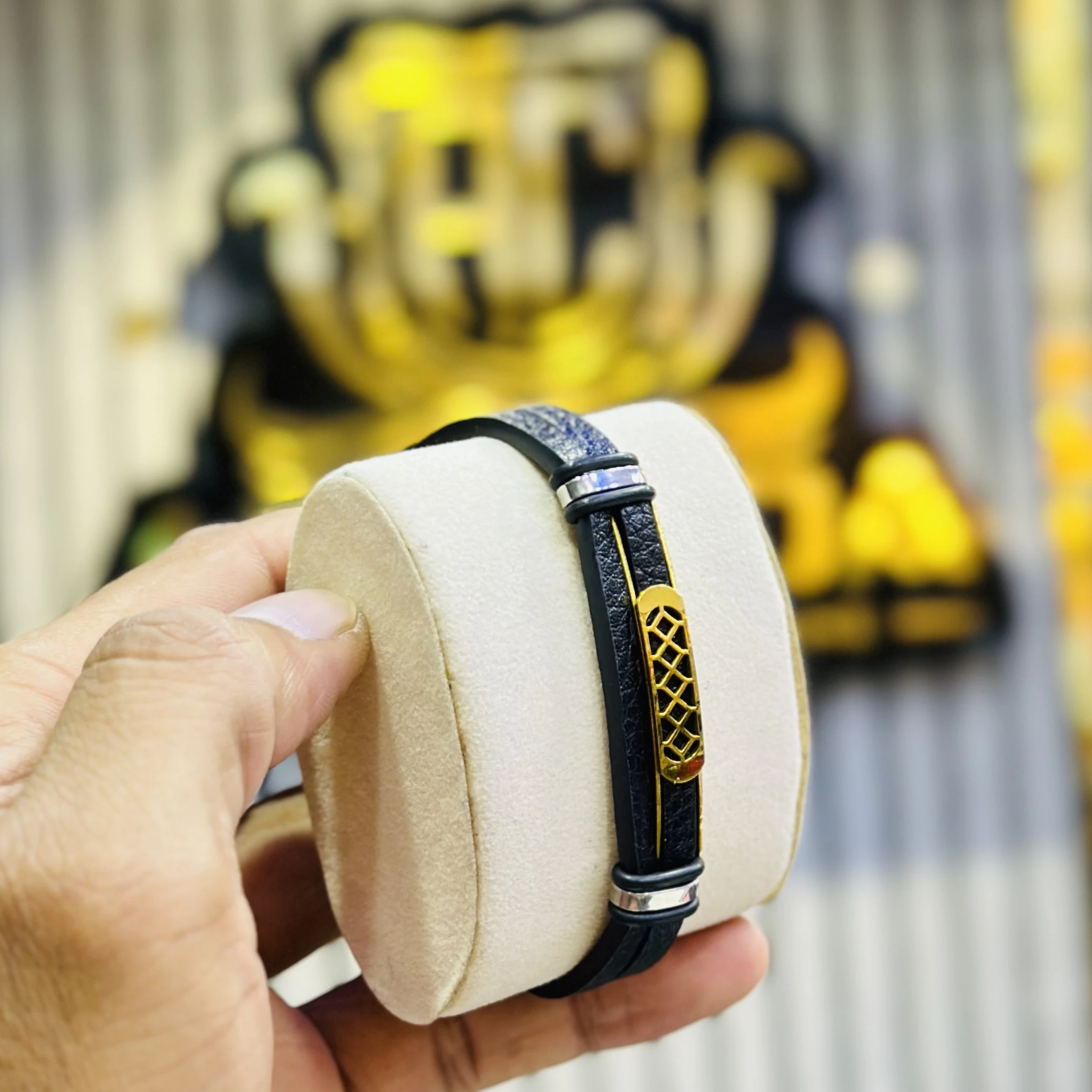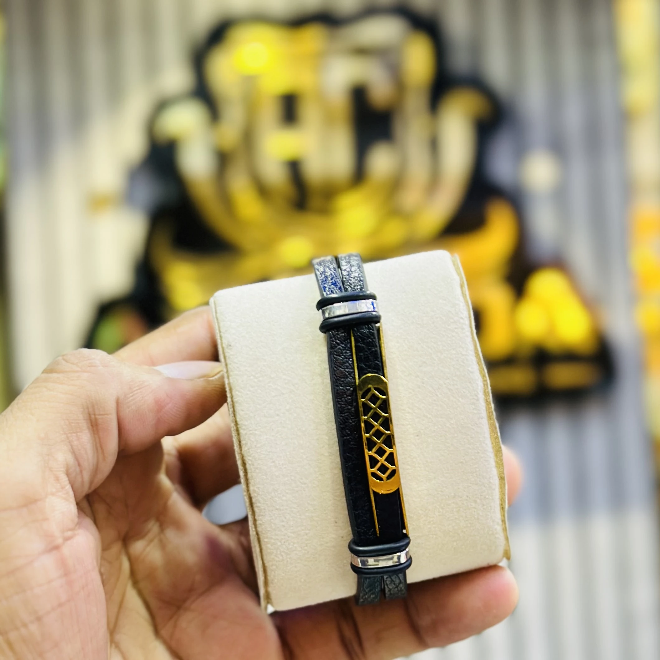 👉 Theme :- Men’s black braided leather and lava stone bead multi-layer bracelet
