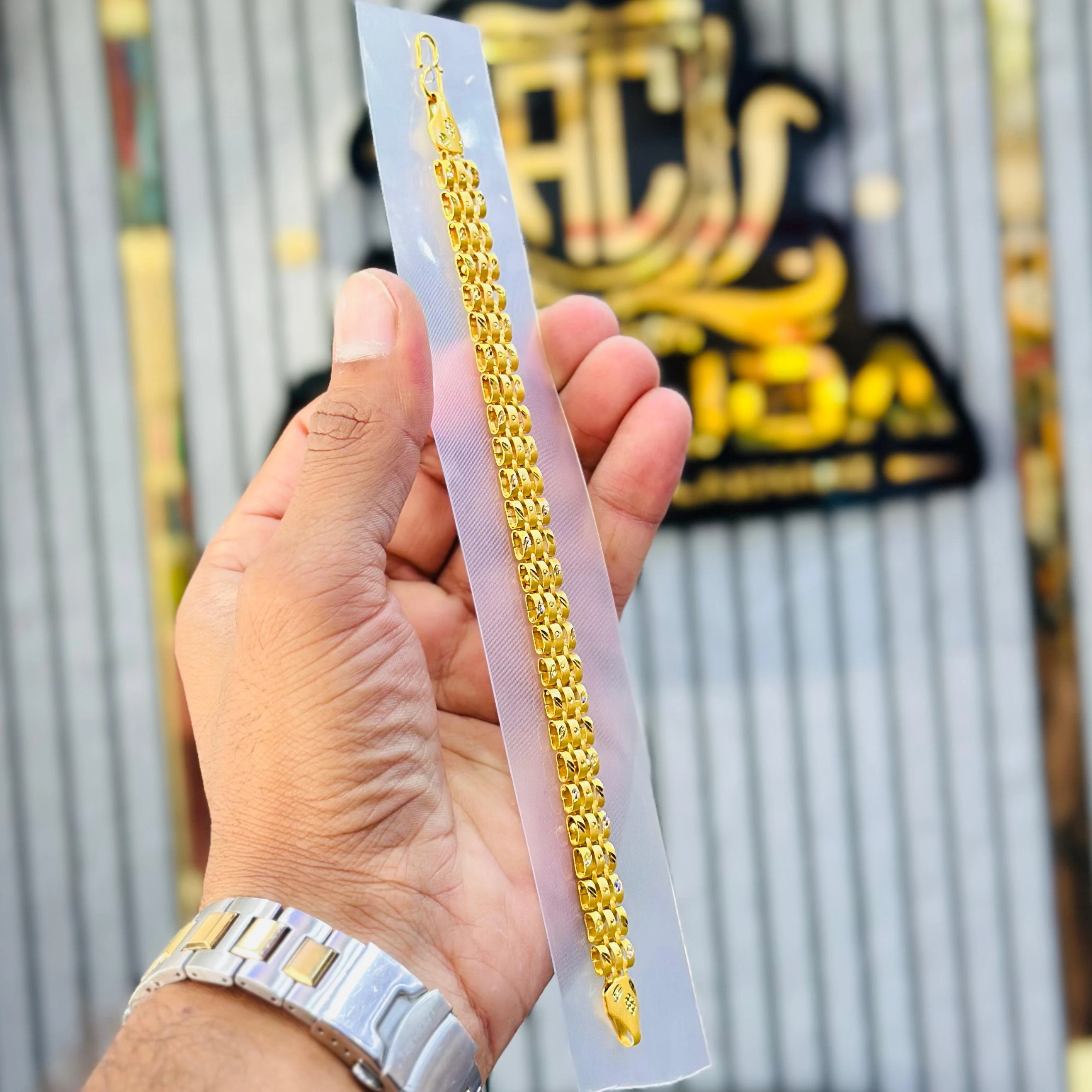 👉Theme :- Men’s gold-plated link bracelet