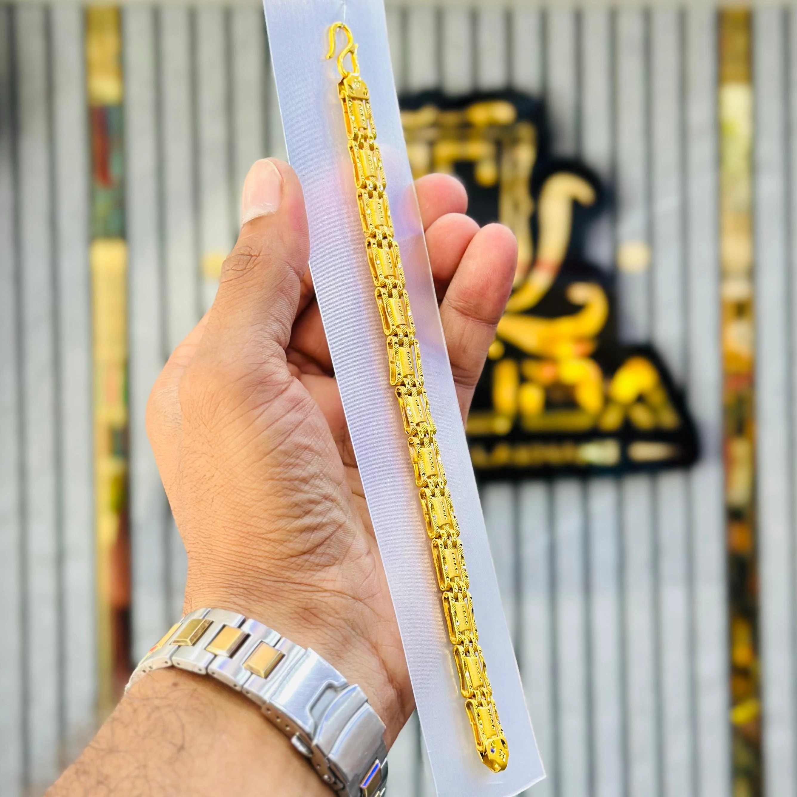 👉Theme :- Men’s gold-plated link bracelet