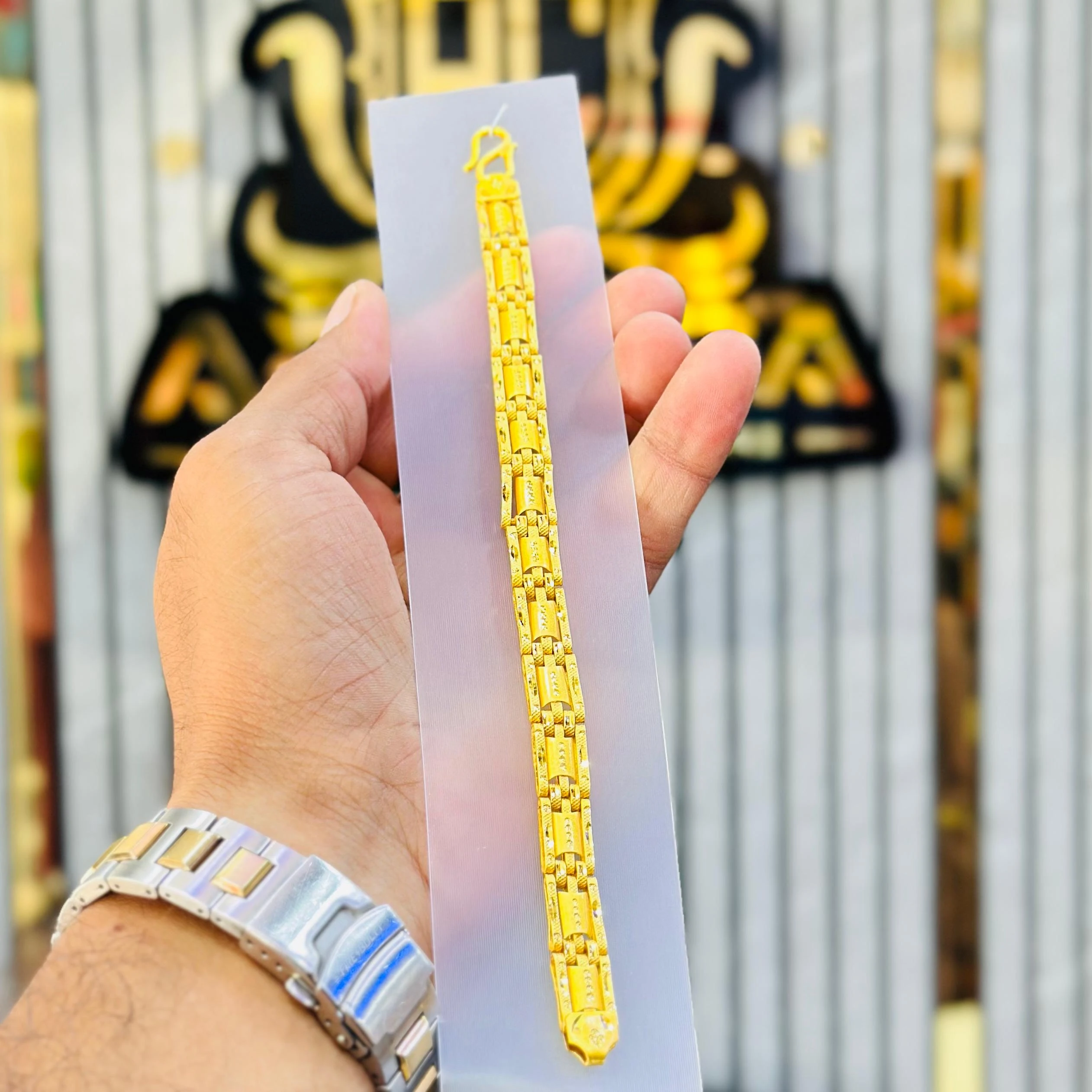👉 Use:-  Wadding anniversary, Valentines gift, Birthday gift, Gift, men's gold-toned bracelet, primarily used as a fashion accessory