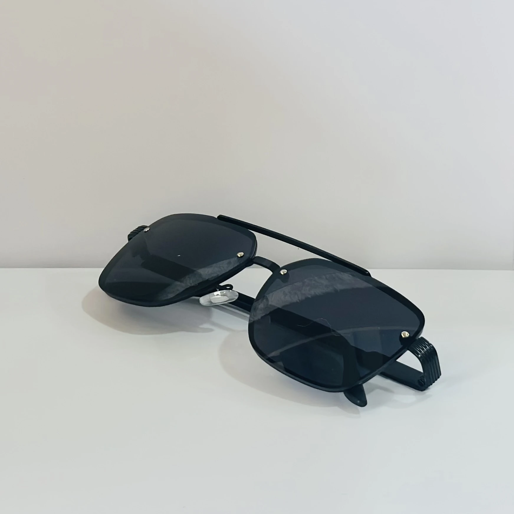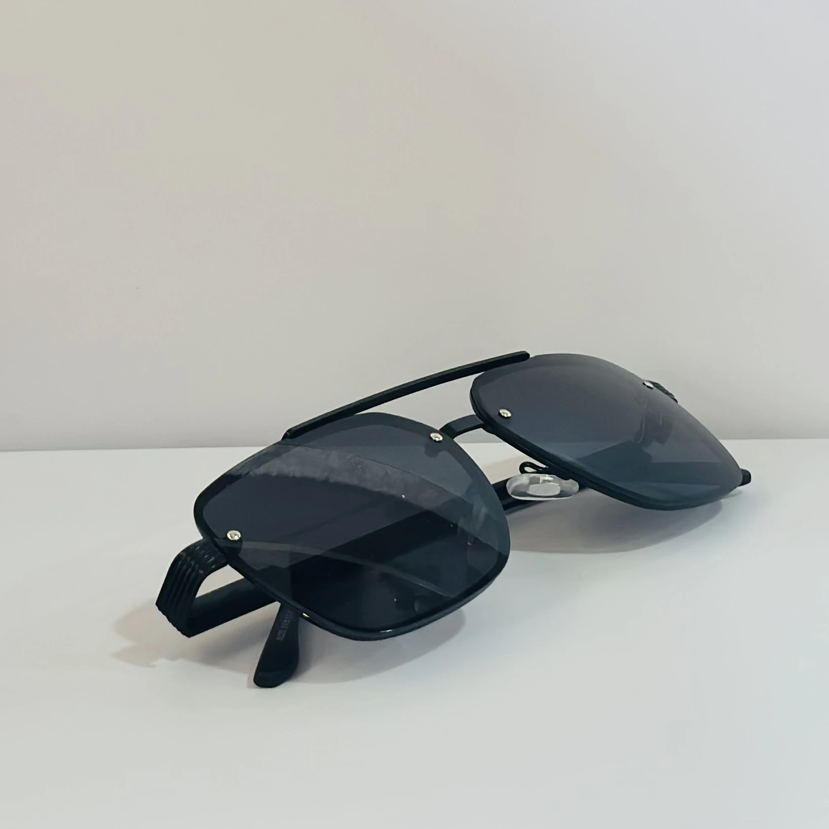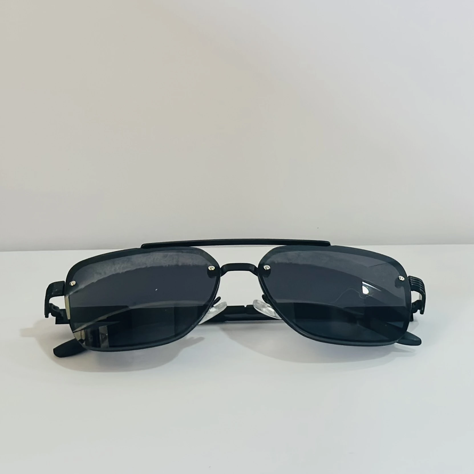 👉 Theme :- Mens Luxury Rimless Rectangle Mafia Metal Rim Racer Mob Sunglasses in black