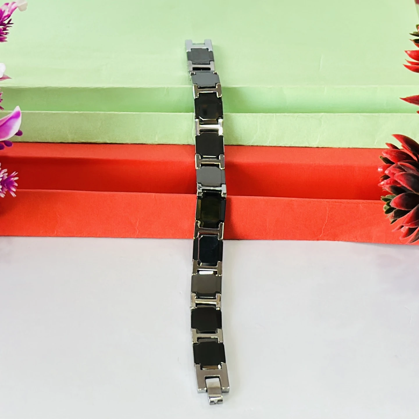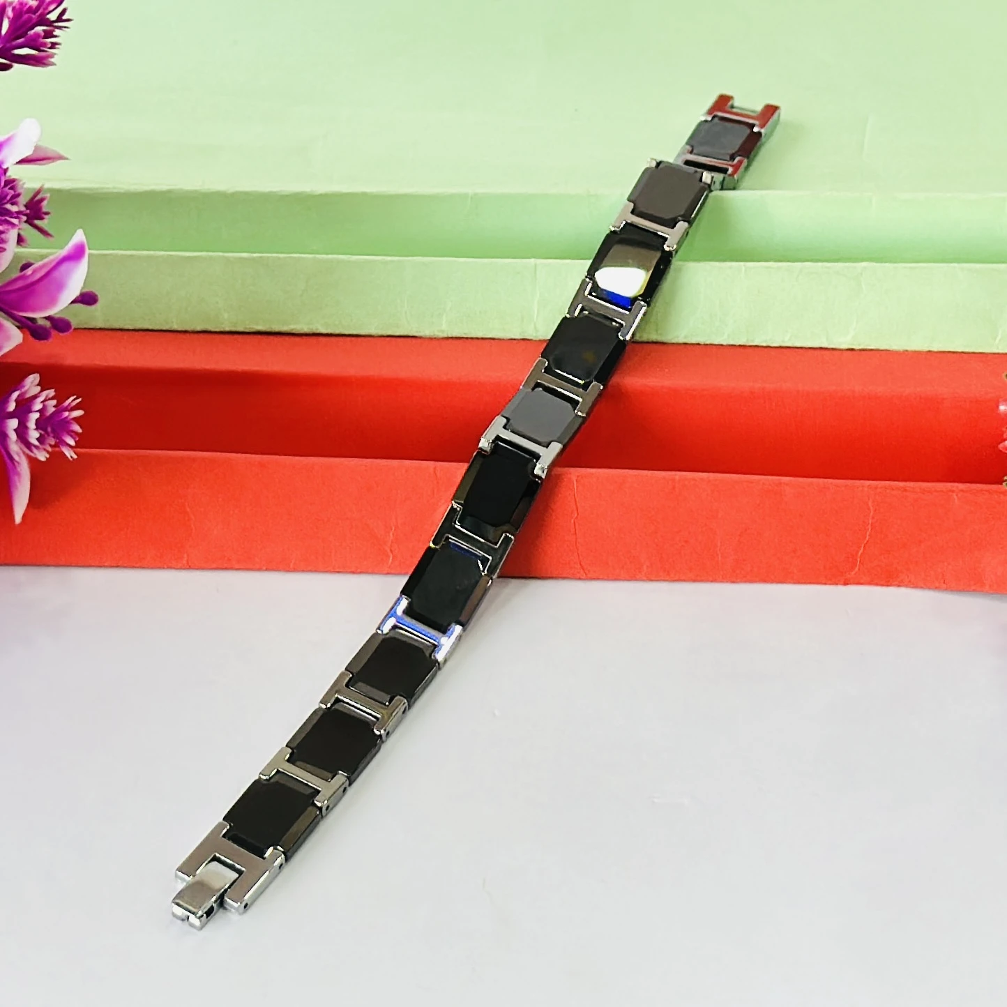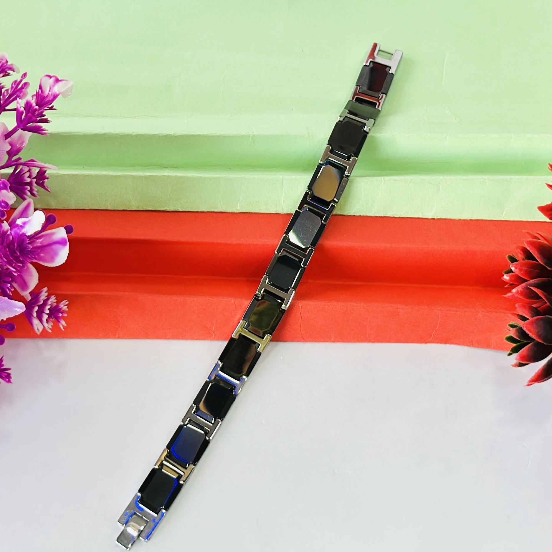 👉Theme :- men's stainless steel and black ceramic (or rubber) link bracelet.