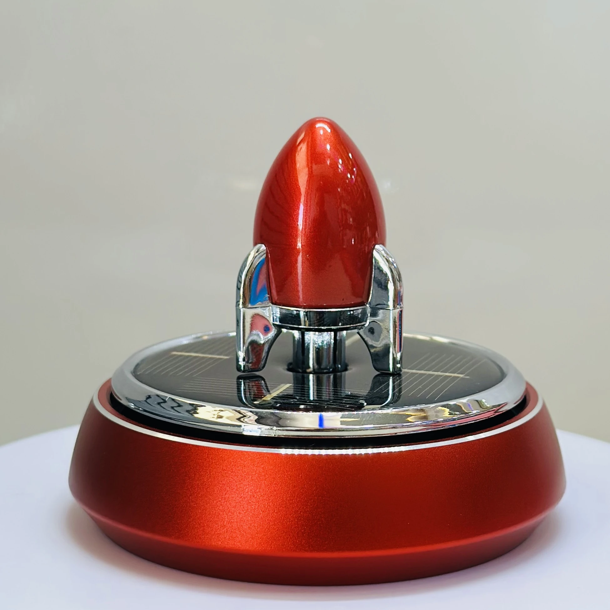 👉 Theme :- Metal Rocket Car Air Freshener Solar Rotating Dashboard