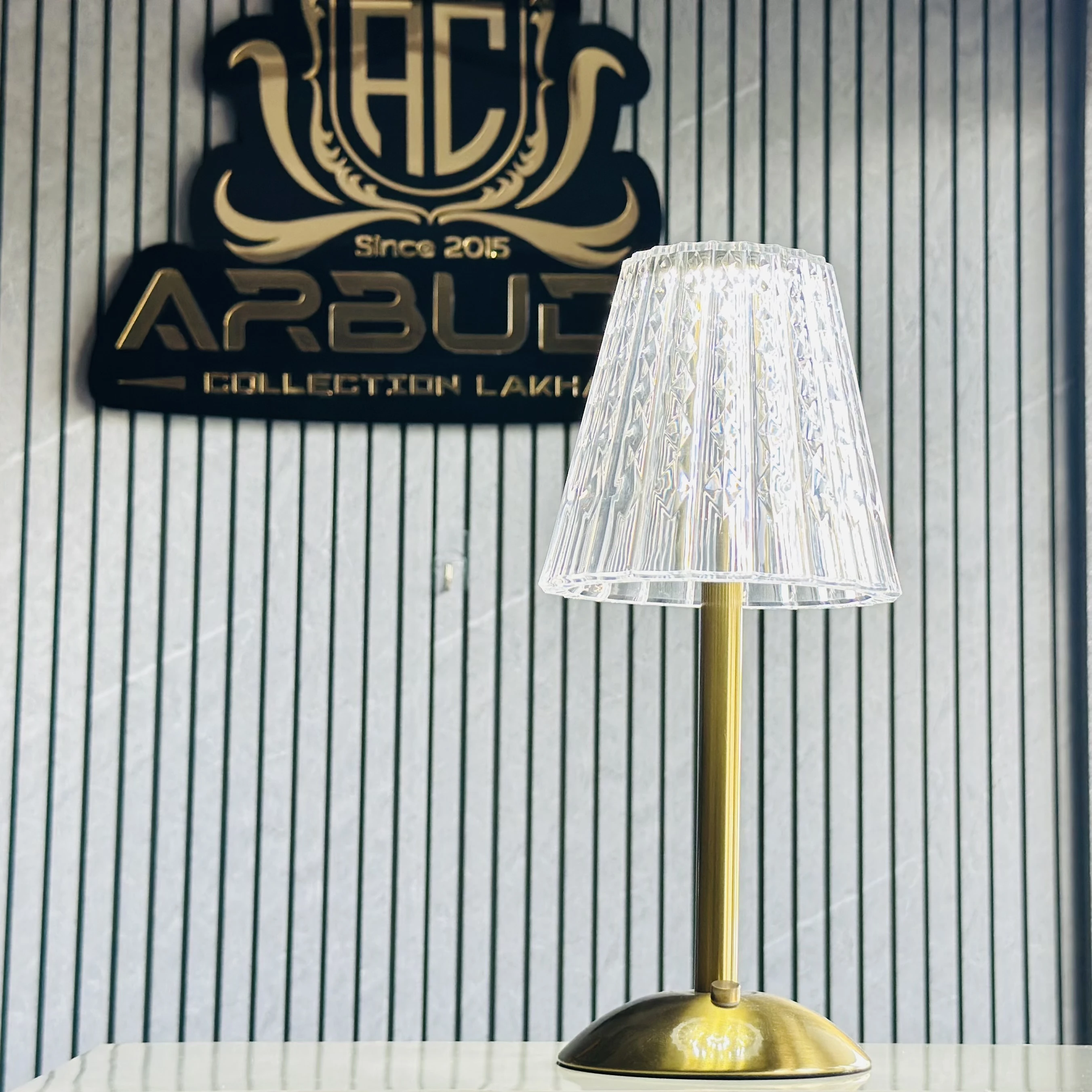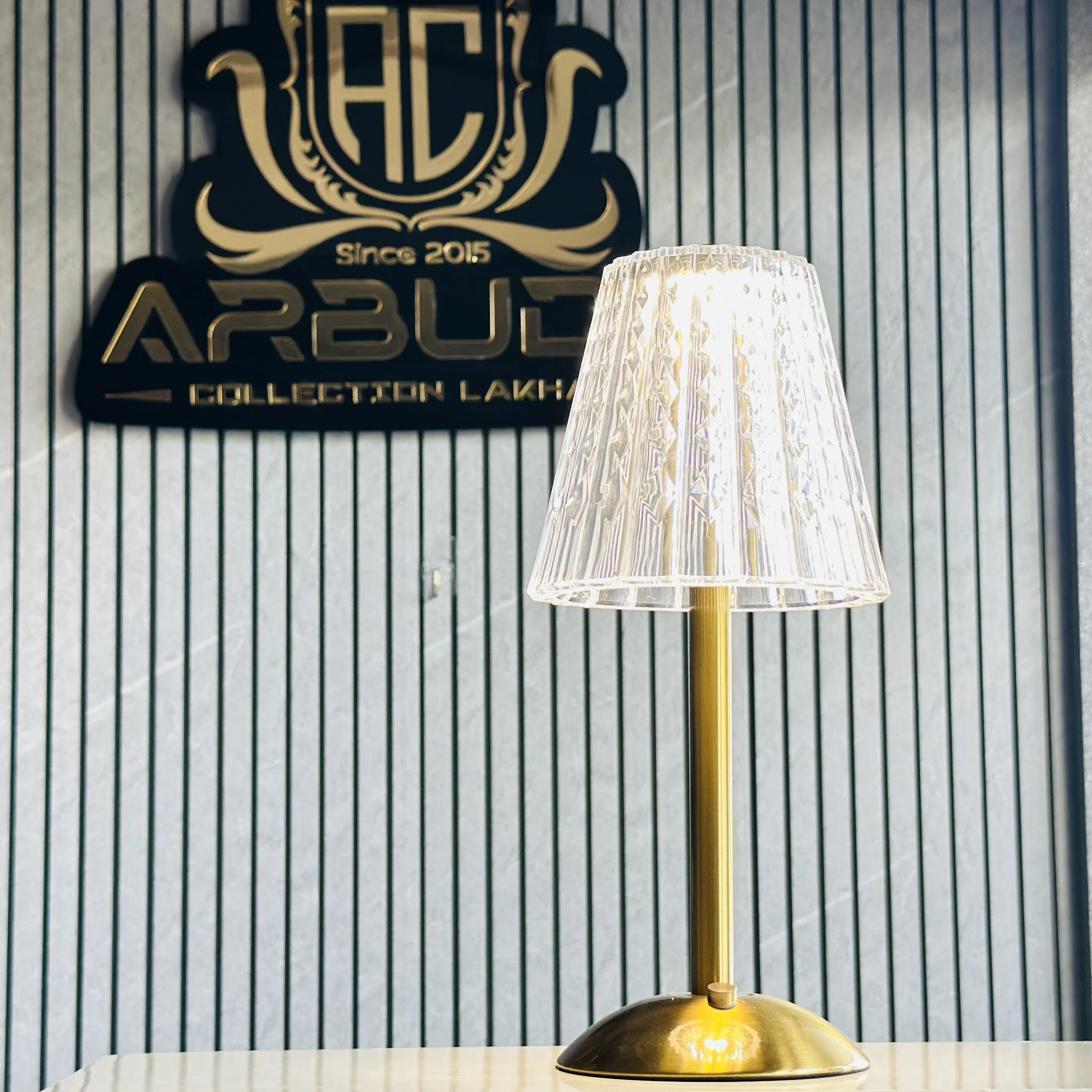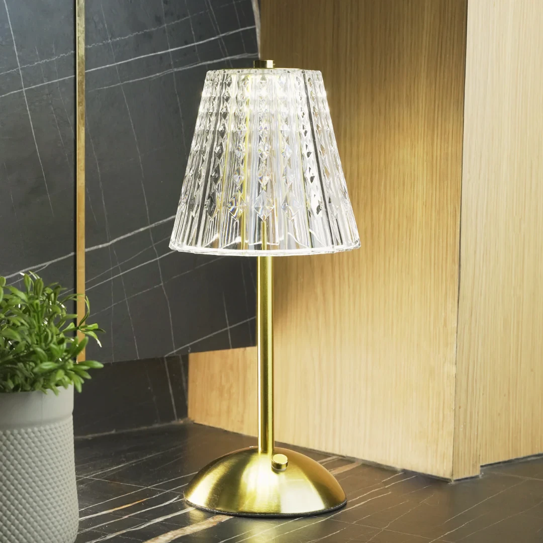 π Theme :- Β cordless, rechargeable table lamp with a fluted acrylic shade and a metallic base.Β