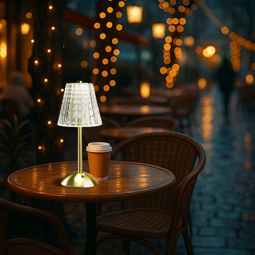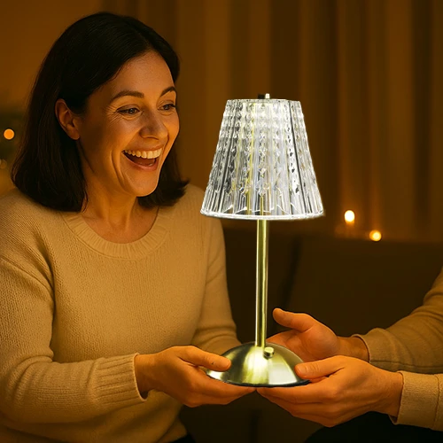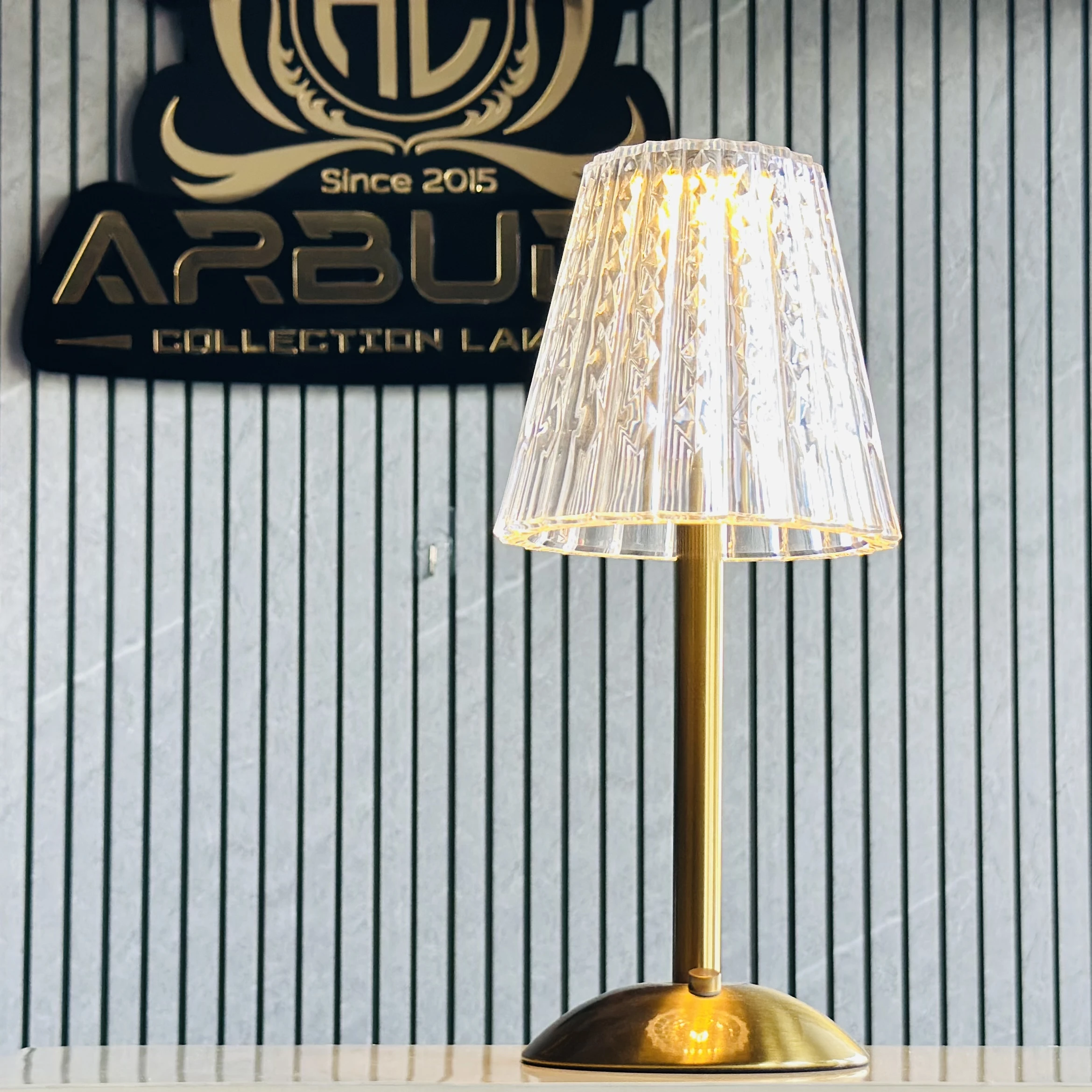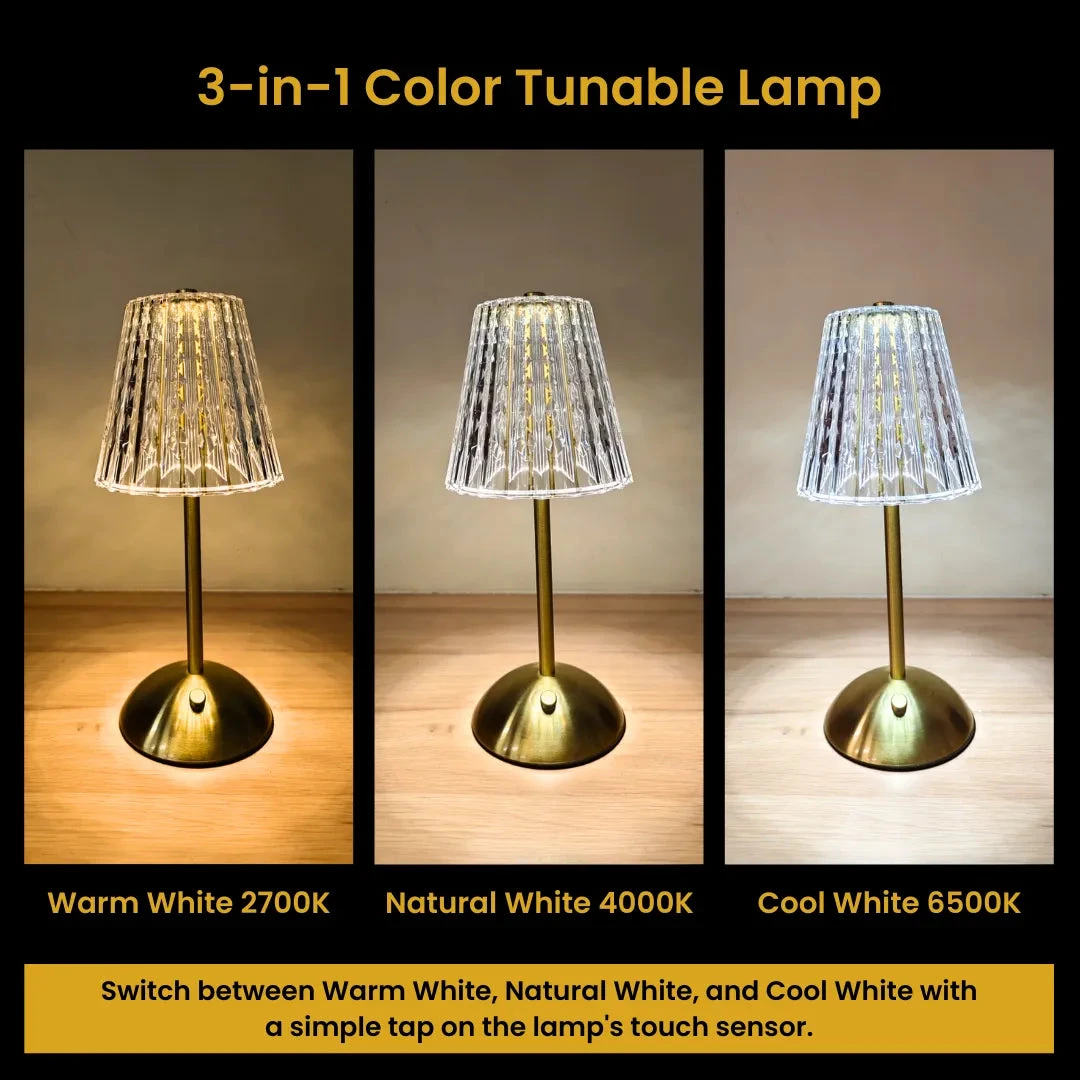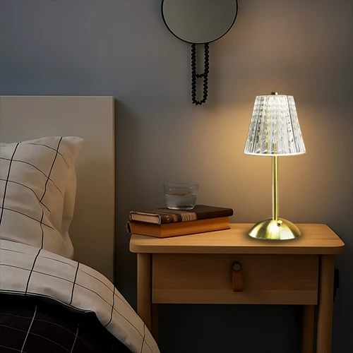 π Theme :- Β cordless, rechargeable table lamp with a fluted acrylic shade and a metallic base.Β