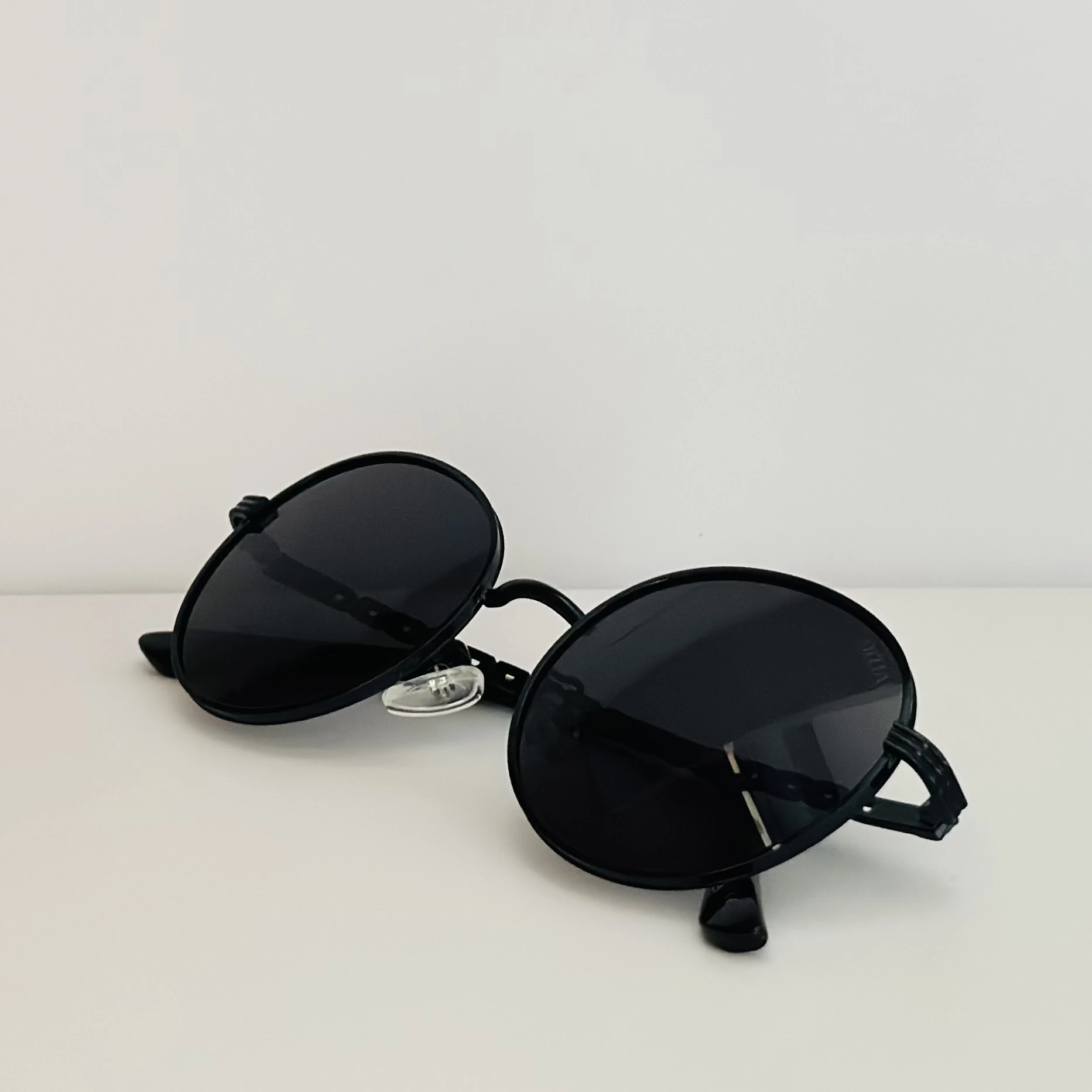 👉 Theme :- Moncler Tatou ML 0224 sunglasses in black metal with round lenses.