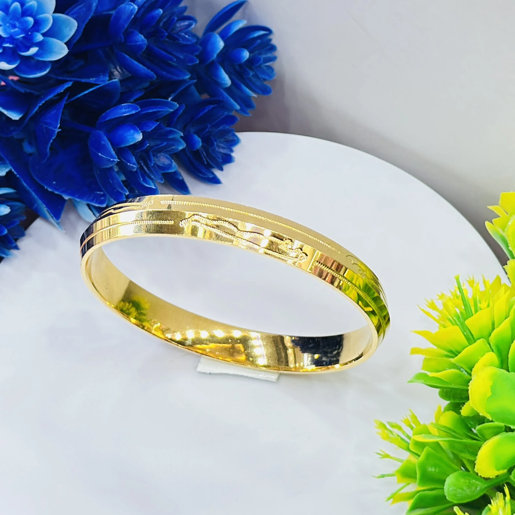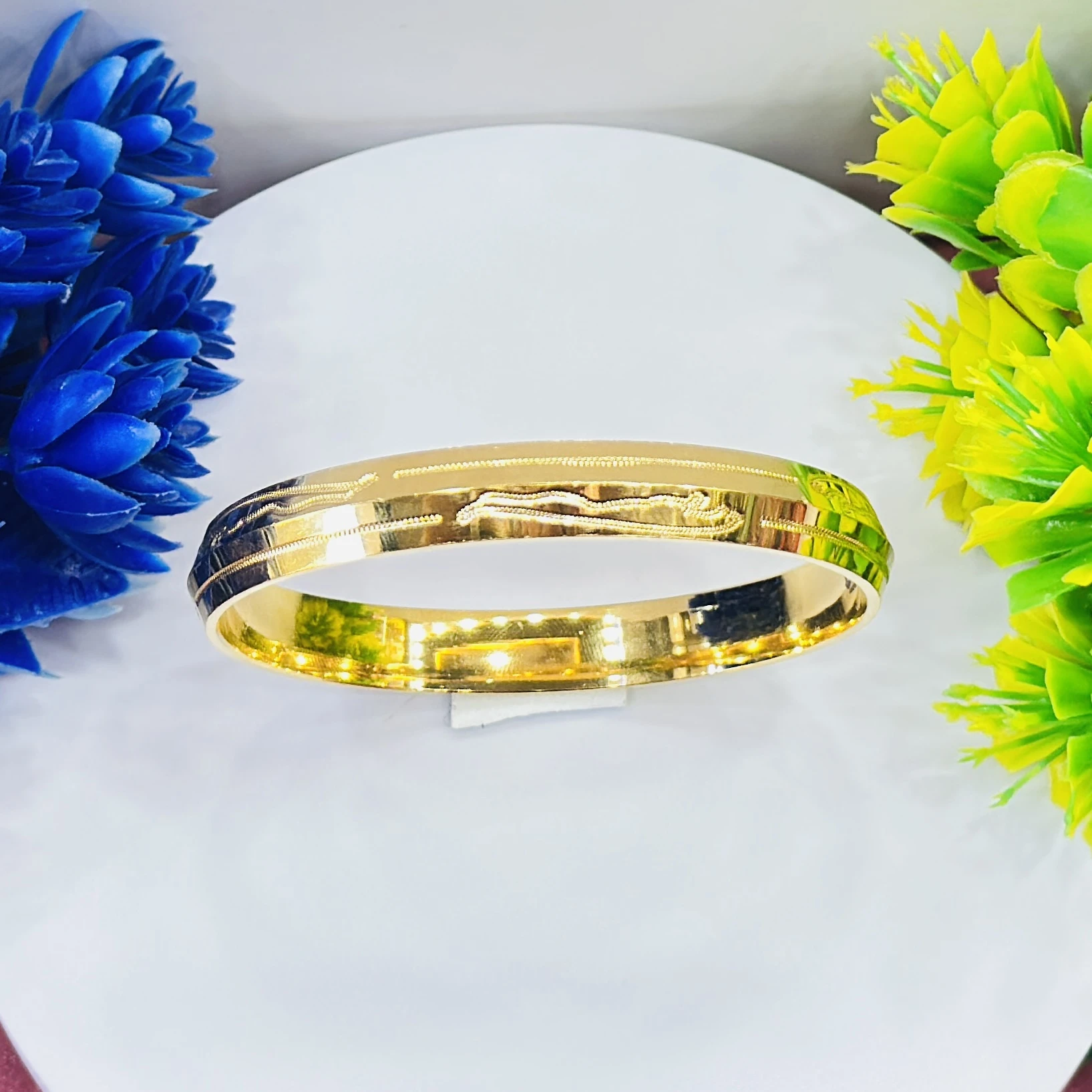👉 Theme :- Gold plated stainless steel men's Punjabi Kada bracelet.