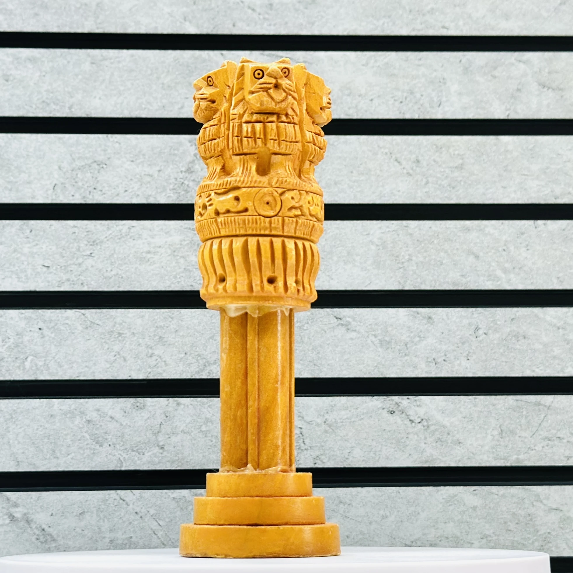👉 Theme :-wooden replica of the Lion Capital of Ashoka, an iconic symbol of Indian heritage and the official National Emblem of India.