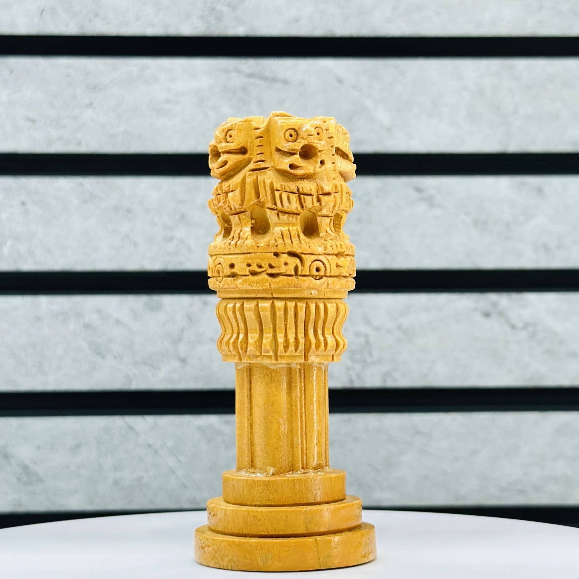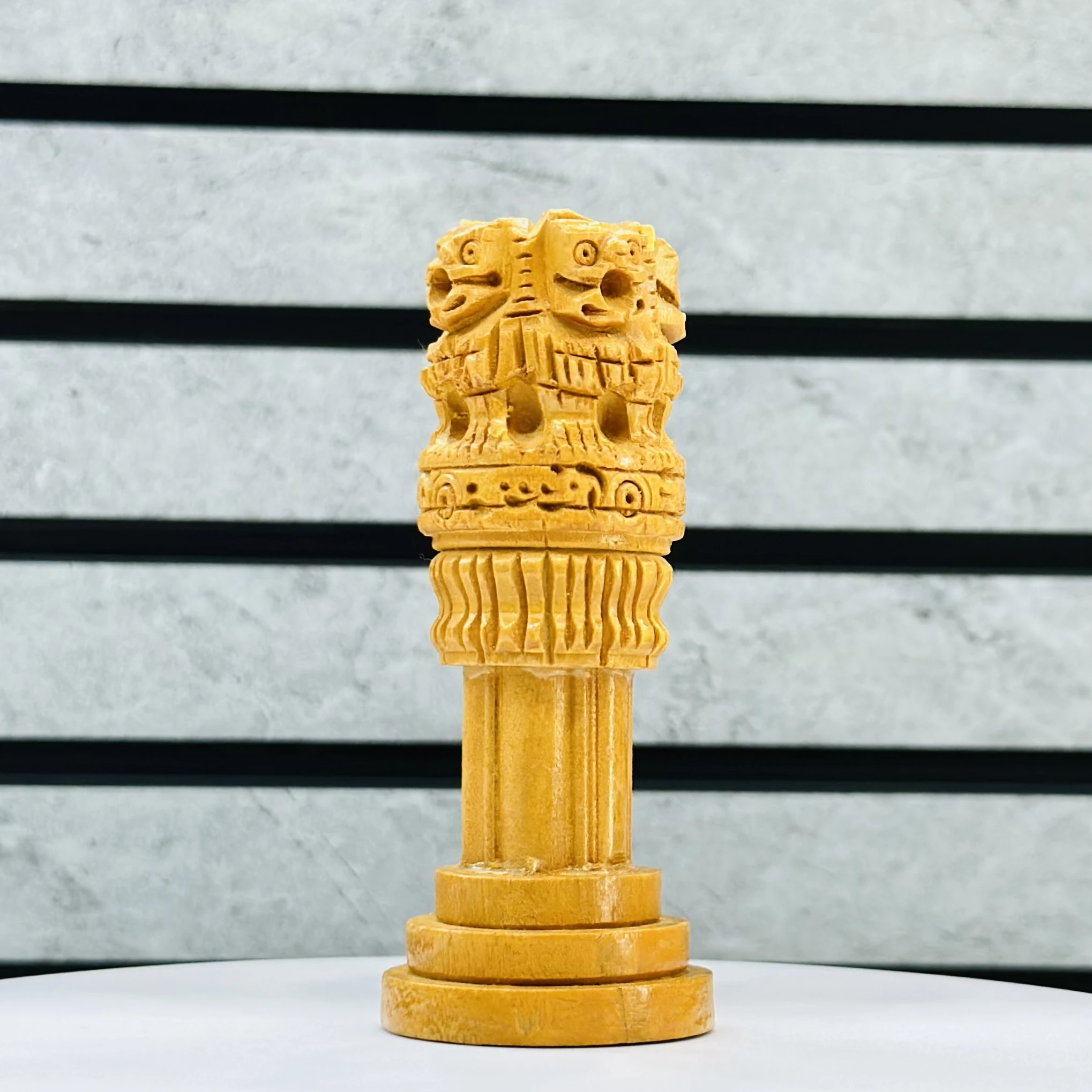 👉 Theme :-wooden replica of the Lion Capital of Ashoka, an iconic symbol of Indian heritage and the official National Emblem of India.