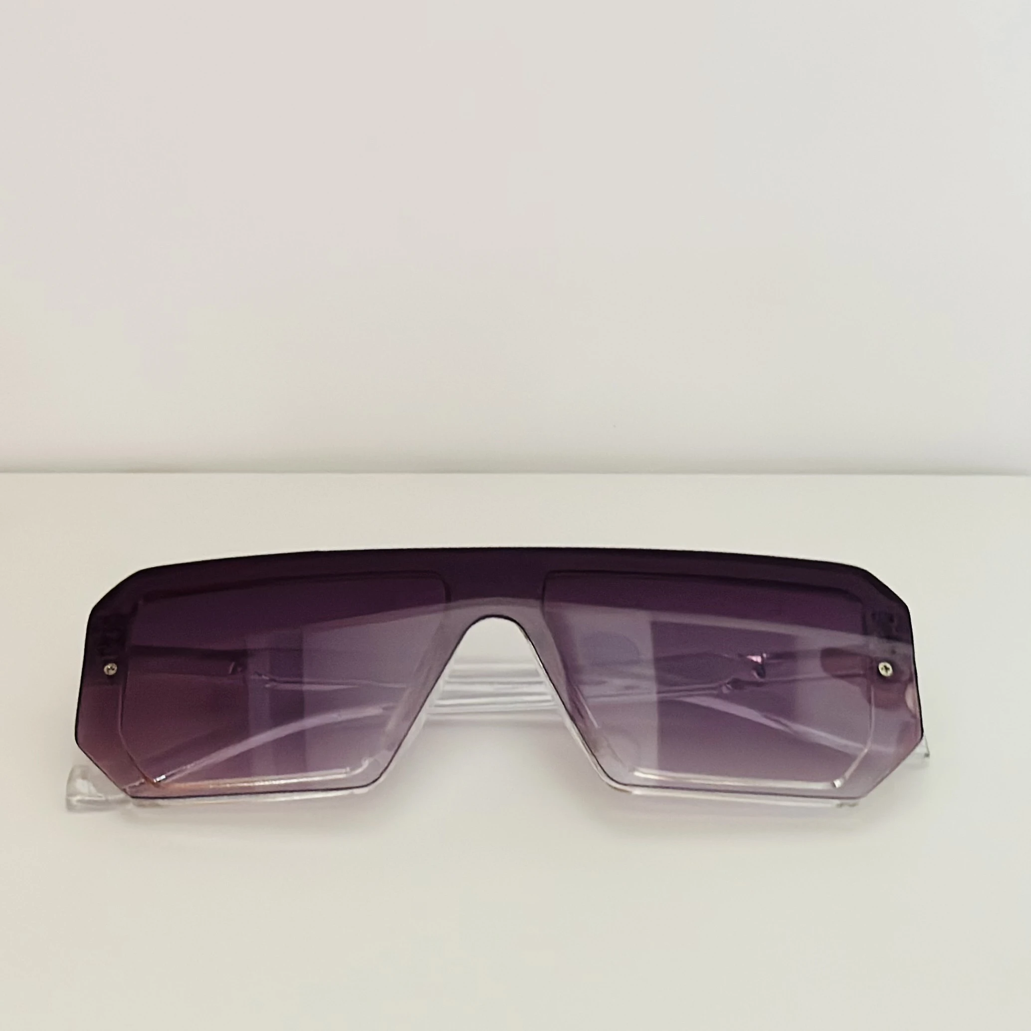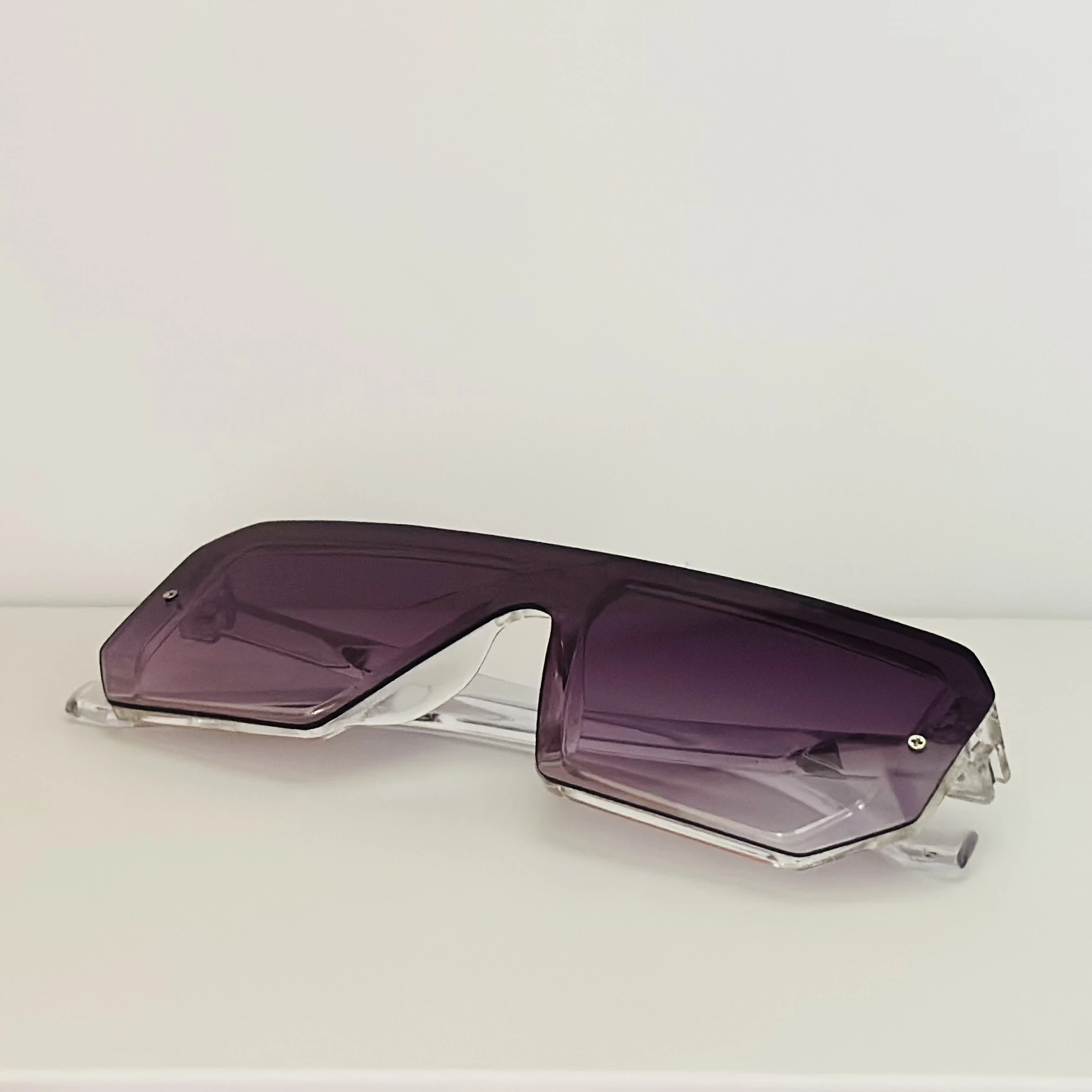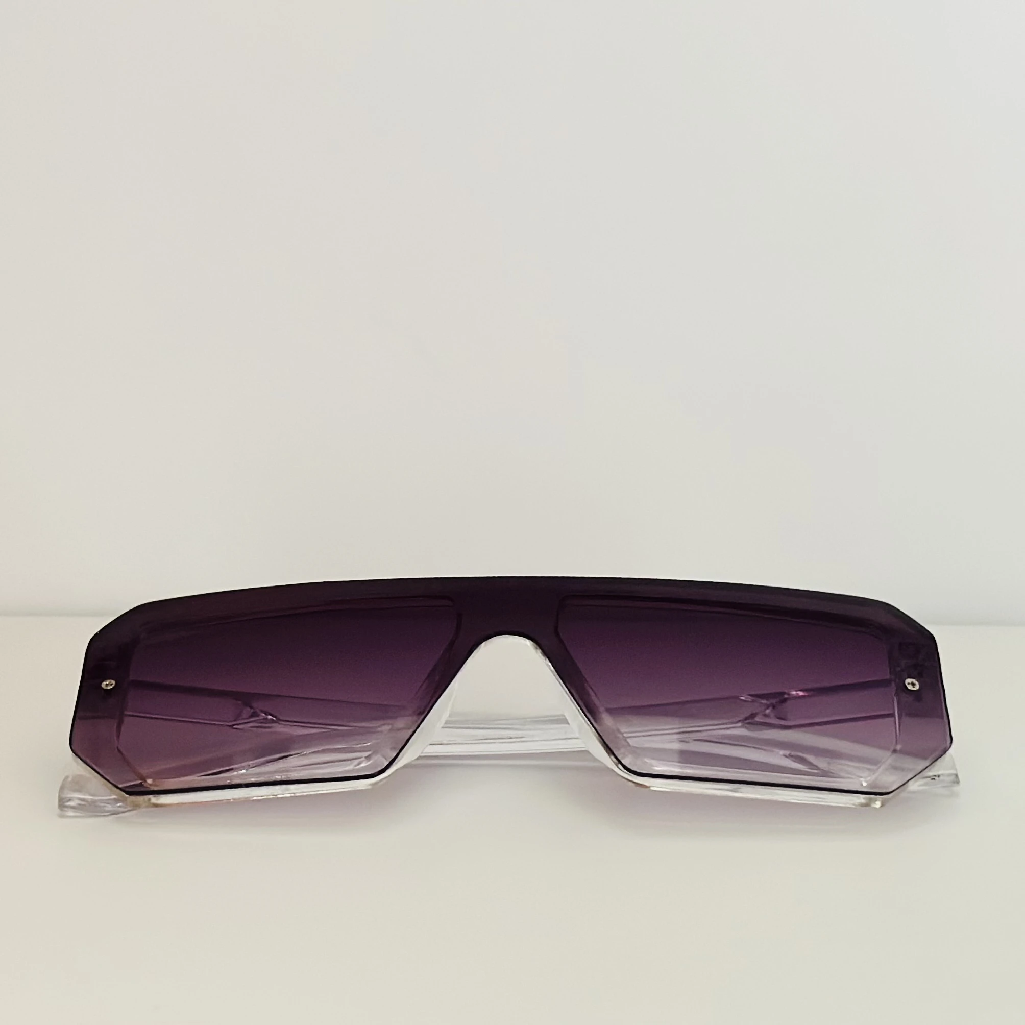 π Theme :- oversized shield sunglasses with a rimless, flat-top design and purple gradient lenses.Β