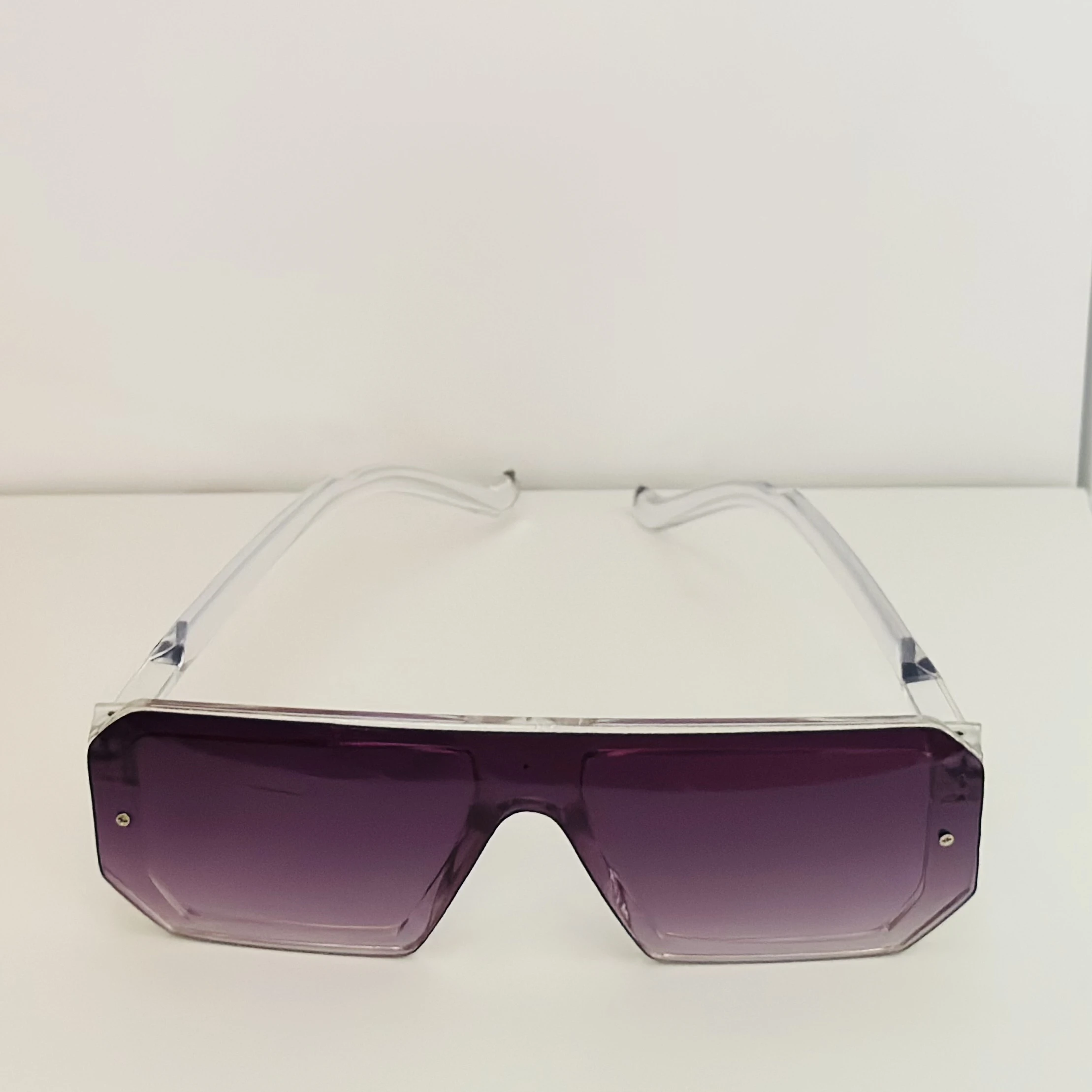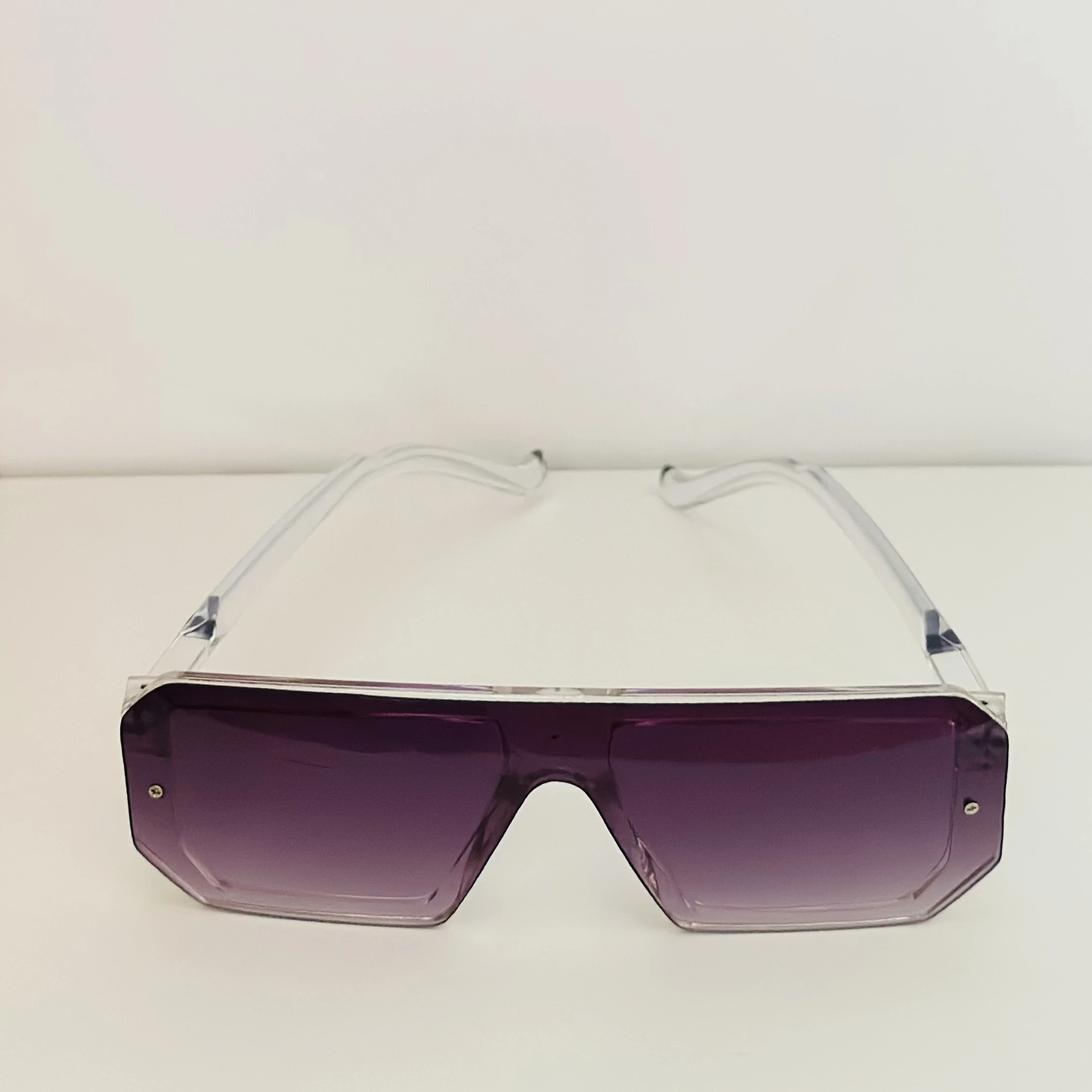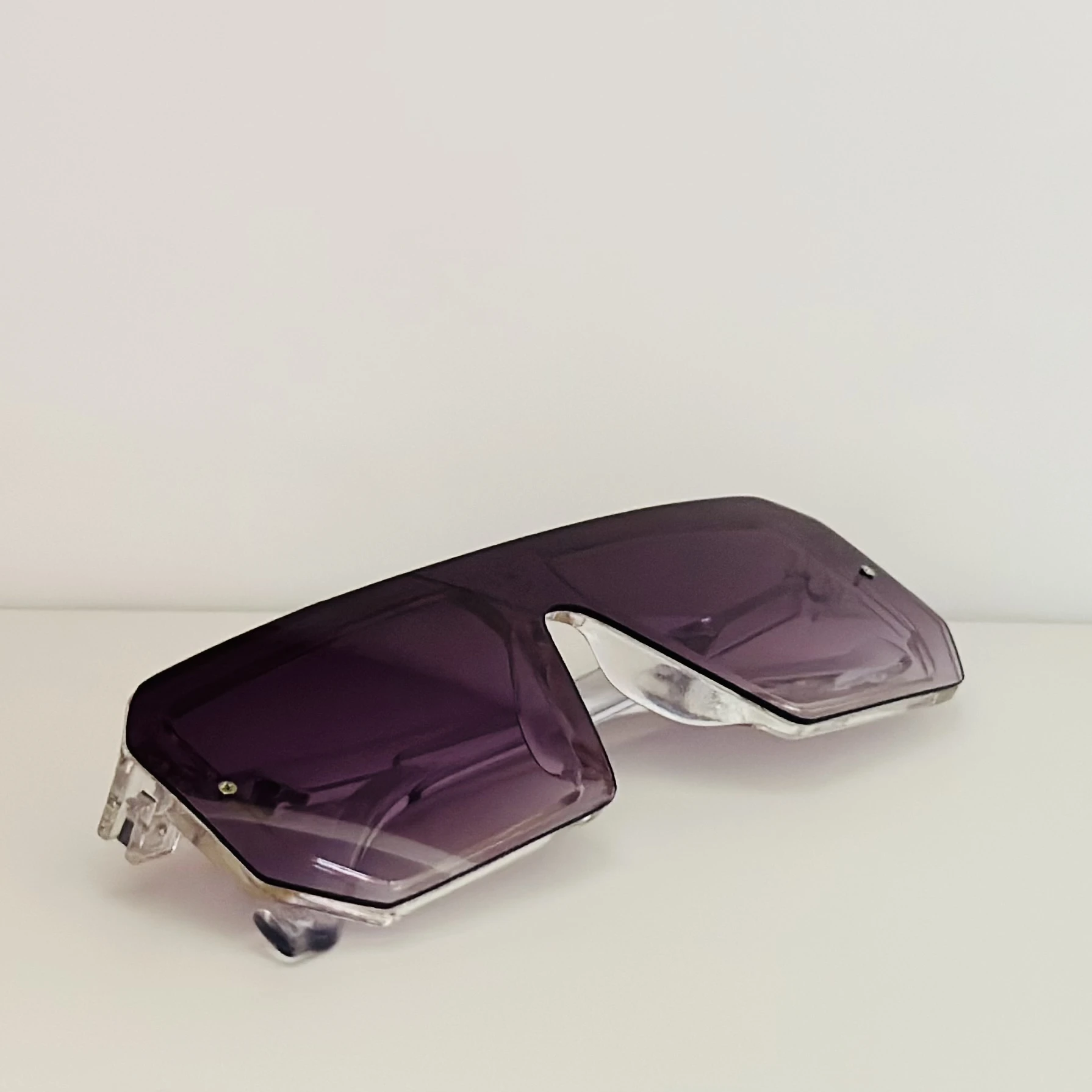 π Theme :- oversized shield sunglasses with a rimless, flat-top design and purple gradient lenses.Β