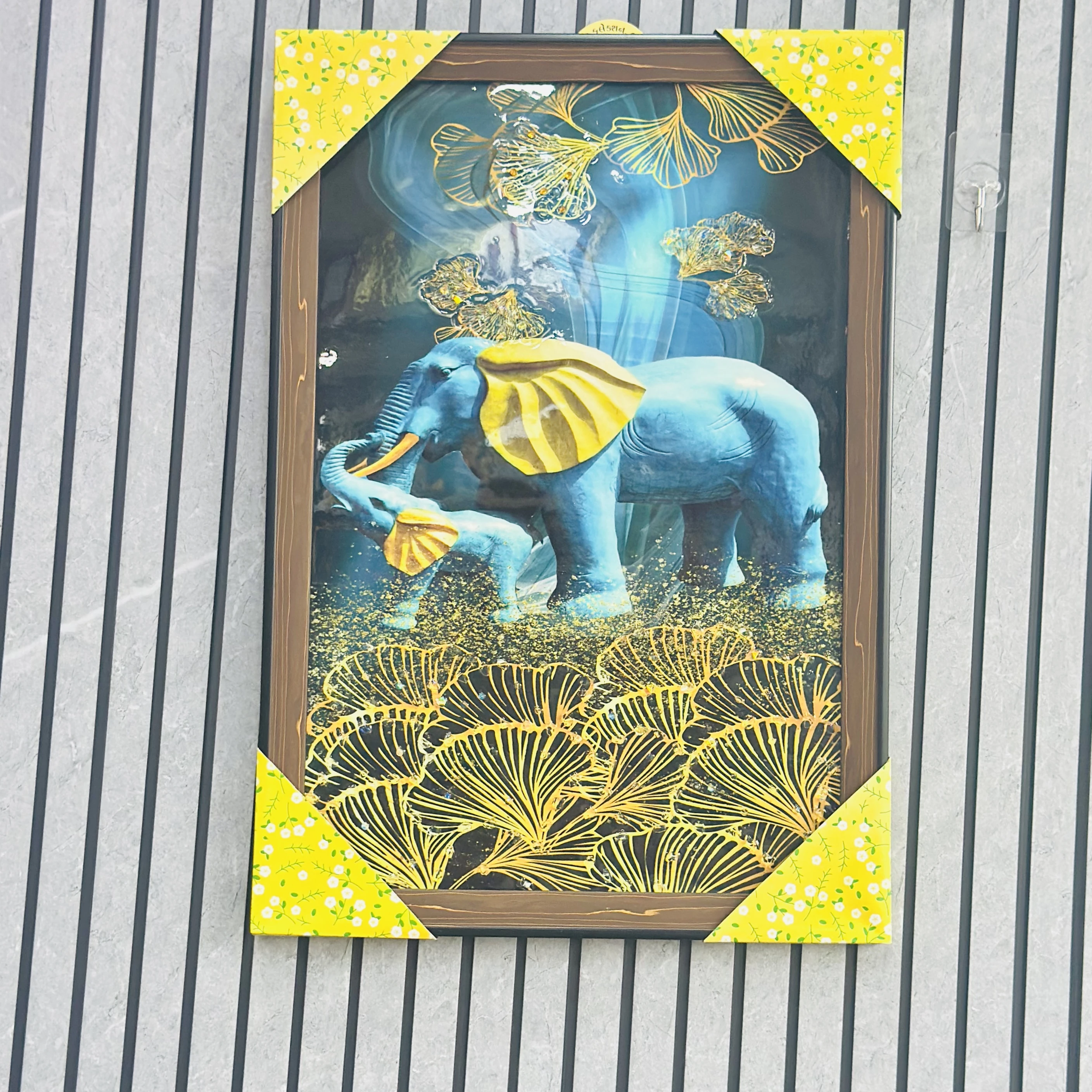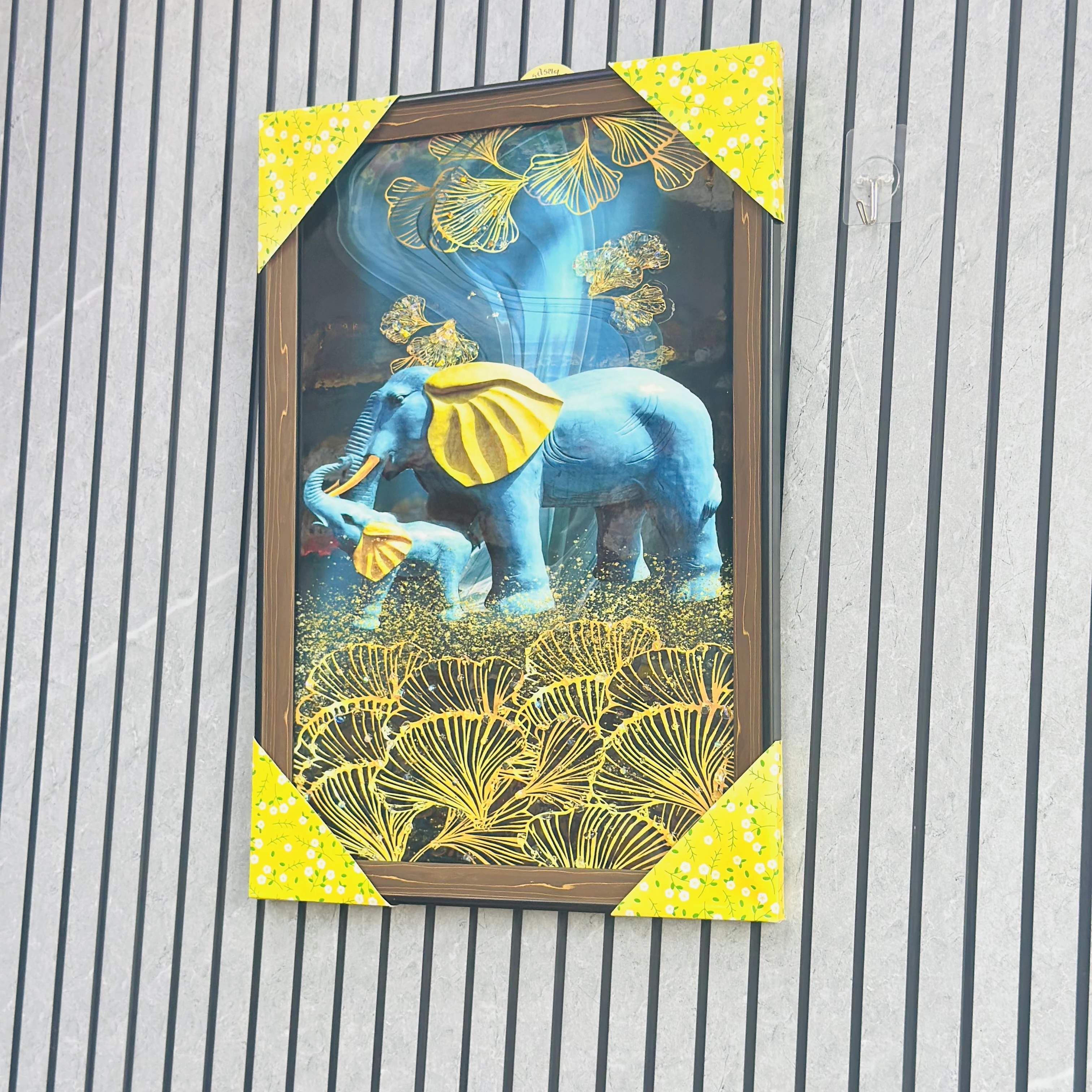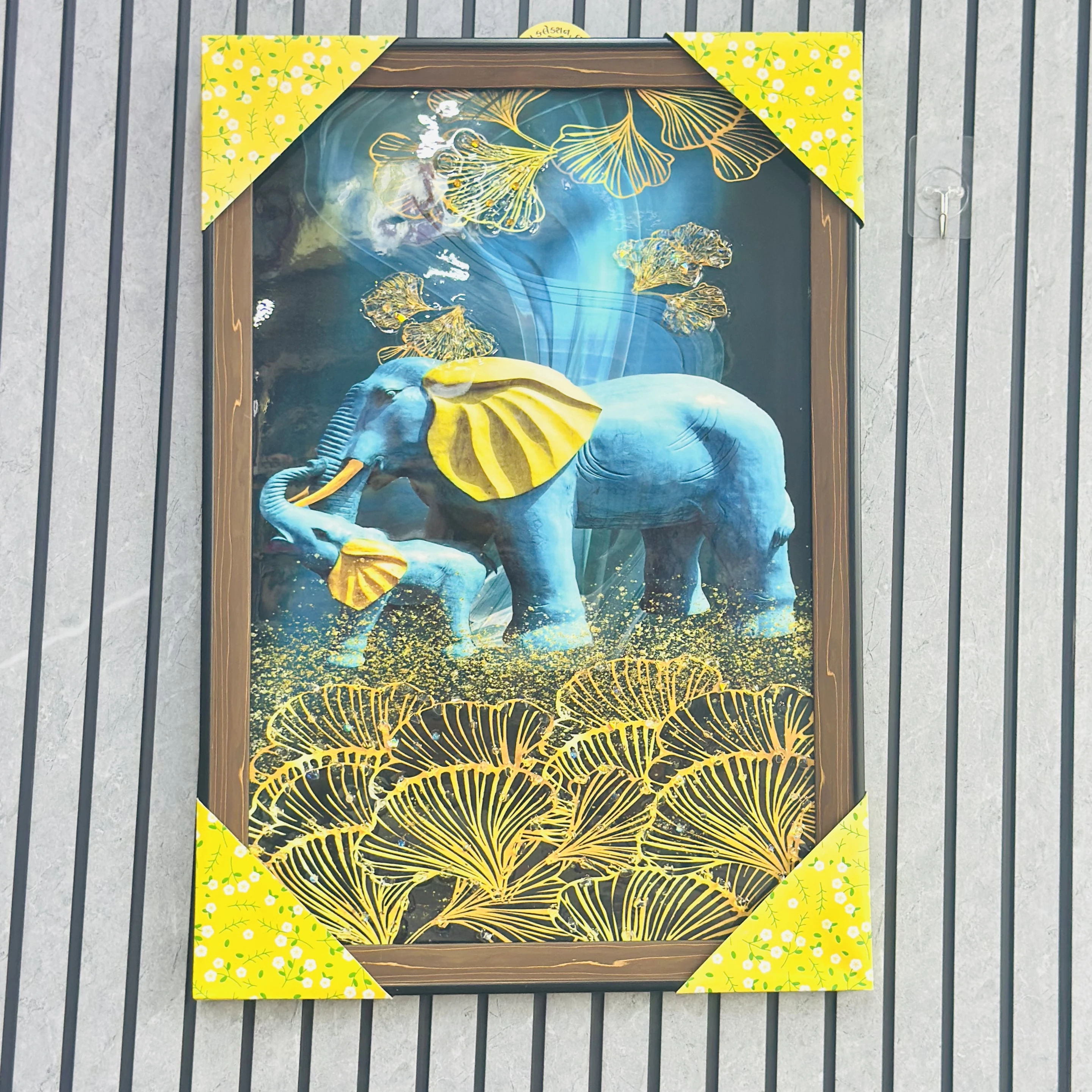 👉 Theme :- This is a SUNVALLEY PVD Framed Crystal Glass Painting with LED lights featuring elephants