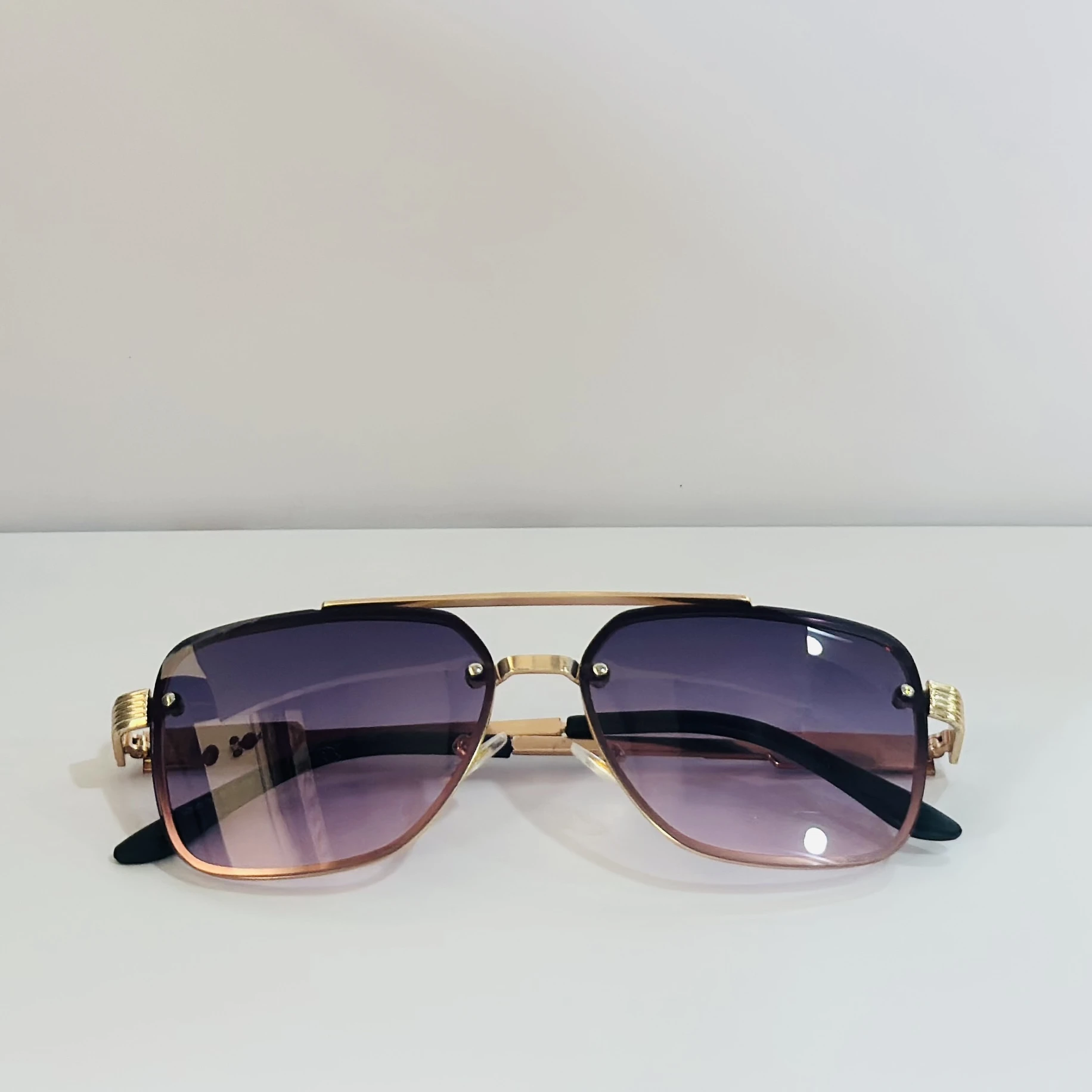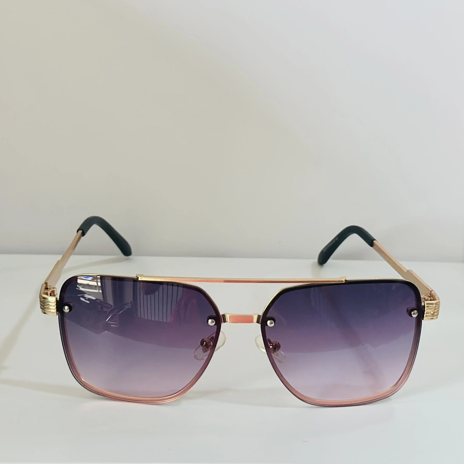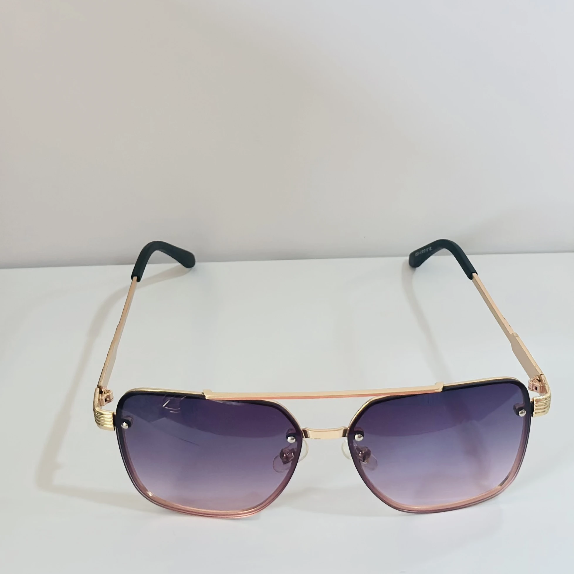 π Theme :- pair of fashionable sunglasses with a gold frame and purple gradient lenses.