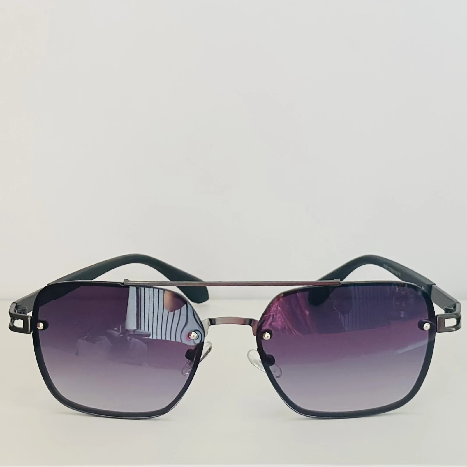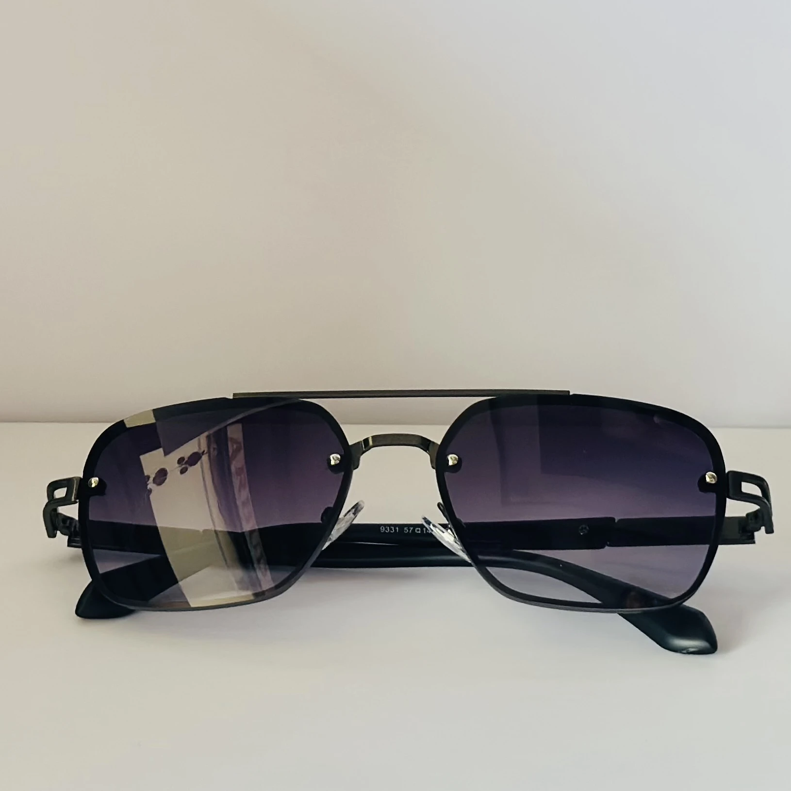👉 Theme :- pair of Maybach square-style sunglasses with a black metal frame and dark gradient lenses