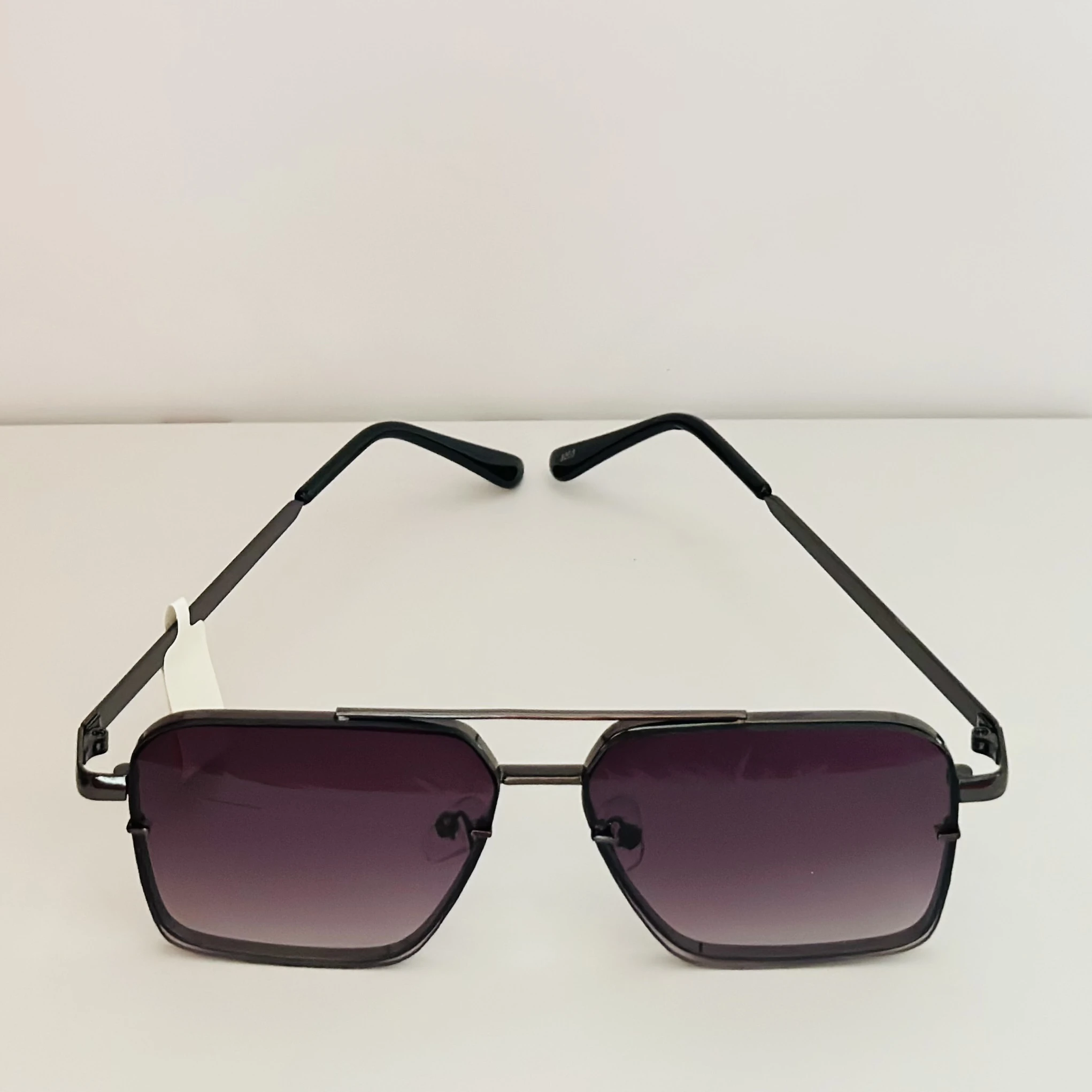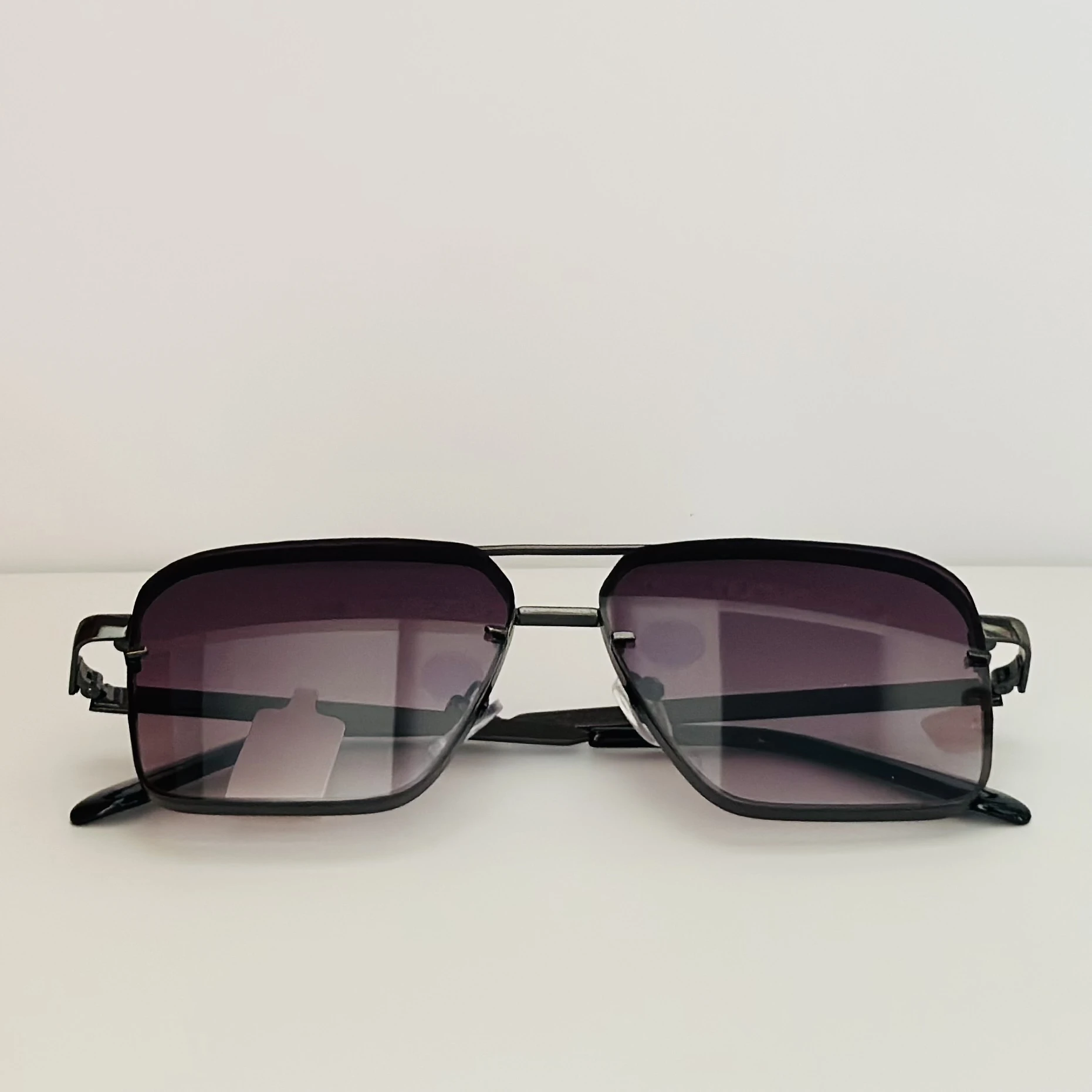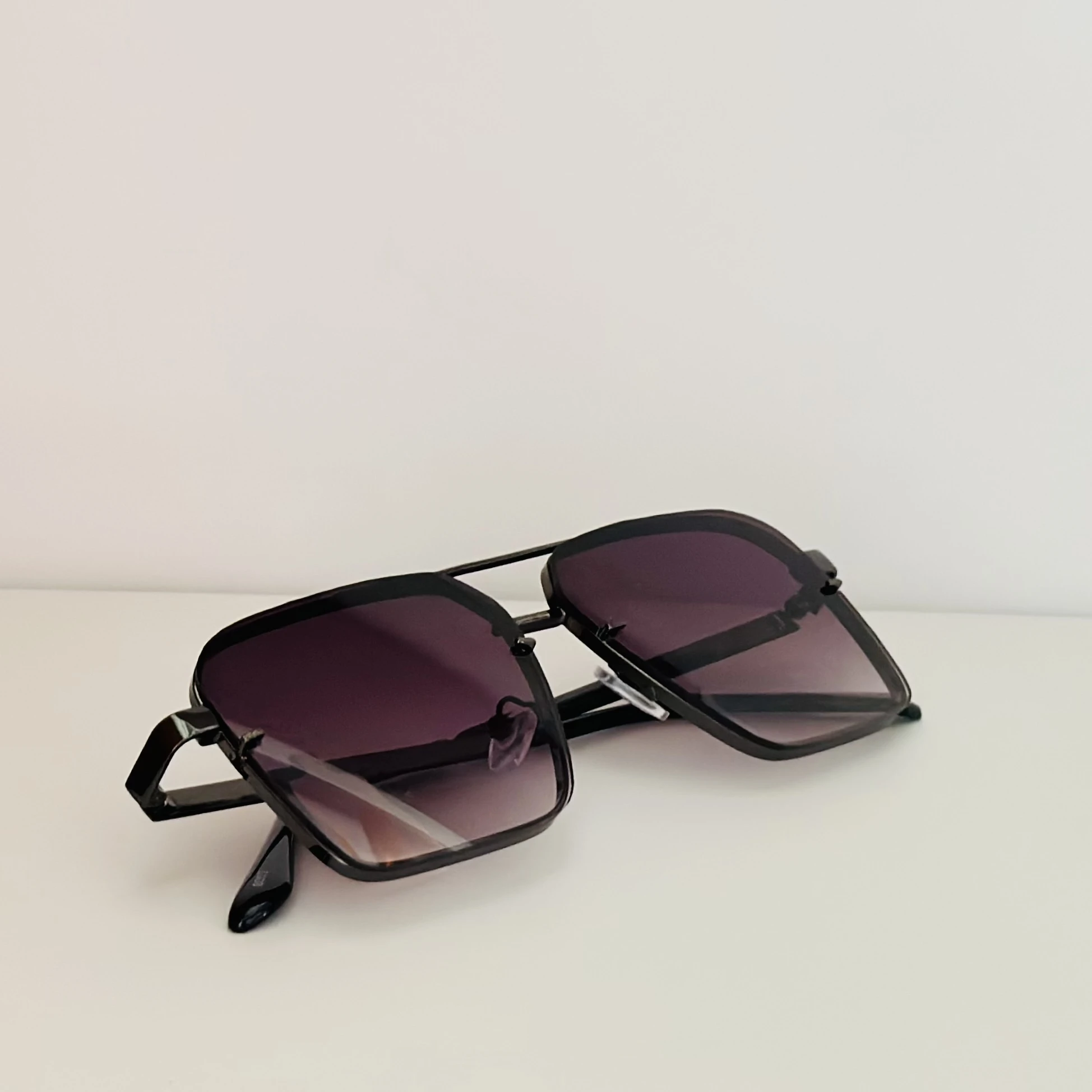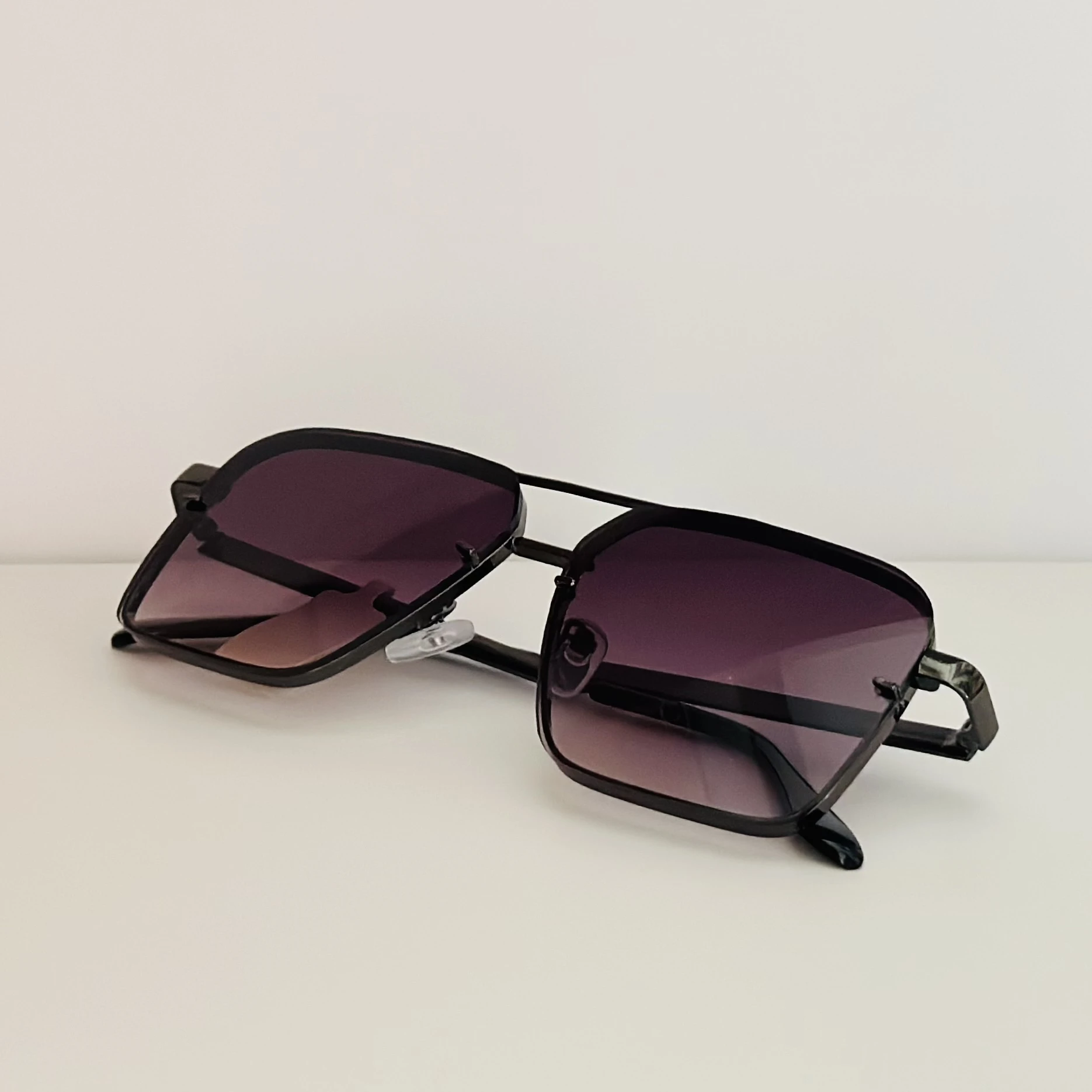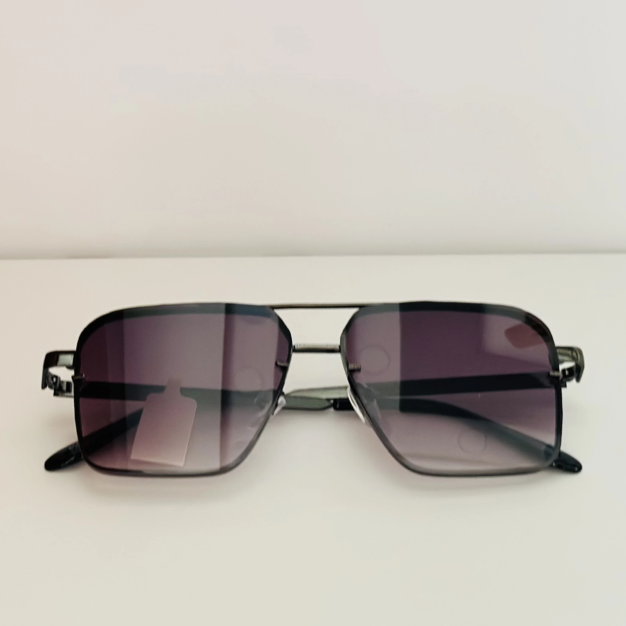 👉 Theme :- pair of square aviator gradient sunglasses with a black metal frame.