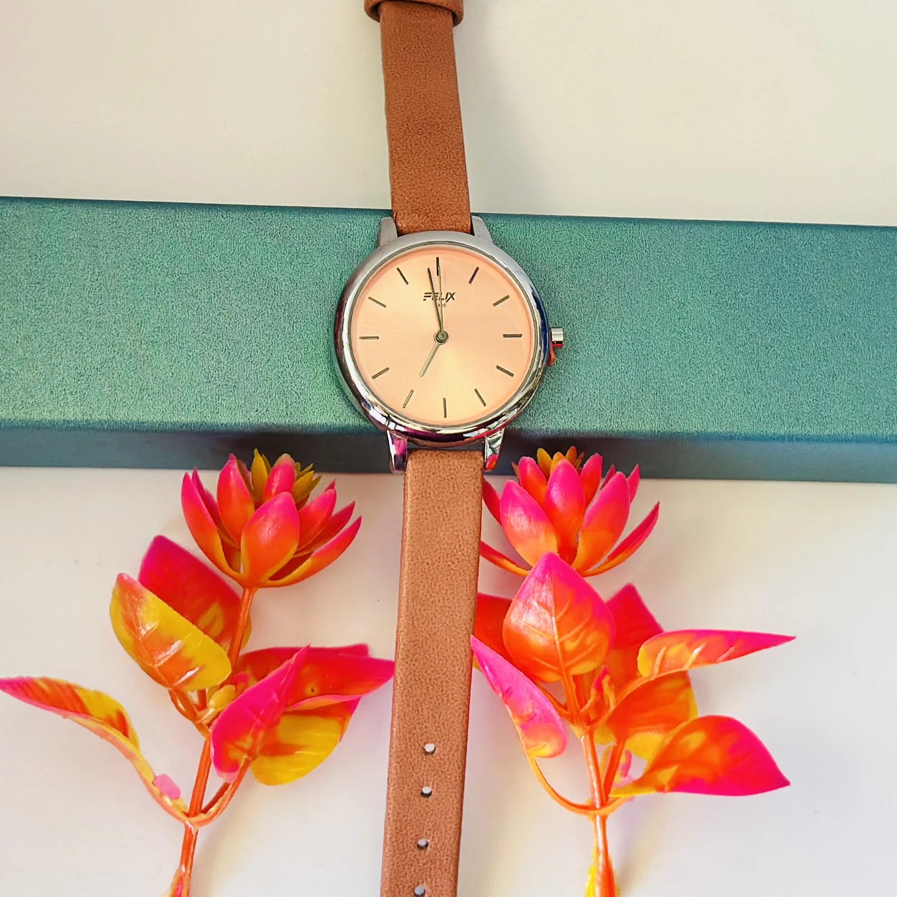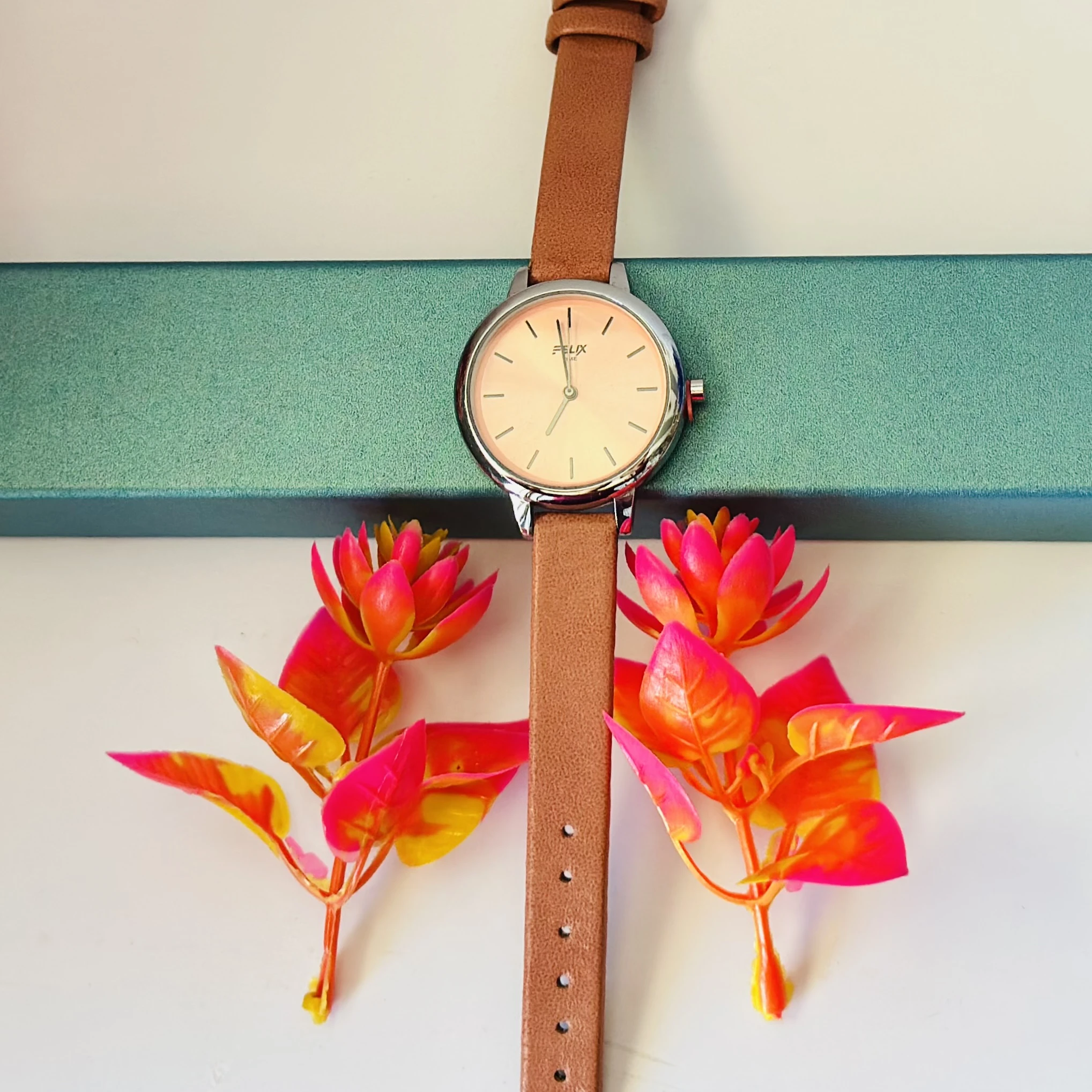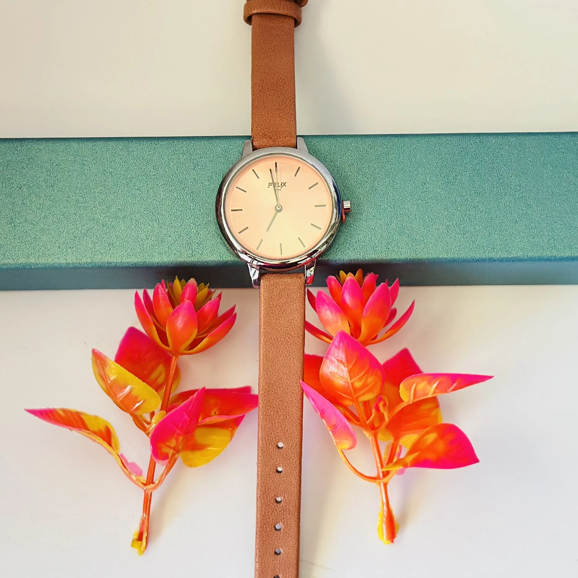 👉 Theme :- Pierre Lannier Nova women's watch with a tan leather strap.