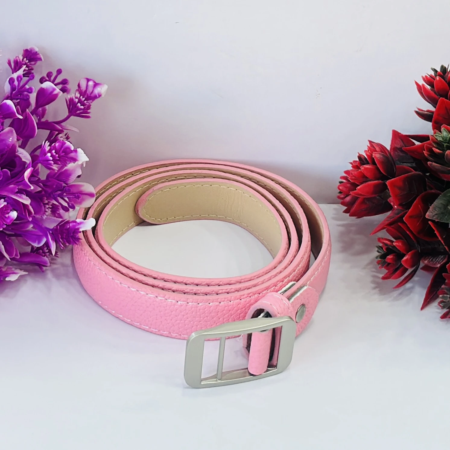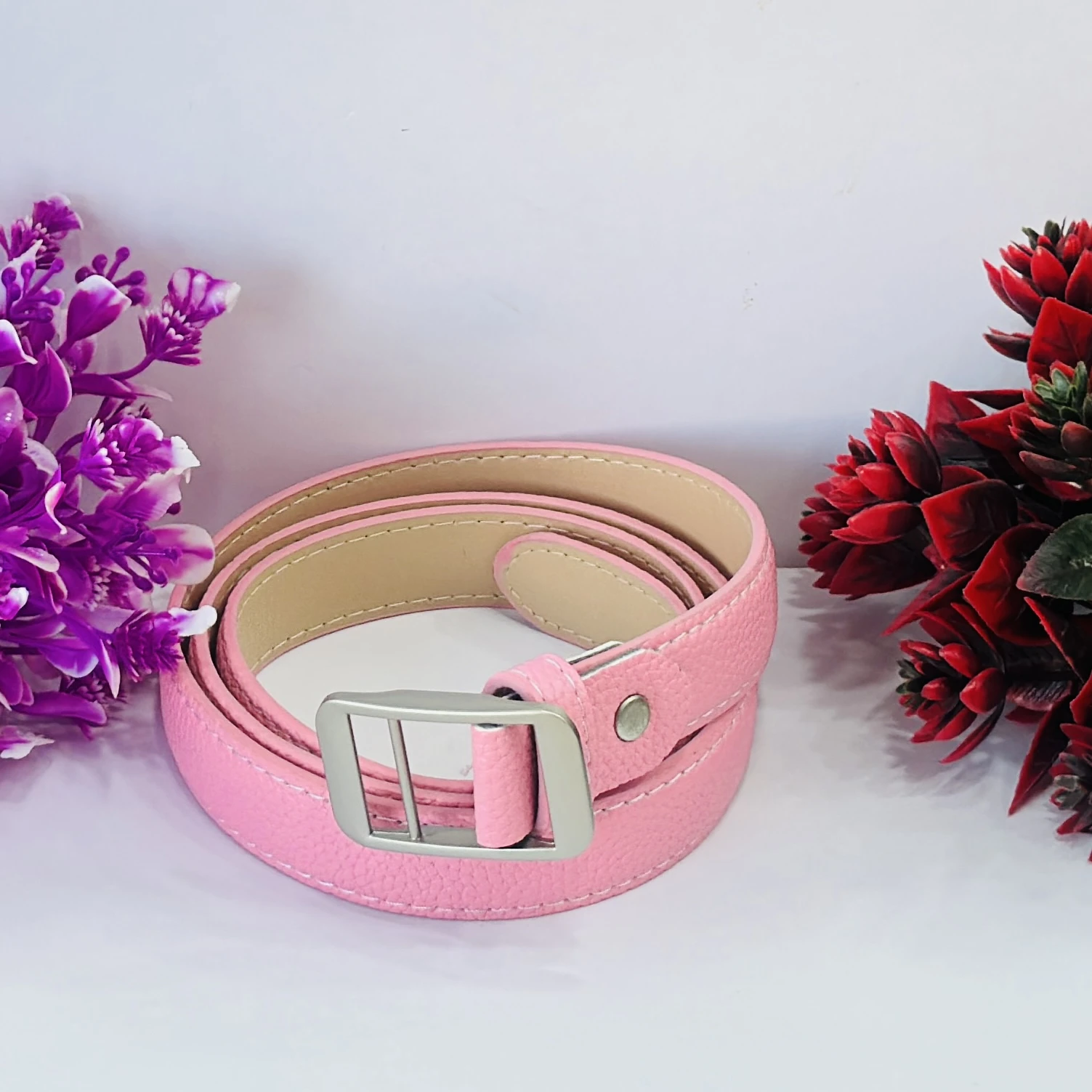👉 Theme :- Pink vegan leather women's belt